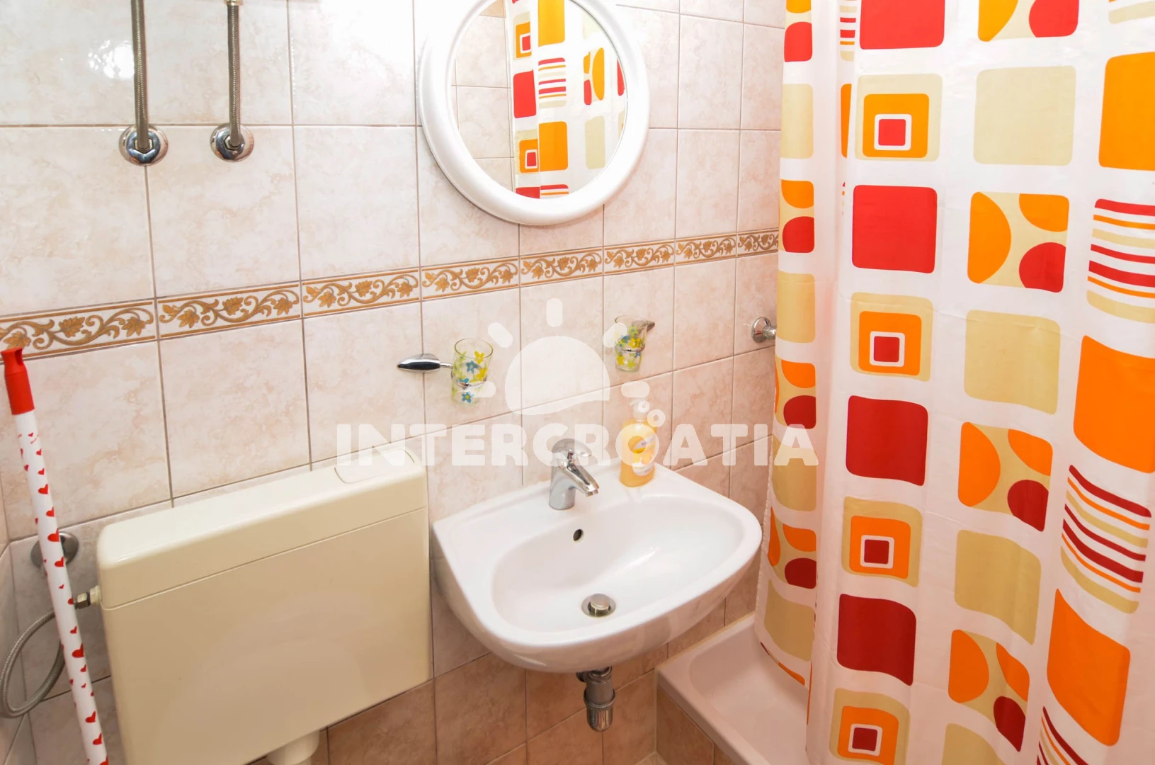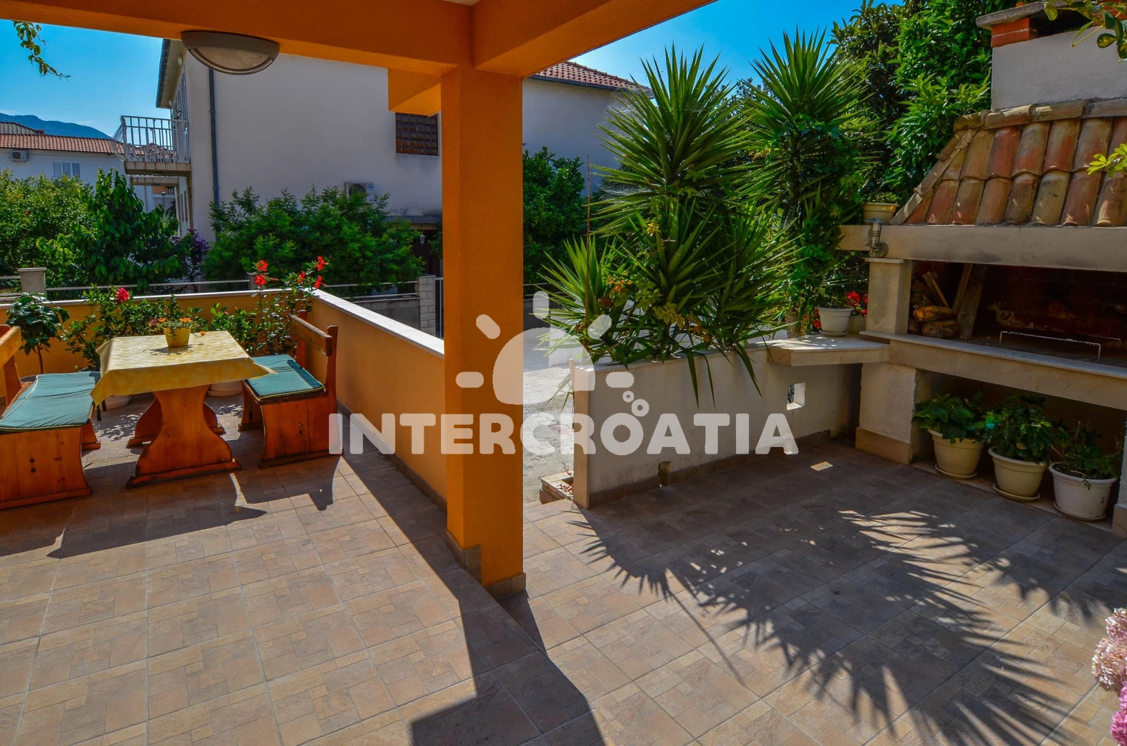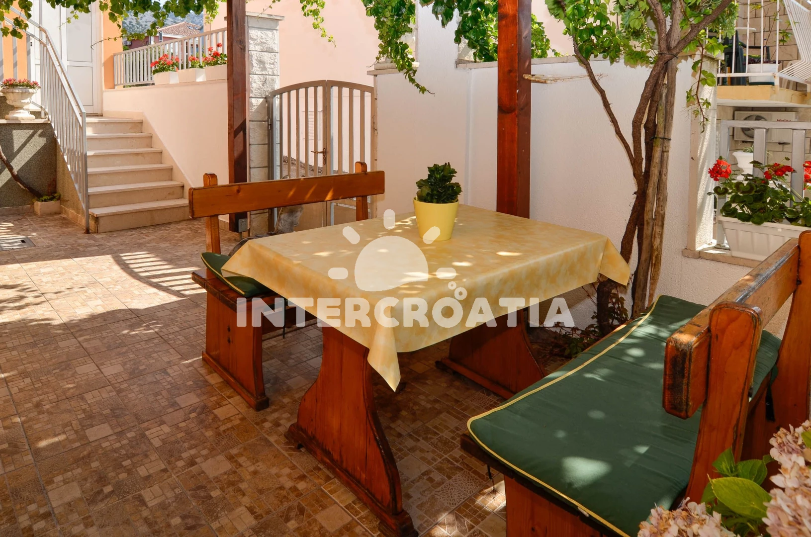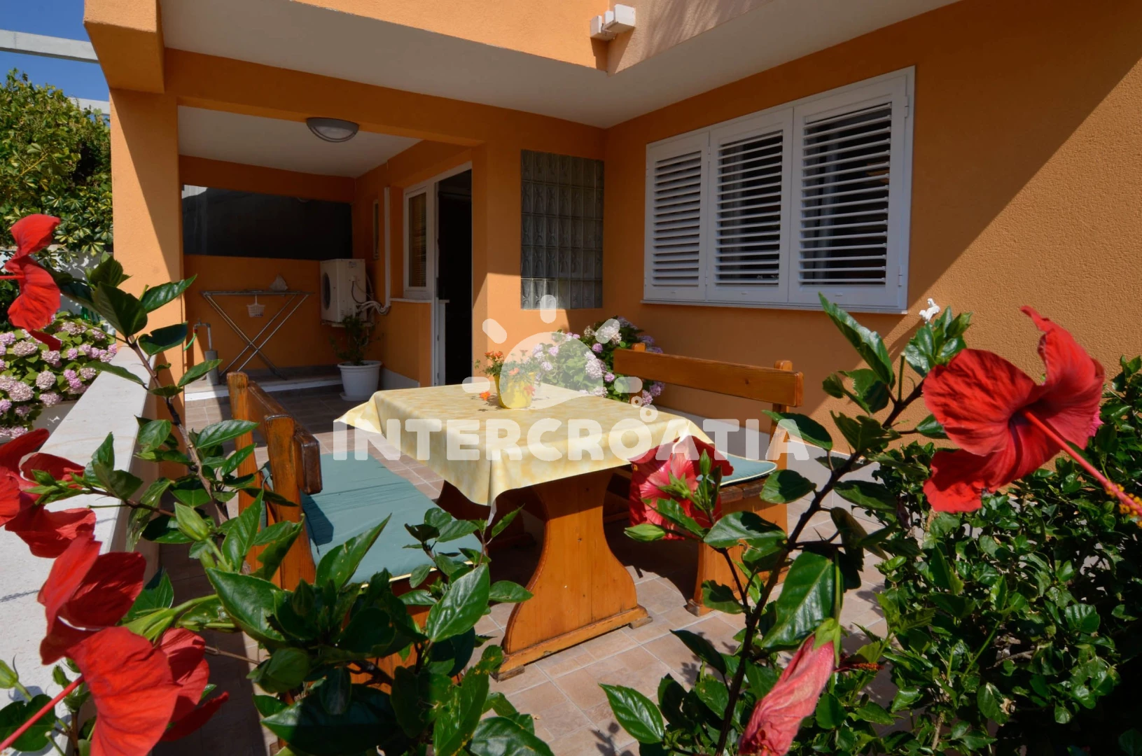 Apartmán se nachází 200 m od moře a pláže. Pláž je oblázková a betonové desky. U objektu je k dispozici společná zahrada s posezením a grilem. Parkování je před domem.