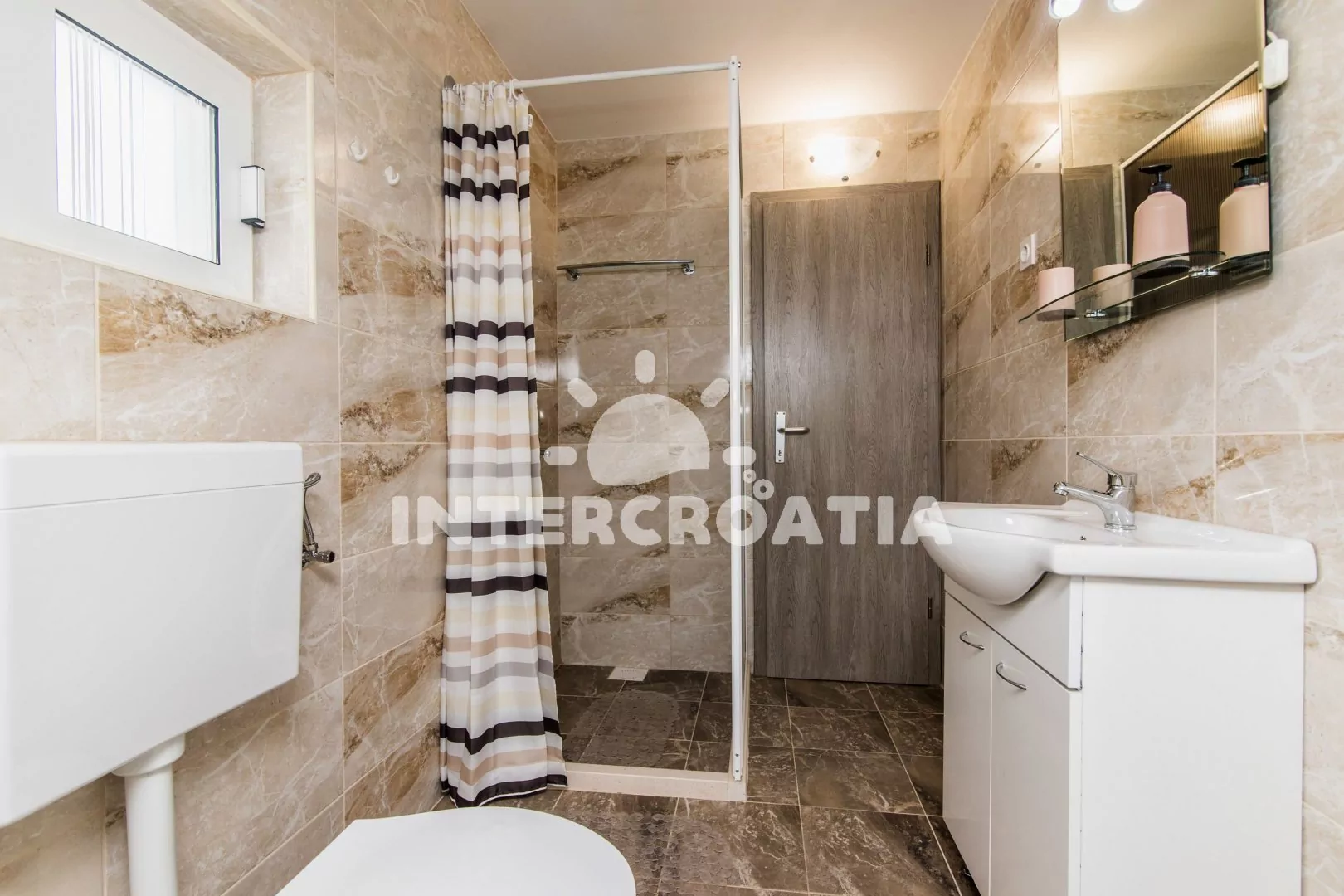 Vzdálenosti: Moře a pláž 3 km, centrum, ambulance, čerpací stanice, trajekt, lékárna, banka, směnárna, pošta, bar, veřejná doprava, přístav 1,5 km, restaurace 100 m.