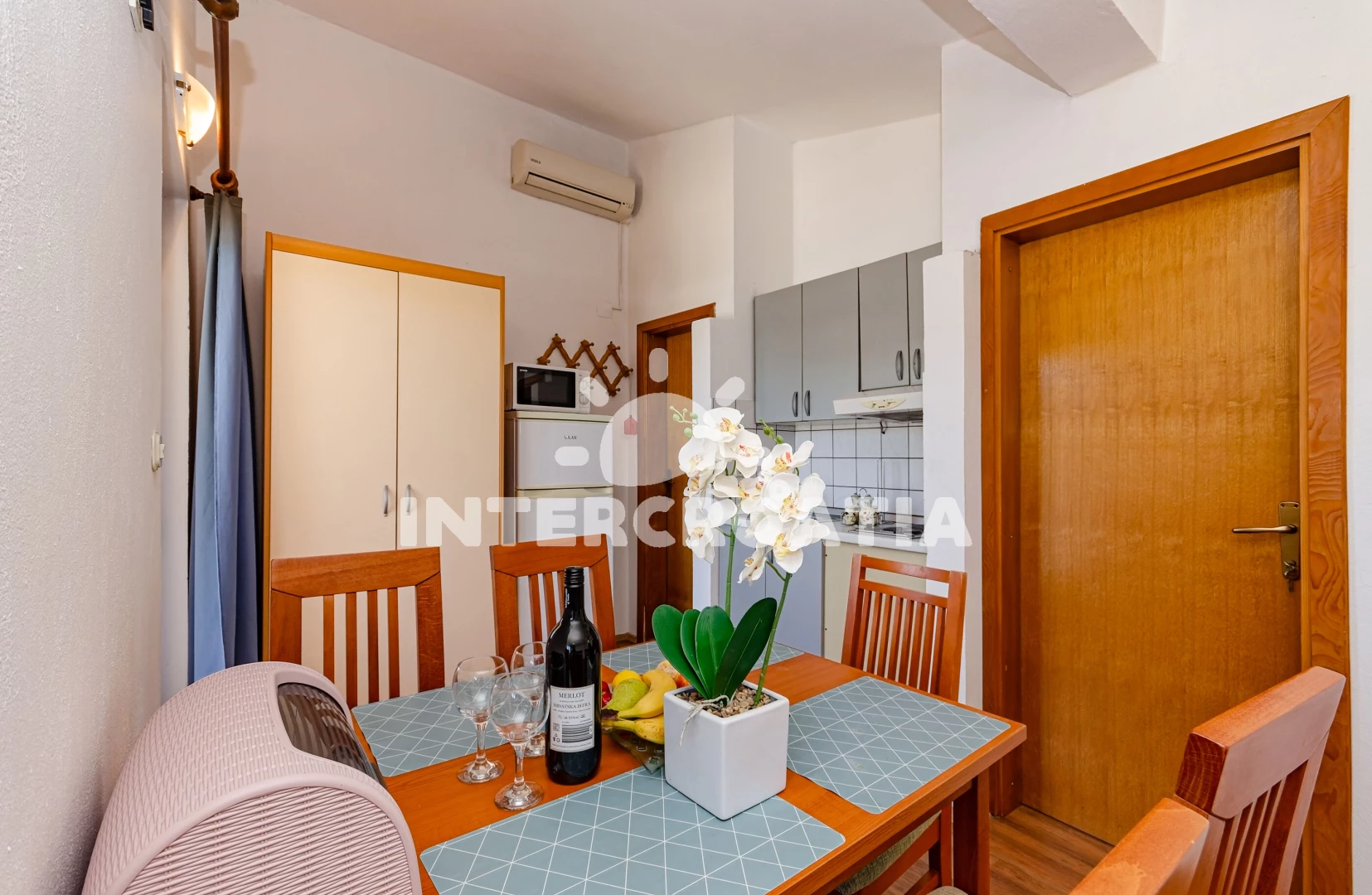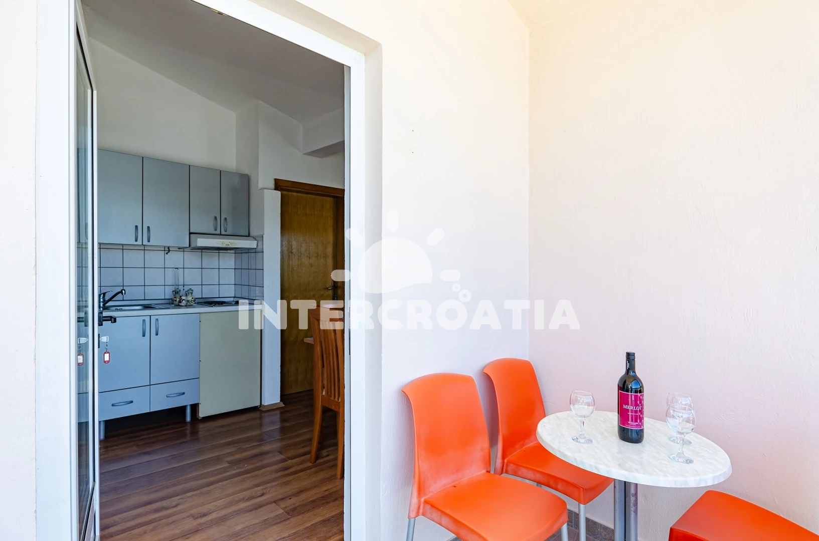 Apartmán (30 m2) s terasou, a výhledem na moře. Nachází se v 1. patře objektu. Apartmán má 1 ložnici a je vhodný pro až 4 osoby. Kuchyňská linka je vybavena varnou deskou, mikrovlnnou troubou,…