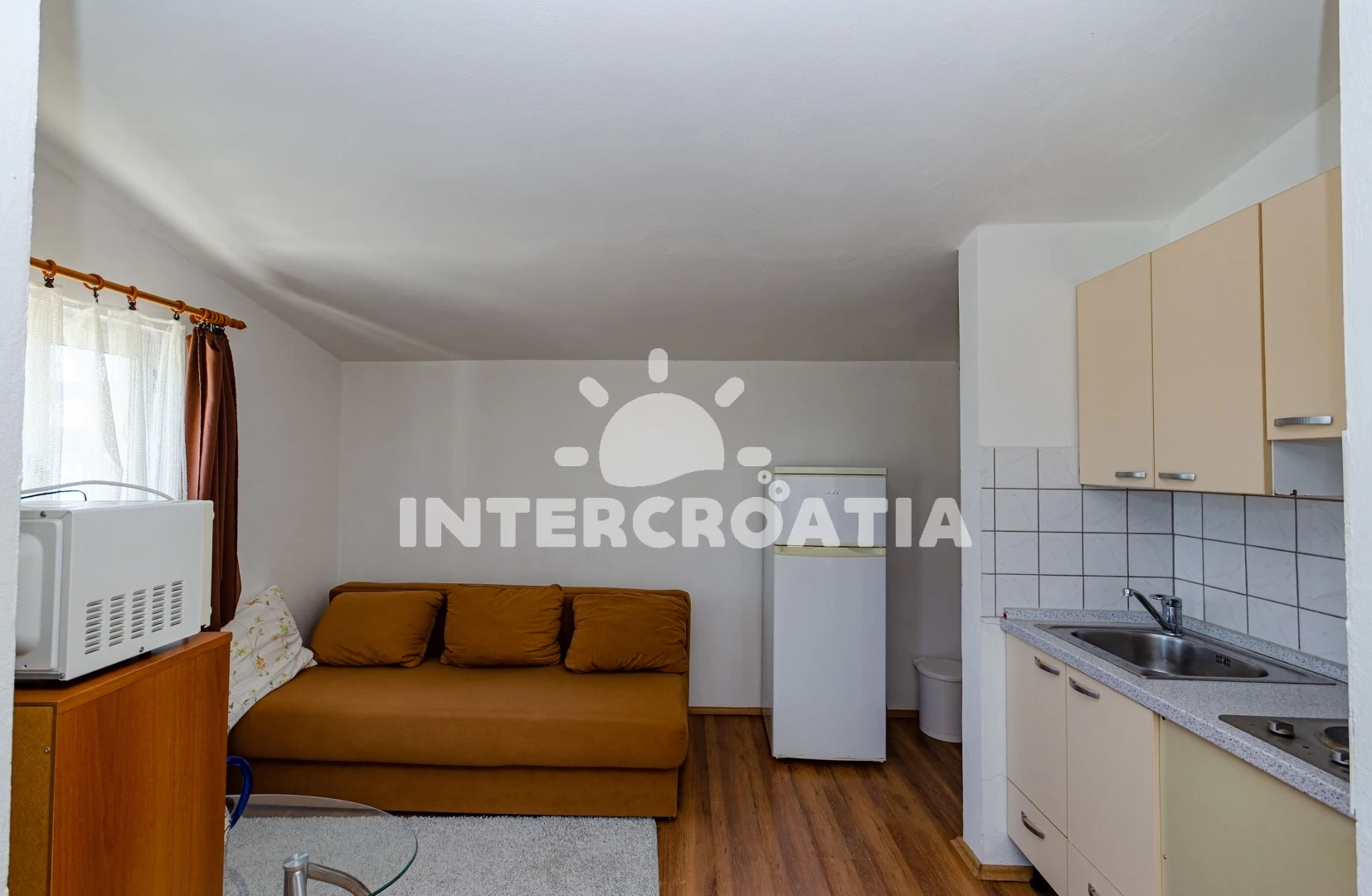 Apartmán (32 m2) s výhledem na moře. Nachází se v 1. patře objektu. Apartmán má 1 ložnici a je vhodný pro až 4 osoby. Kuchyňská linka je vybavena varnou deskou, mikrovlnnou troubou, rychlovarnou…