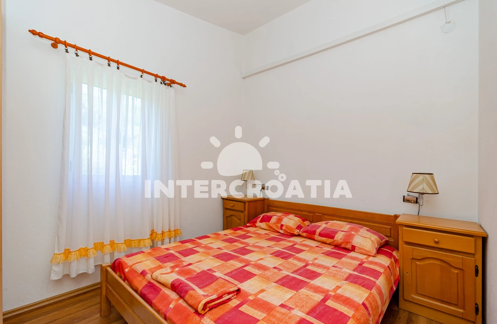 Apartmán (32 m2) s výhledem na moře. Nachází se v 1. patře objektu. Apartmán má 1 ložnici a je vhodný pro až 4 osoby. Kuchyňská linka je vybavena varnou deskou, mikrovlnnou troubou, rychlovarnou konvicí, nádobím, lednicí, mrazákem. V obývací místnosti je rozložitelná pohovka (extra lůžko pro 2 osoby). K dispozici televize se satelitním programem, žehlička. Ložnice s dvoulůžkem. Koupelna se sprchovým koutem, umyvadlem, fénem a WC. Hostům je k dispozici parkování u objektu zdarma.