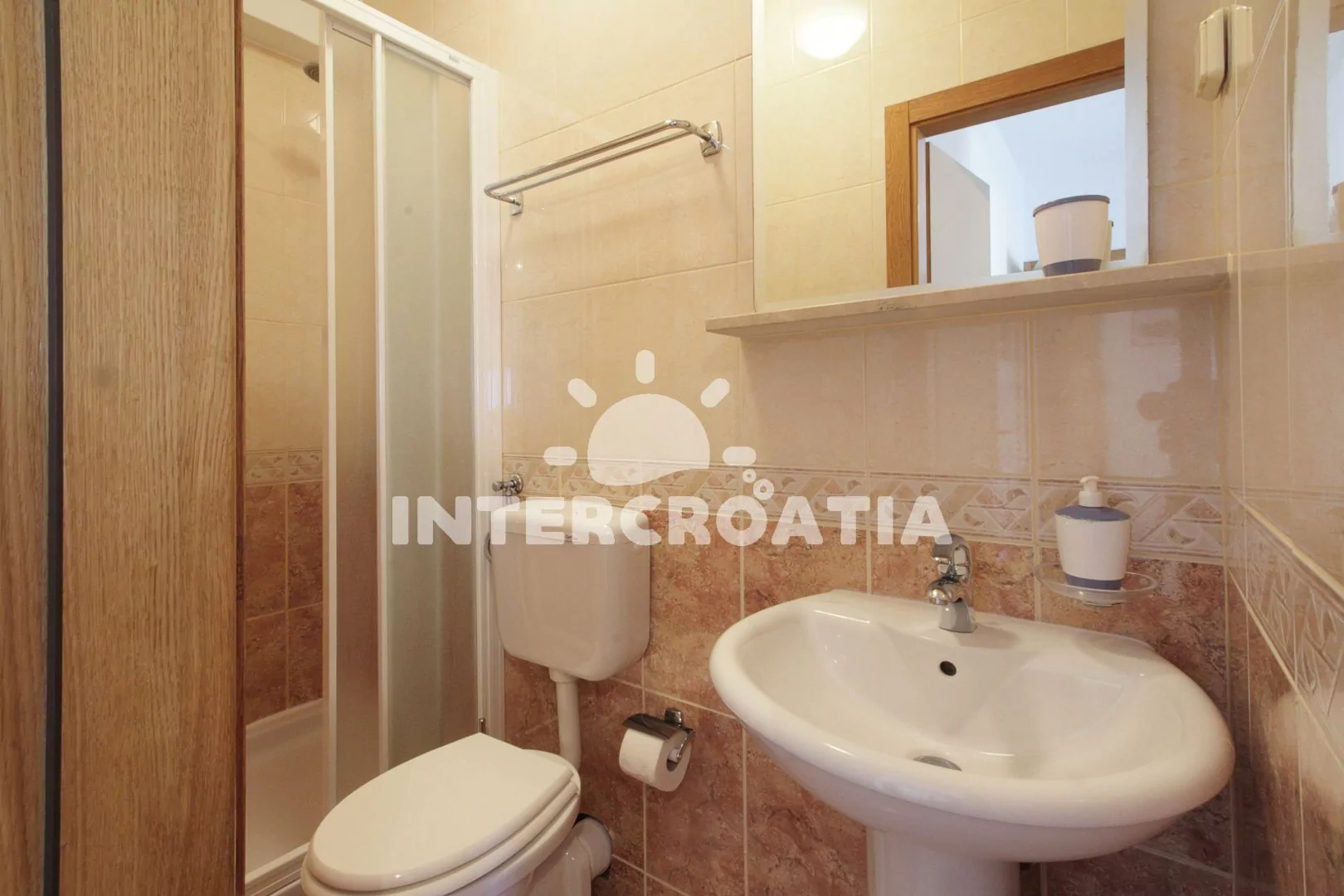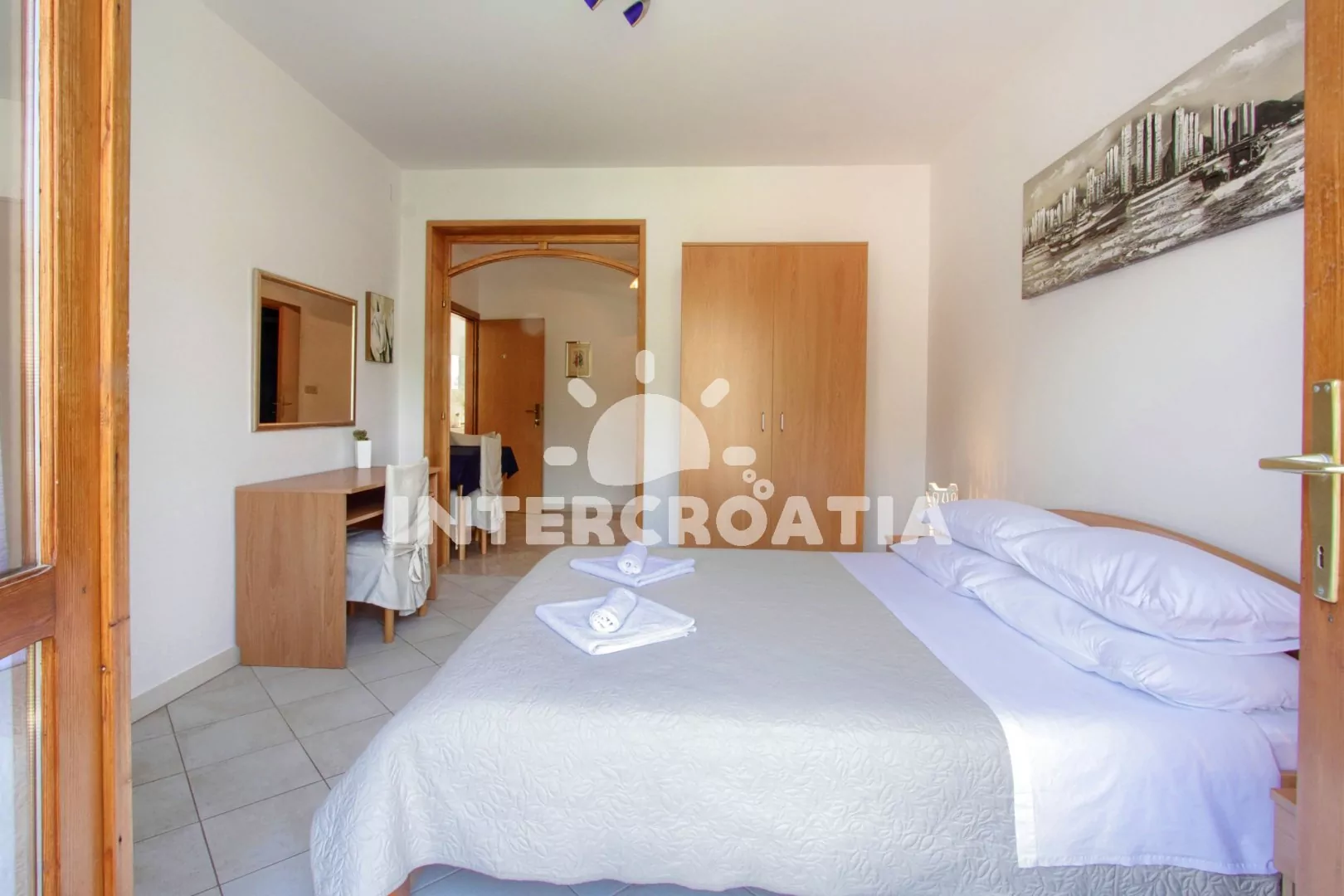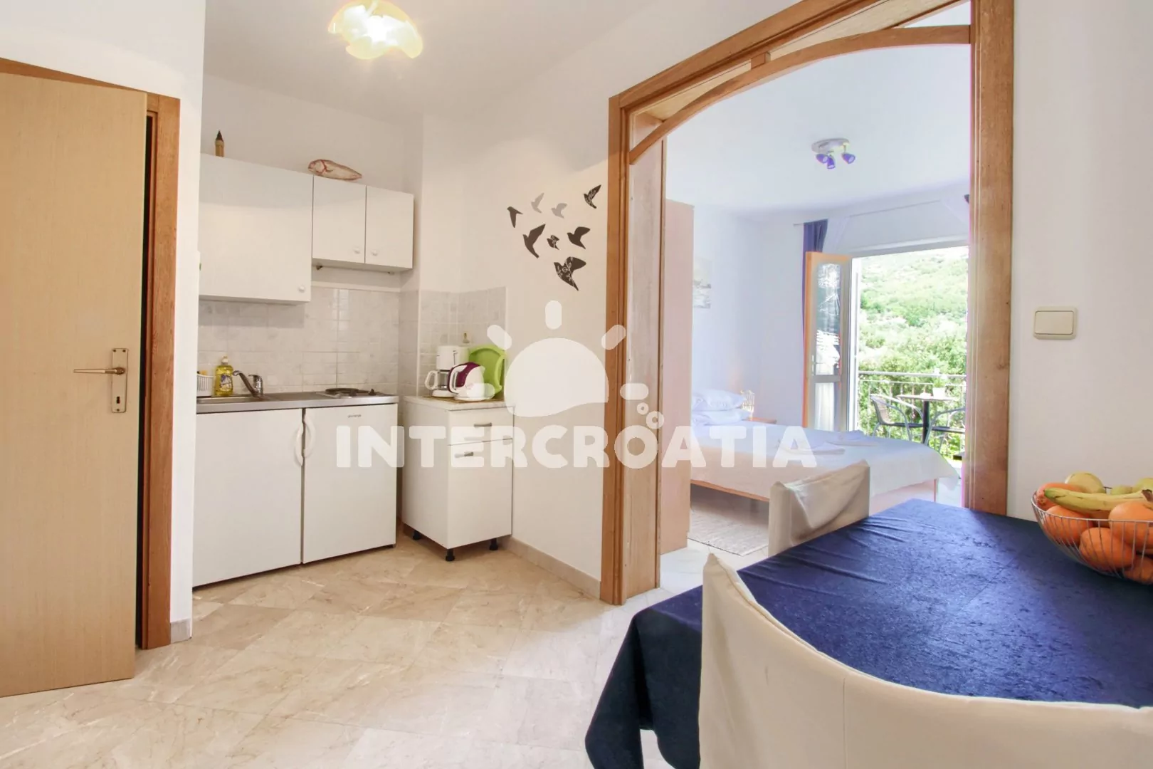 Apartmán pro 2 osoby s výhledem na moře se nachází v druhém patře vilky, disponuje balkonem s venkovním posezením. Kuchyň je částečně oddělena od ložnice. Kuchyň je vybavena dvouplotýnkovým sporákem, mikrovlnnou troubou, nádobím, lednicí s mrazákem a jídelním stolem pro 2 osoby. Ložnice s jedním dvoulůžkem, televizí se satelitním programem, klimatizací a vstupem na balkon. Koupelna se sprchovým koutem, umyvadlem a wc. Hosté mají k dispozici parkování pro automobil u objektu zdarma.