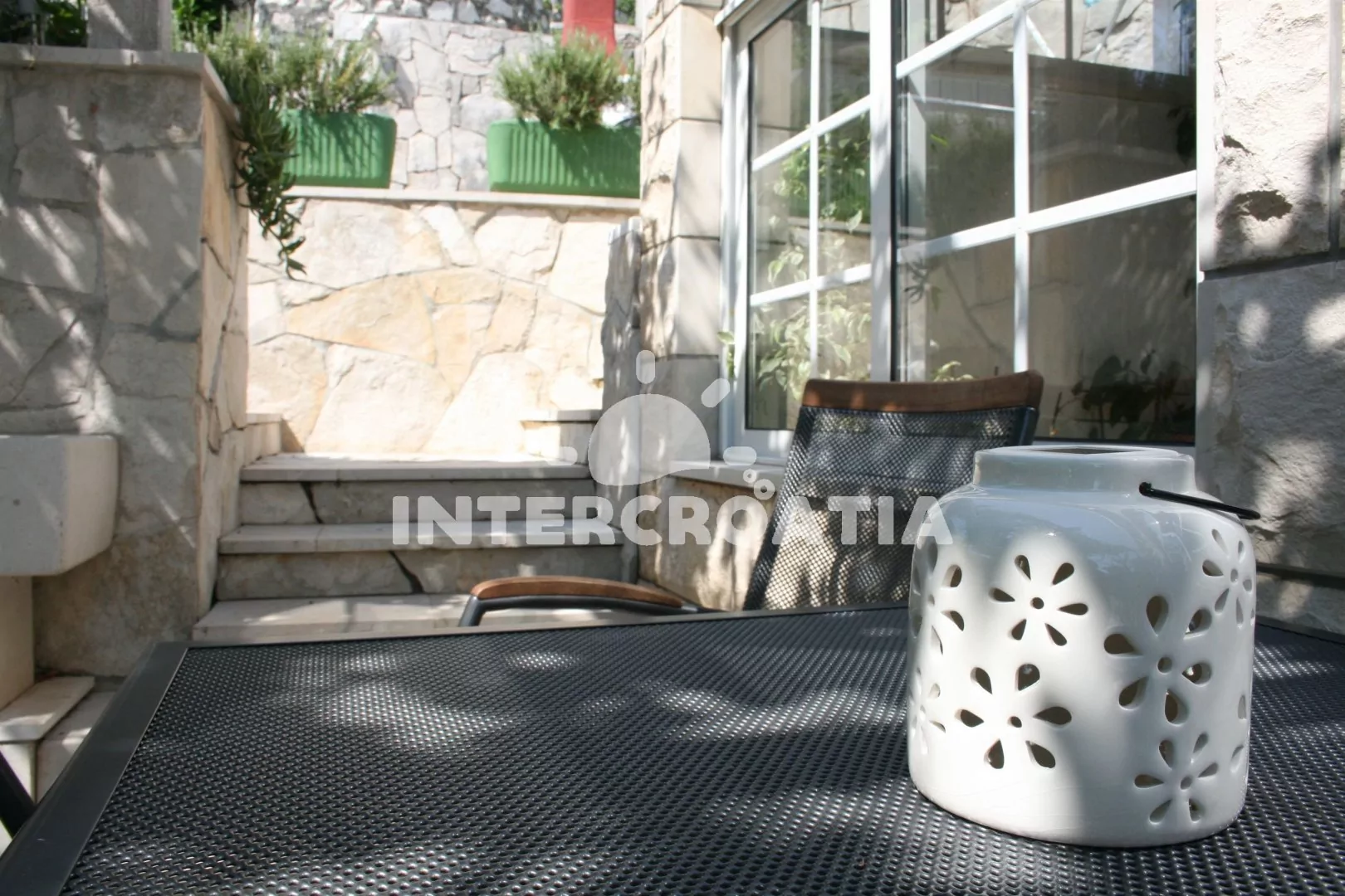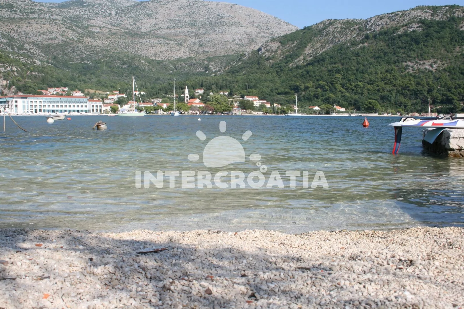 Vzdálenosti: Moře 50 m, pláž (oblázková) 50 m, centrum 400 m, pošta 400 m, lékárna 300 m, nemocnice 300 m, restaurace 400 m, muzeum 400 m, směnárna 300 m, kotviště pro čluny 50 m, půjčovna motorových člunů 200 m, půjčovna kol 200 m, tenisové kurty 500 m, bar 100 m, čerpací stanice 14 km, veřejná doprava 400 m, trajekt (Dubrovnik) 33 km, letiště (Dubrovník) 55 km.