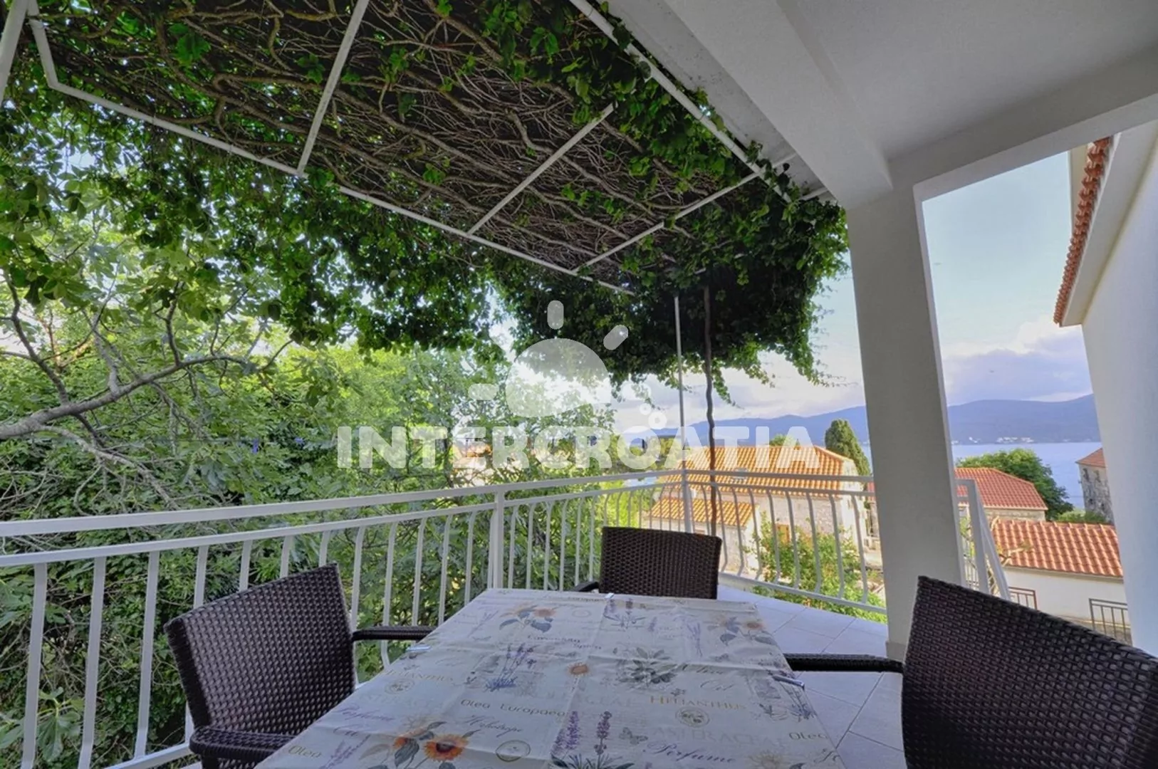 Apartmán (60 m2) s terasou/balkonem, venkovním posezením a výhledem na moře se nachází v 1. patře domu. Apartmán má 2 ložnice a je vhodný pro až 4 osoby. Obývací místnost je spojena s kuchyní.…