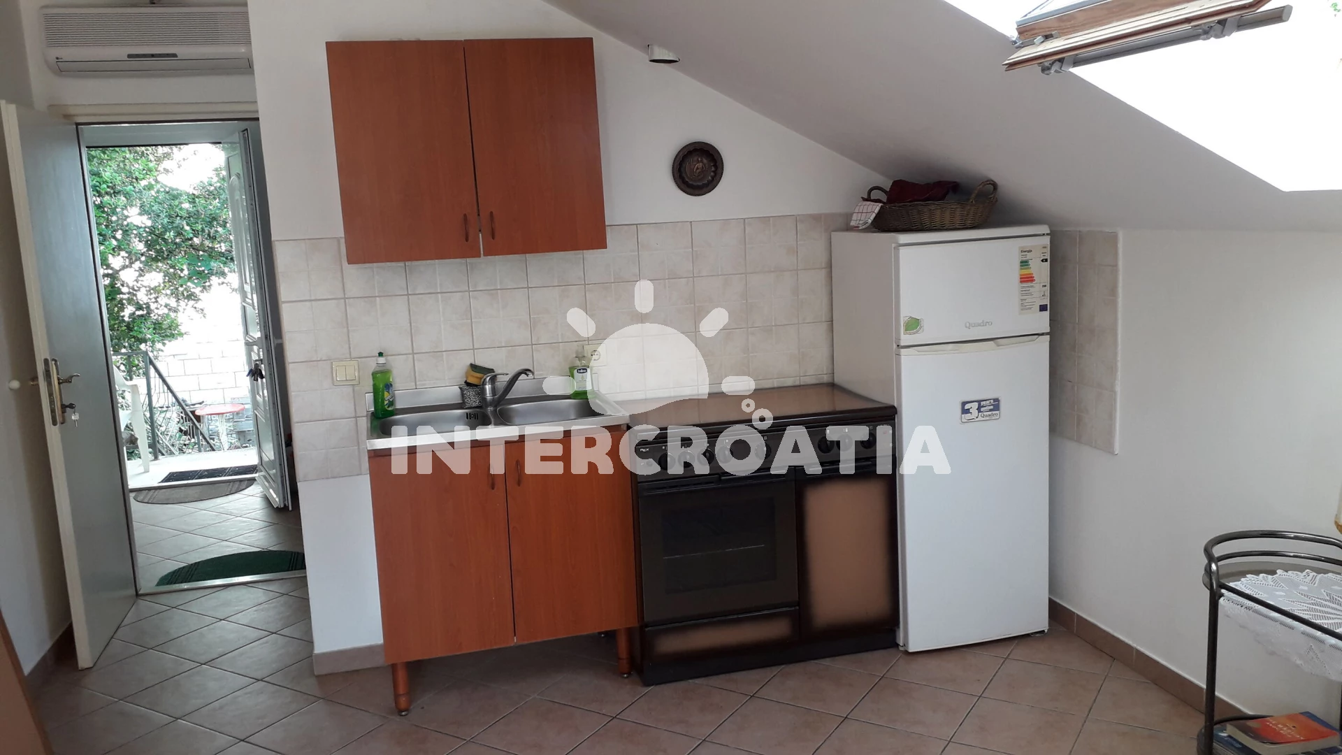 Apartmán se nachází 50 m od moře a pláže. Pláž je skalnatá, oblázková a betonové desky. U objektu je k dispozici společná zahrada s posezením a grilem.