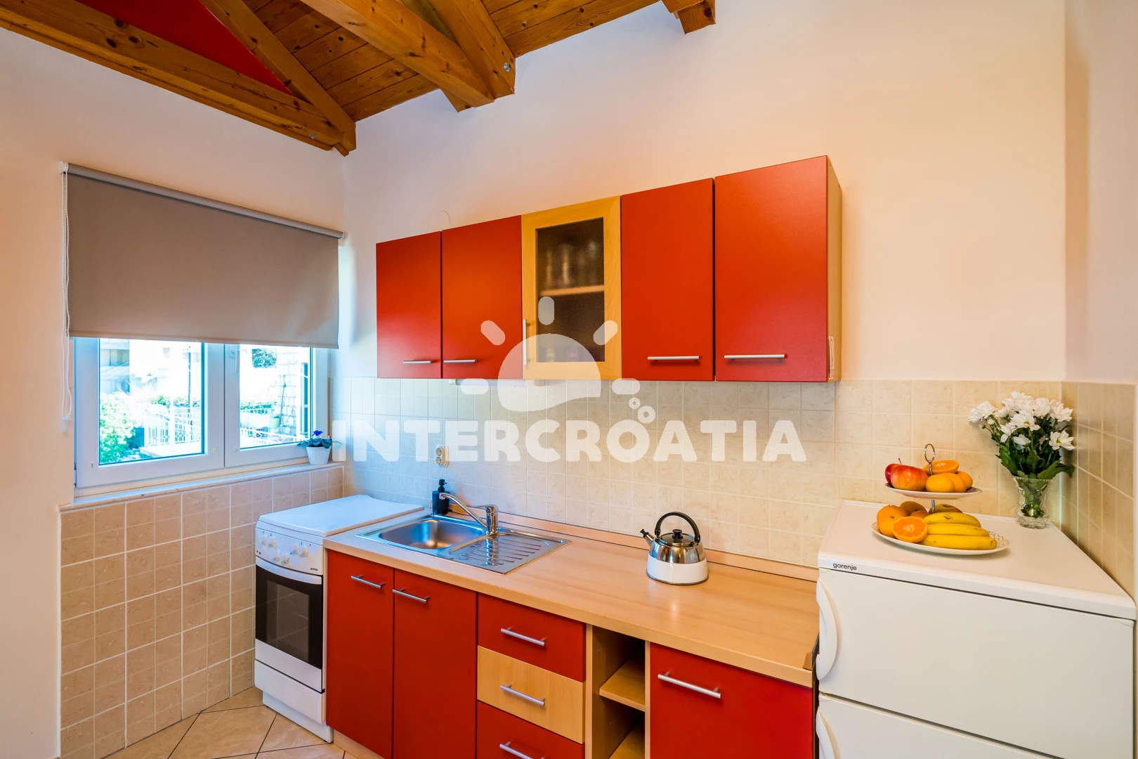 Apartmán se nachází 175 m od moře a pláže. Pláž je písčitá, oblázková a skalnatá. U objektu je k dispozici společná zahrada s posezením a grilem. Parkování je před domem.