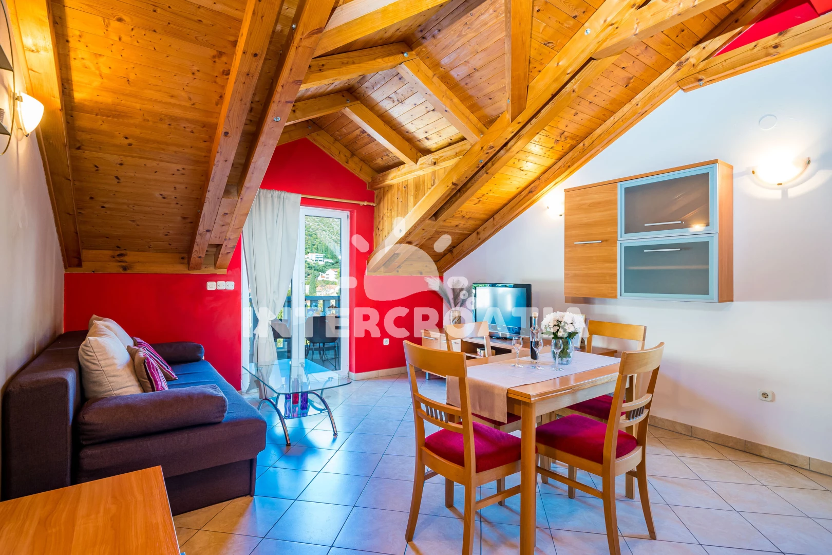 Vzdálenosti: Moře 125 m, pláž 175 m (písčitá, oblázková a skalnatá), restaurace 80 m, kotviště pro čluny 100 m, supermarket 100 m, bar 100 m, potápění 300 m, půjčovna motorových člunů 300 m, půjčovna kol 300 m, veřejná doprava 500 m, směnárna 500 m, pošta 500 m, tenisové kurty 800 m, ambulance 1,5 km, diskotéka 10 km, centrum 10 km, muzeum 10 km, čerpací stanice 10 km, lékárna 10 km, banka 10 km, trajekt (Dubrovnik) 11 km, marina 12 km, letiště (Dubrovnik) 38 km,