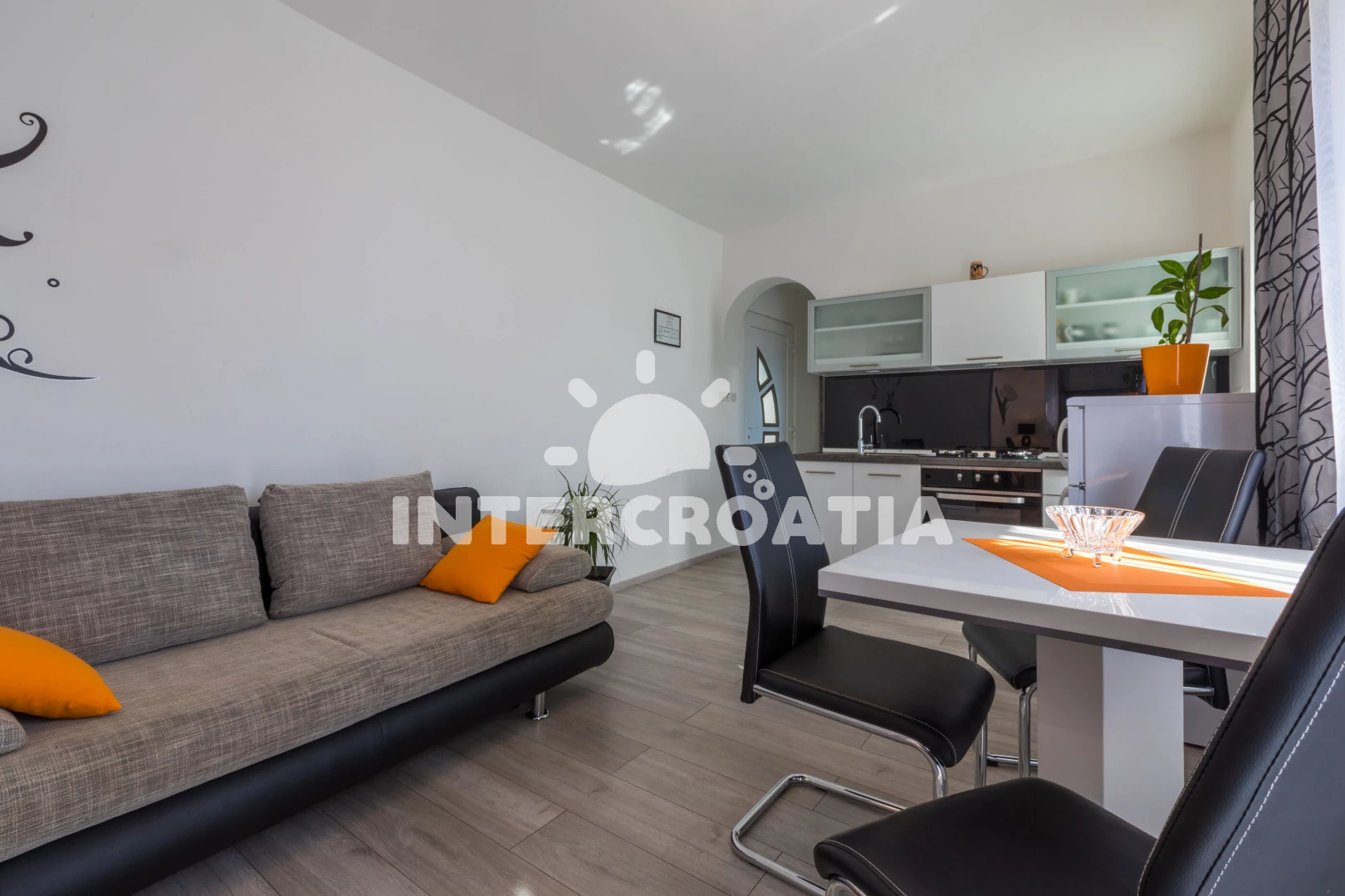 Apartmán se nachází 600 m od moře a pláže. Pláž je skalnatá, oblázková a větší kamení. U objektu je k dispozici společná zahrada s posezením a grilem. Parkování je před domem.