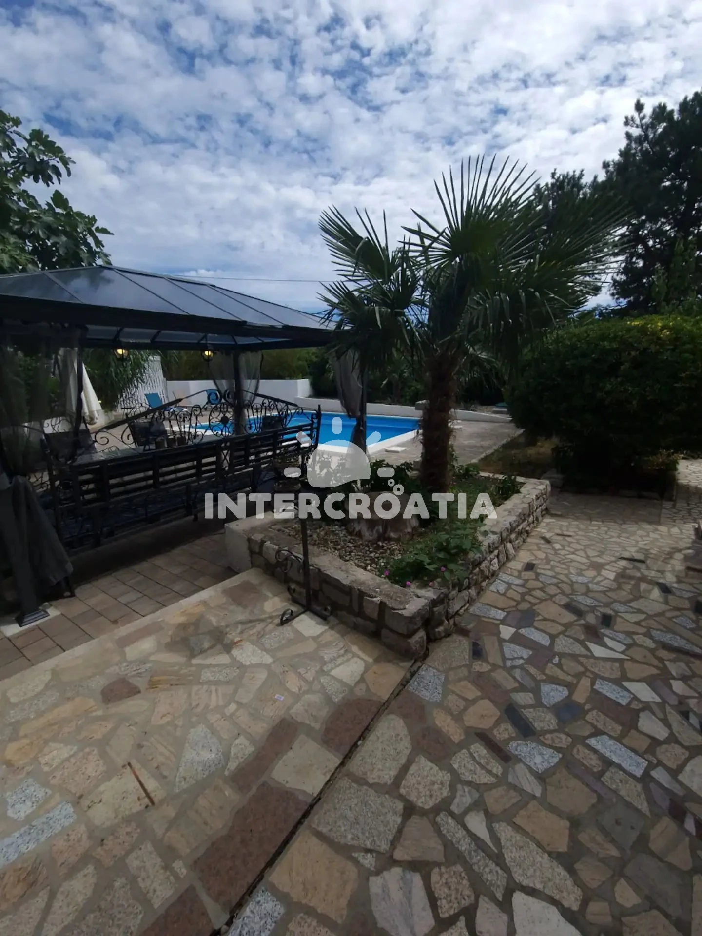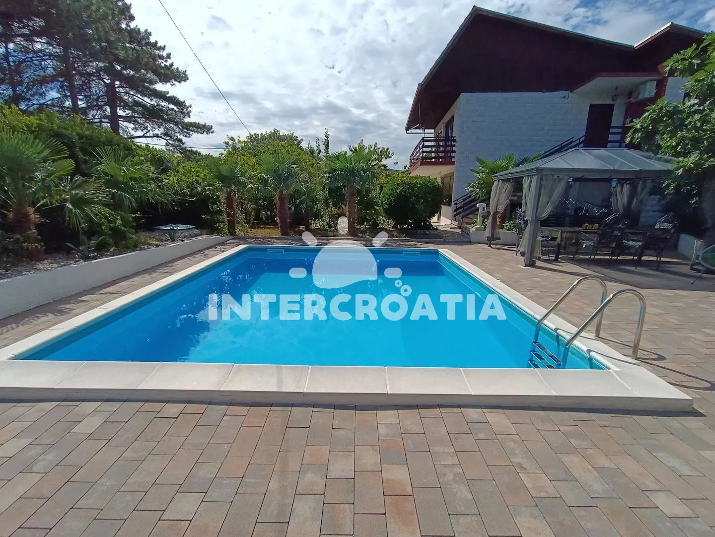 Apartmán se nachází 3600 m od moře a pláže. Pláž je oblázková a betonové desky. Apartmán disponuje bazénem s lehátky pro ubytované hosty. U objektu je k dispozici společná zahrada s posezením a grilem. Parkování je před domem.