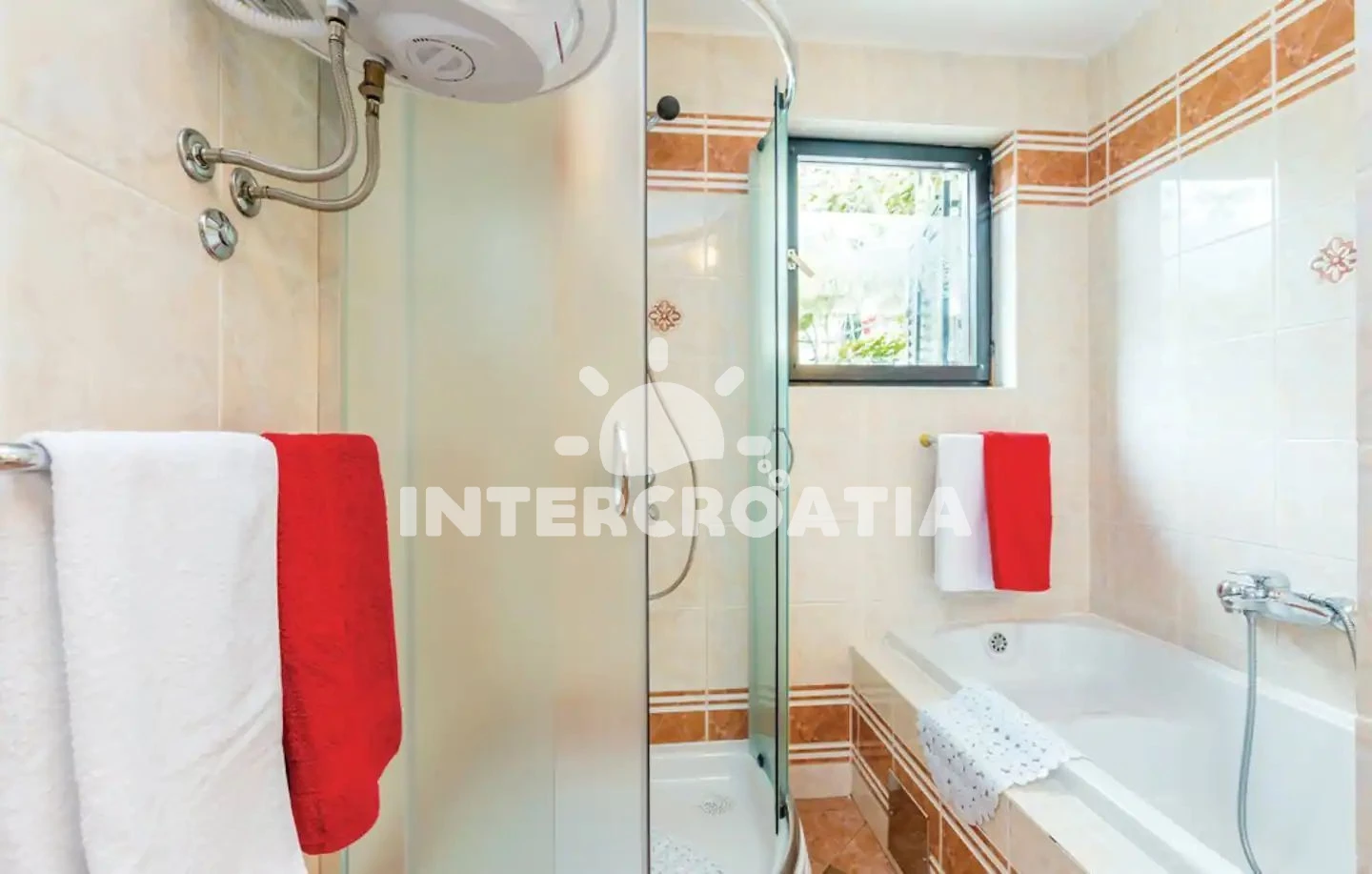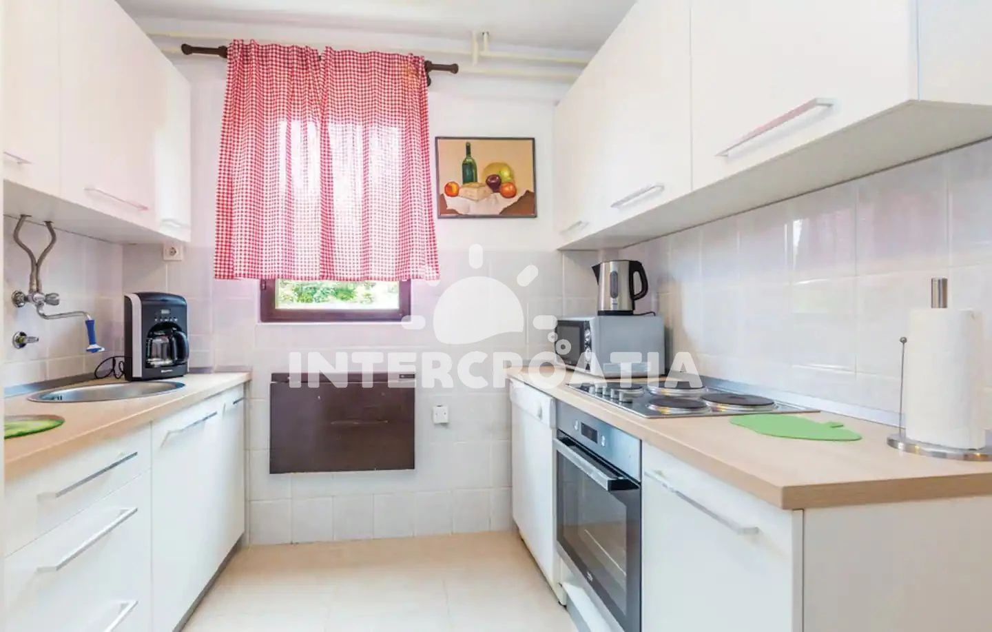 Vzdálenosti: Moře 3,8 km, pláž 3,6 km (oblázková a betonové desky), centrum 1 km, supermarket 1 km, pošta 1,2 km, bar 1,2 km, restaurace 2,5 km, banka 3,5 km, diskotéka 3,5 km, potápění 4 km,