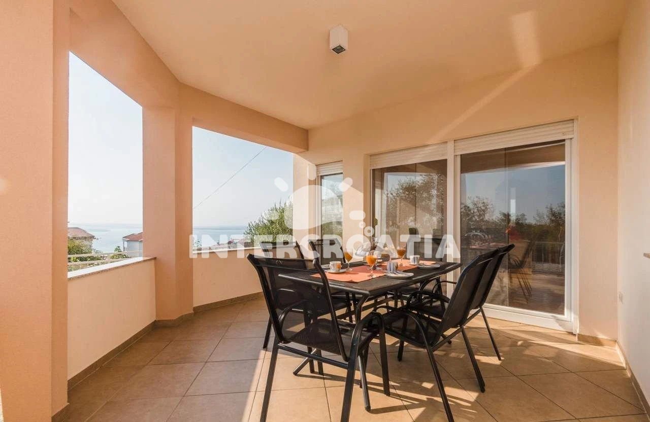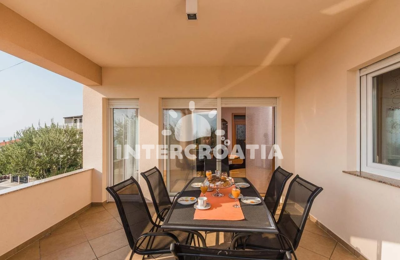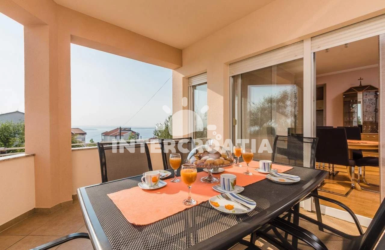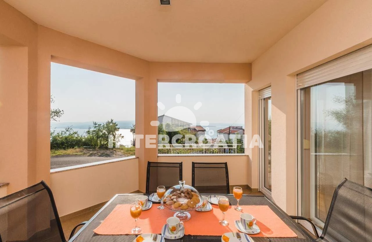 Apartmán (65 m2) s terasou, a výhledem na moře. Nachází se v přízemí objektu. Apartmán má 2 ložnice a je vhodný pro až 4 osoby. Kuchyňská linka je vybavena varnou deskou, troubou, kávovarem, myčkou…