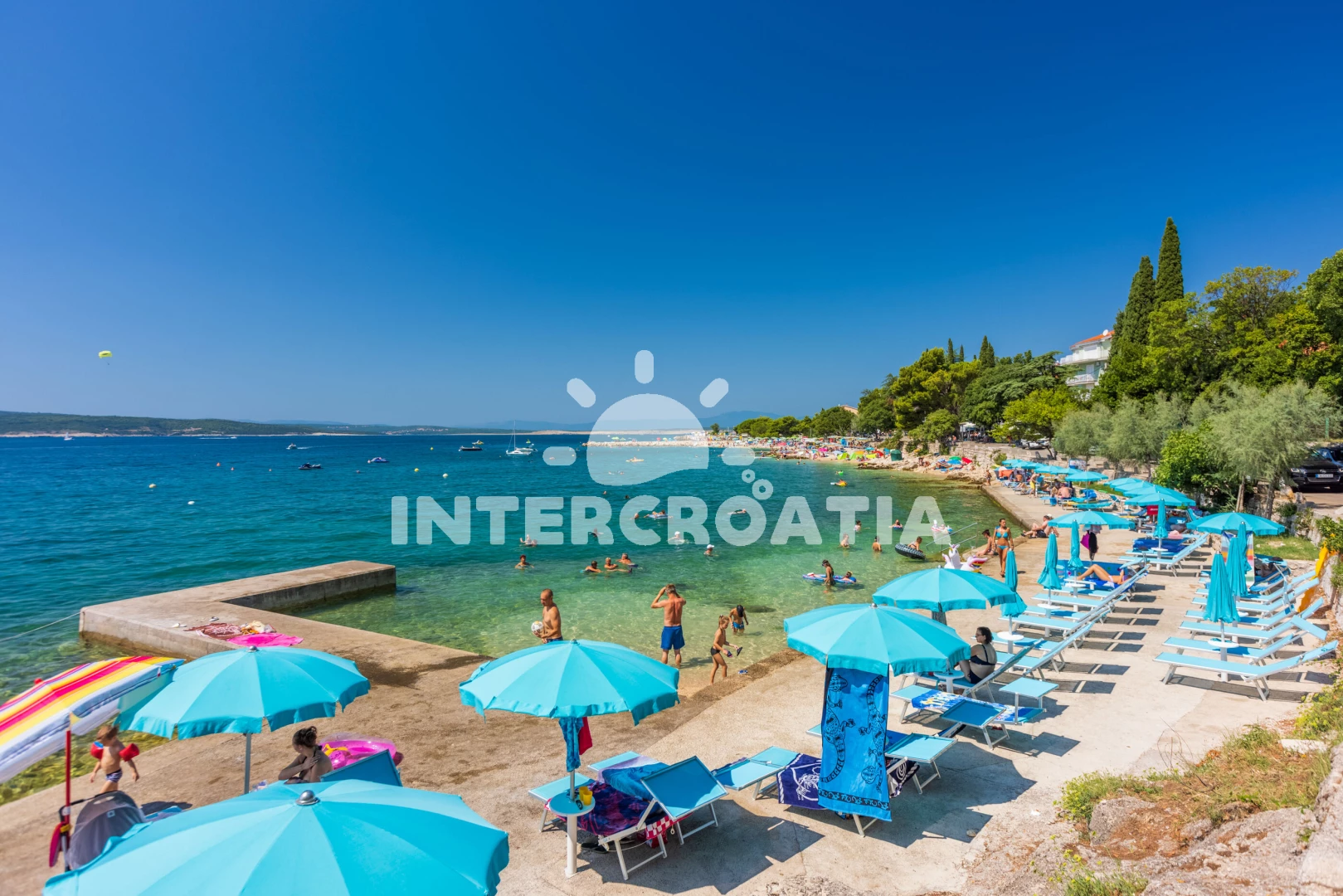 Vzdálenosti: Moře 1,2 km, pláž 1,2 km (oblázková a betonové desky), supermarket 600 m, směnárna 1 km, centrum 1,1 km, veřejná doprava 1,1 km, diskotéka 1,1 km, lékárna 1,1 km, ambulance 1,1 km, čerpací stanice 1,1 km, banka 1,1 km, pošta 1,1 km, restaurace 1,2 km, bar 1,2 km, potápění 2,5 km, letiště (Rijeka) 30 km,