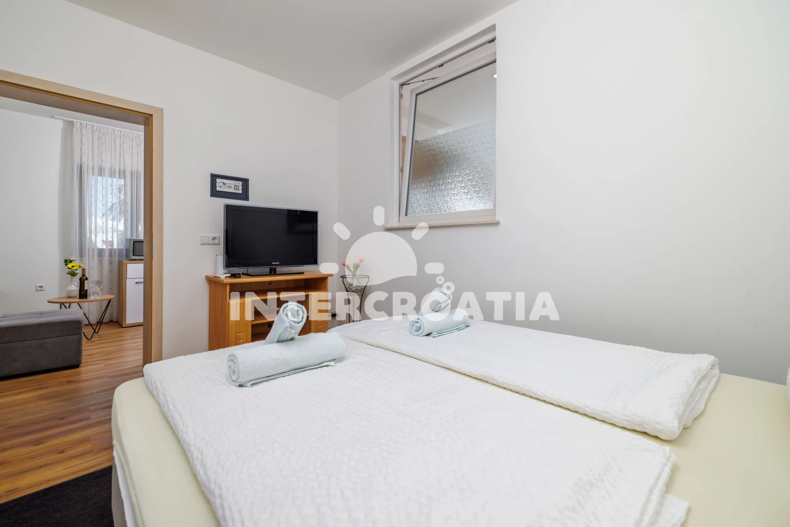 Domácí zvířata nejsou povolena. V ceně pobytu zahrnuto: WiFi, klimatizace (část místností), povlečení, ručníky, závěrečný úklid, pobytová taxa. Pronajímatel se dorozumí chorvatsky, německy, Pronajímatel vás bude očekávat po 14:00. V den odjezdu je nutné vyklidit apartmán do 10:00.