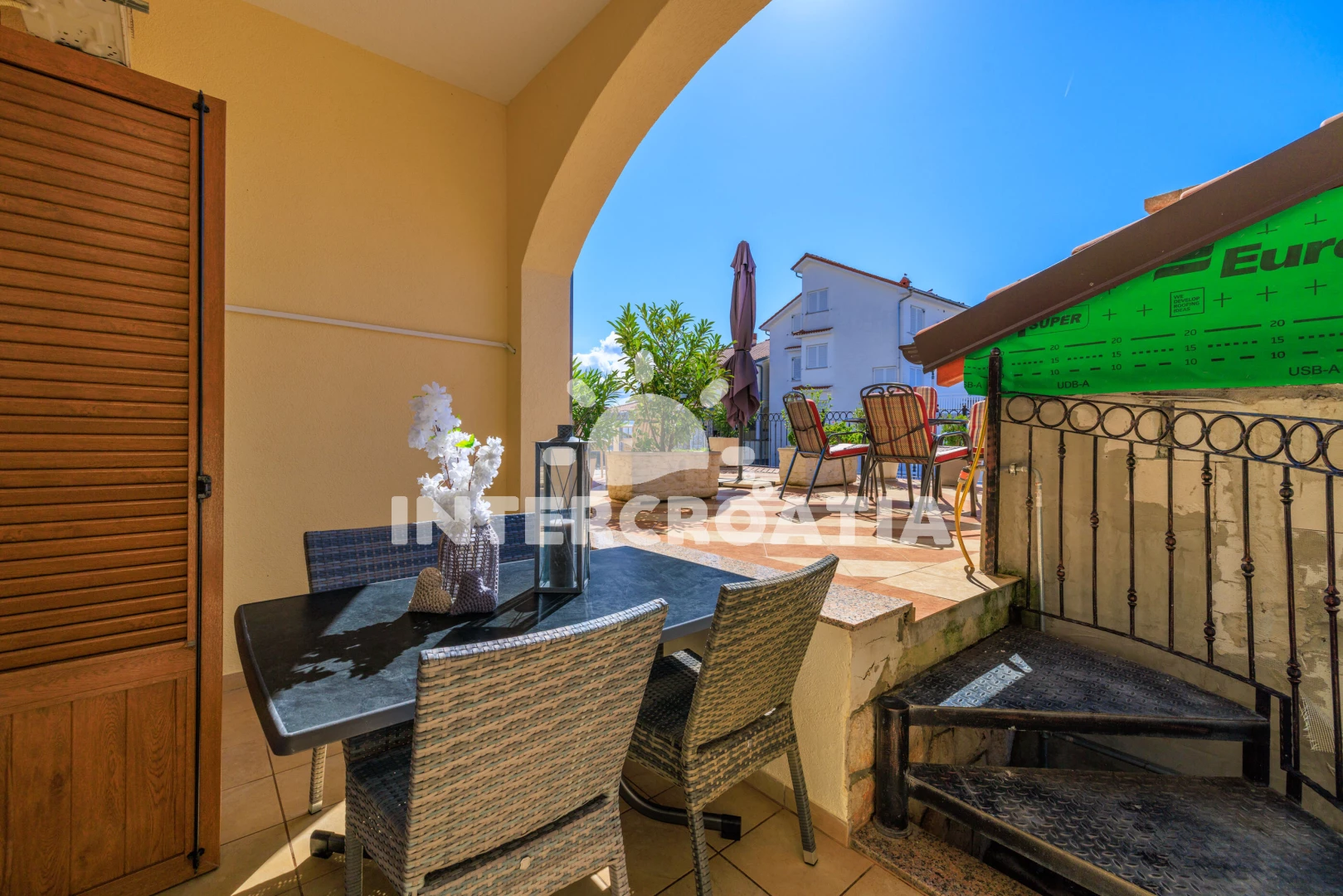 Vzdálenosti: Moře 800 m, pláž 800 m (skalnatá, oblázková a betonové desky), restaurace 800 m, veřejná doprava 900 m, lékárna 950 m, pošta 1 km, supermarket 1 km, muzeum 1 km, čerpací stanice 1,1 km, centrum 1,1 km, bar 1,2 km, ambulance 1,3 km, marina 1,3 km, banka 1,5 km, potápění 2,2 km, letiště (Rijeka) 23 km, trajekt (Rijeka) 33 km,