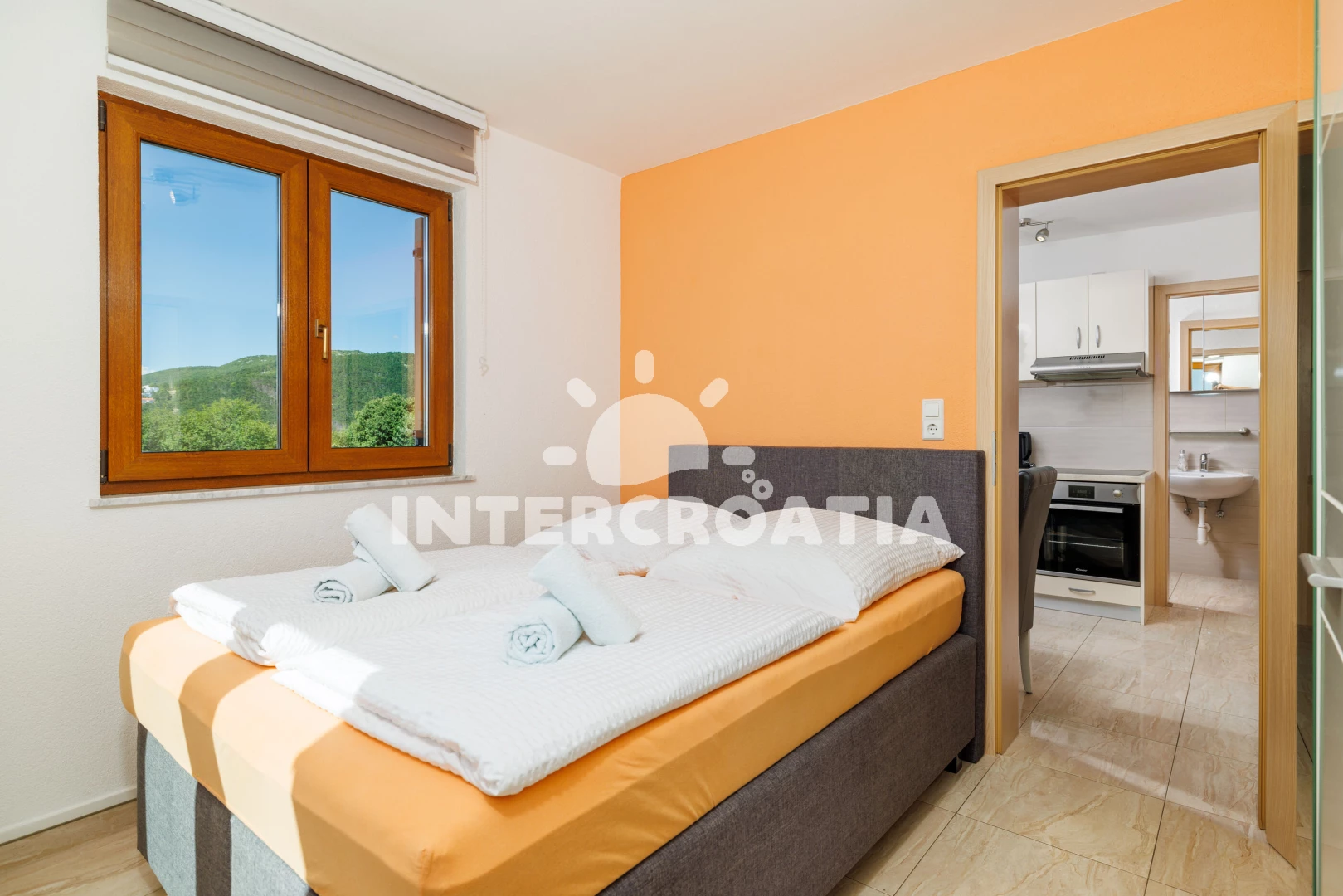 Vzdálenosti: Moře 800 m, pláž 800 m (skalnatá, oblázková a betonové desky), restaurace 800 m, veřejná doprava 900 m, lékárna 950 m, pošta 1 km, supermarket 1 km, muzeum 1 km, čerpací stanice 1,1 km, centrum 1,1 km, bar 1,2 km, ambulance 1,3 km, marina 1,3 km, banka 1,5 km, potápění 2,2 km, letiště (Rijeka) 23 km, trajekt (Rijeka) 33 km,