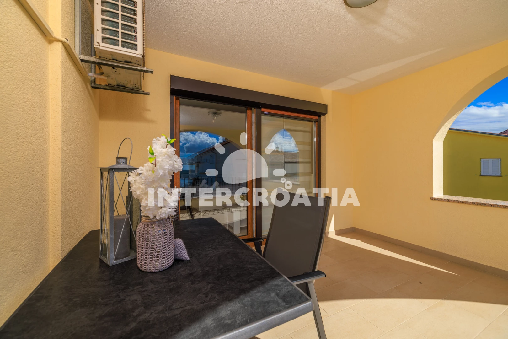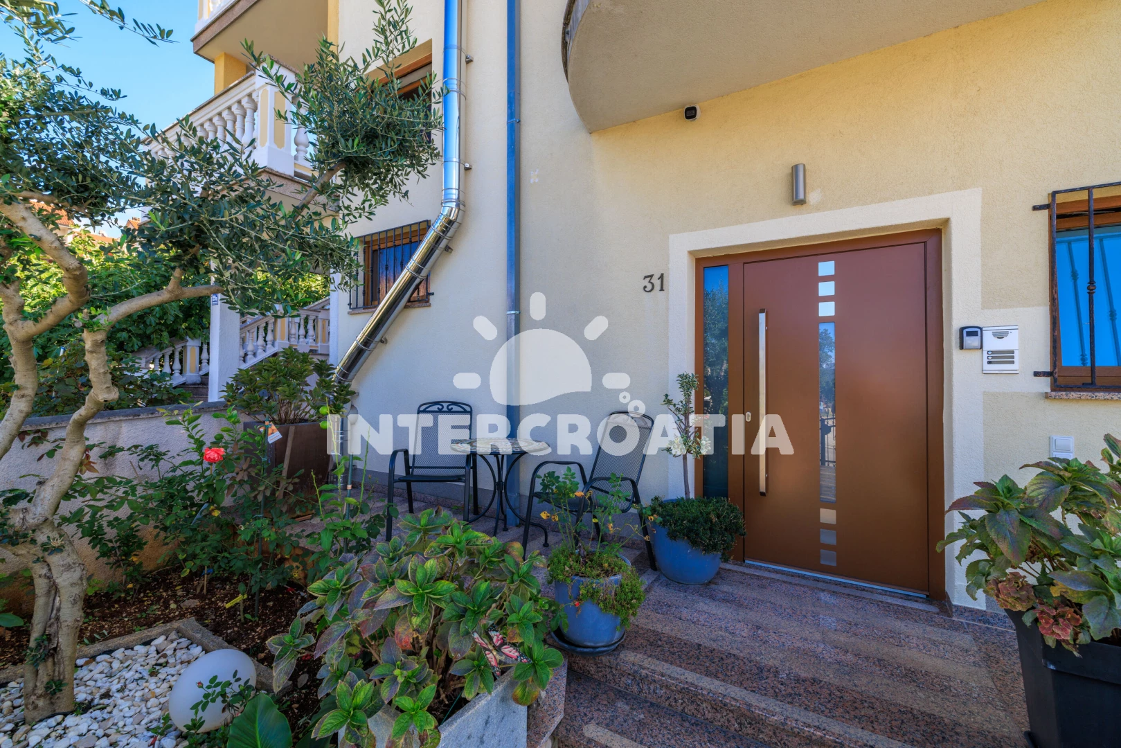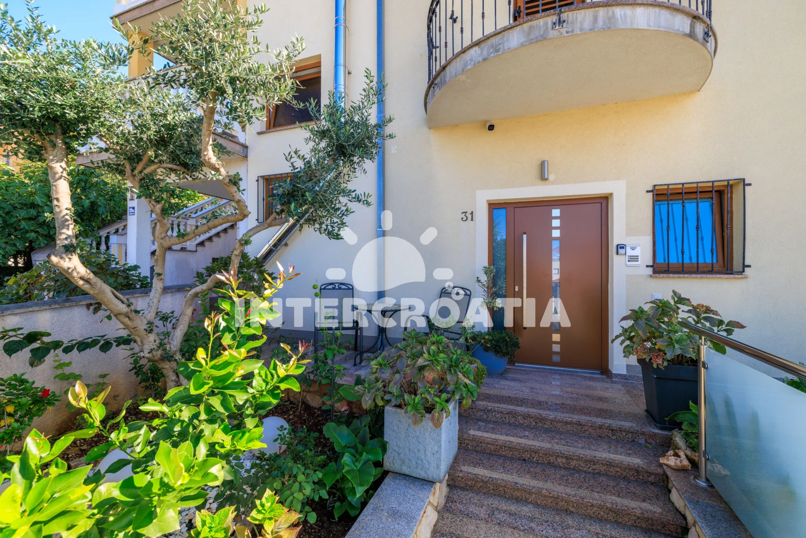 Apartmán se nachází 800 m od moře a pláže. Pláž je skalnatá, oblázková a betonové desky. Apartmán disponuje bazénem s lehátky pro ubytované hosty. U objektu je k dispozici společná zahrada s posezením a grilem. Parkování je před domem.