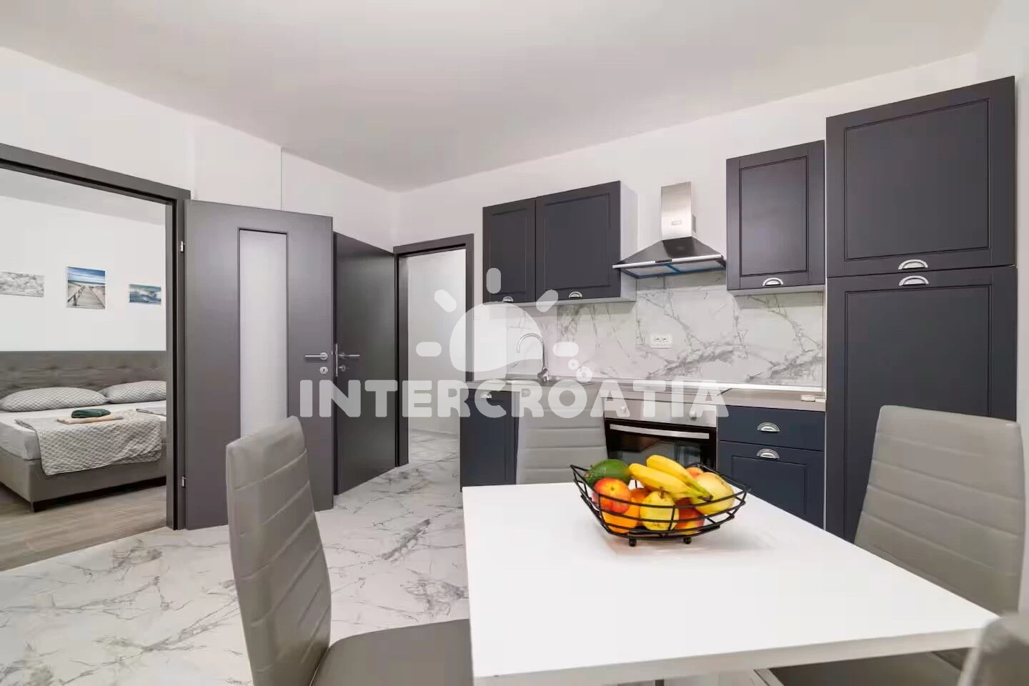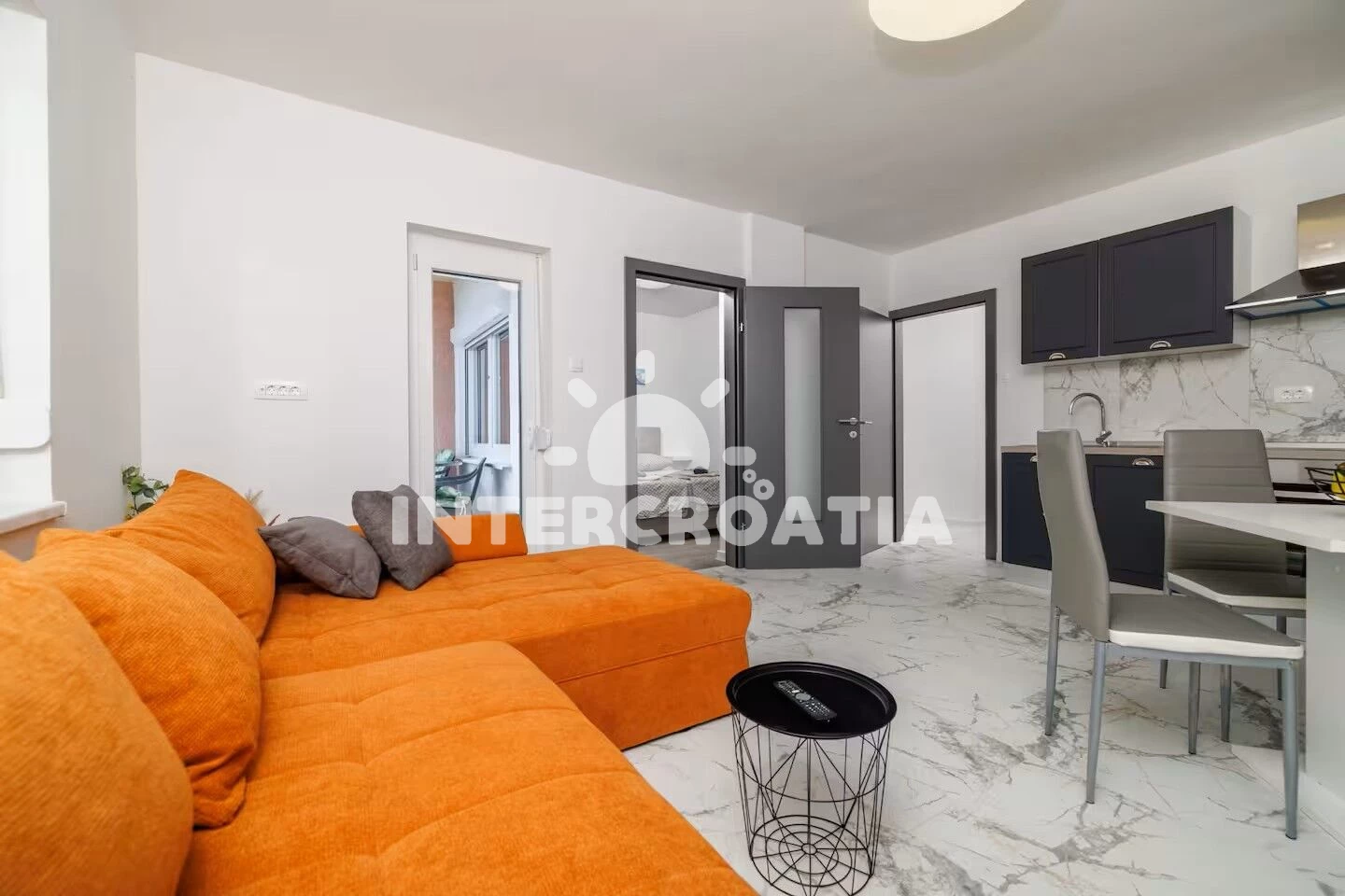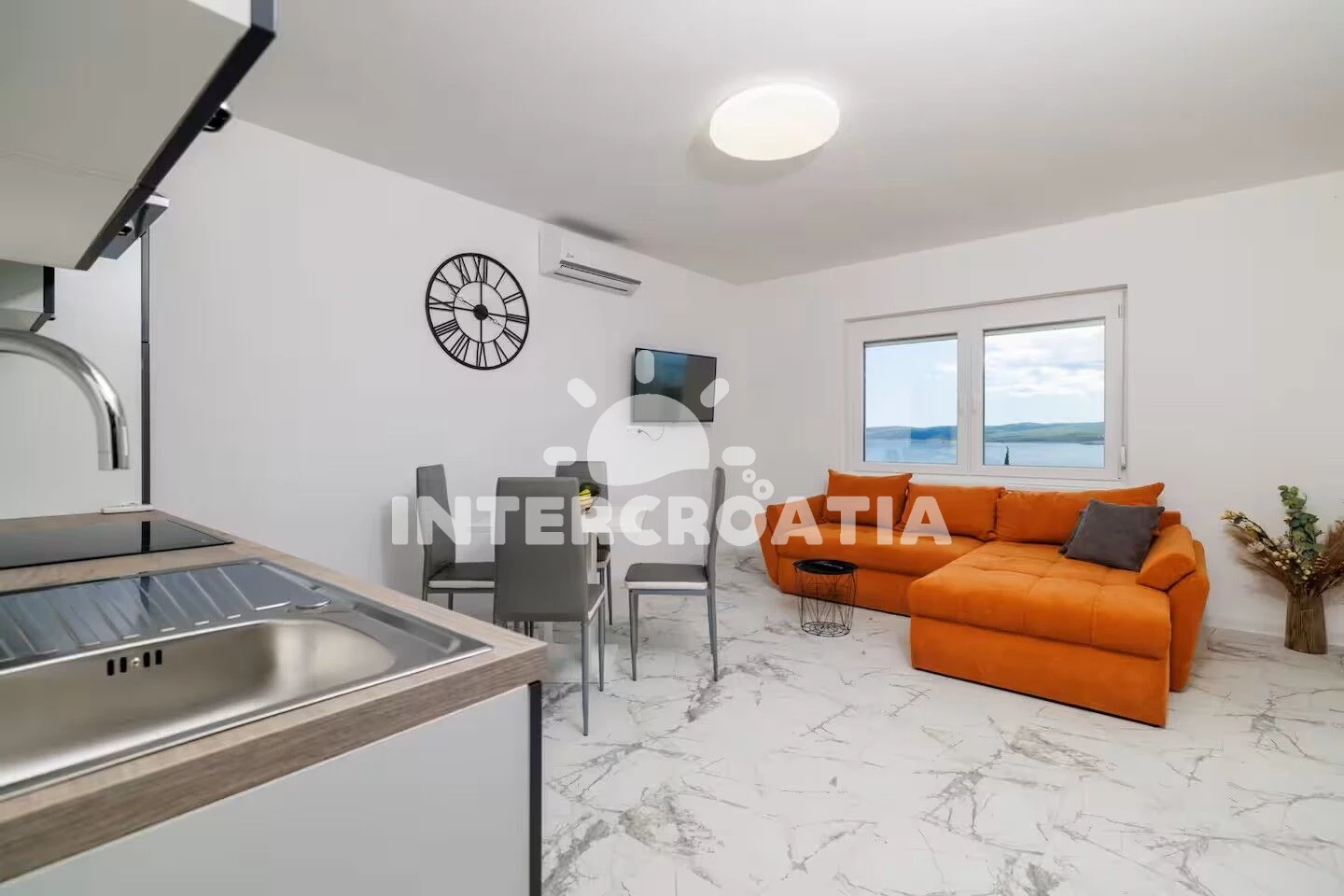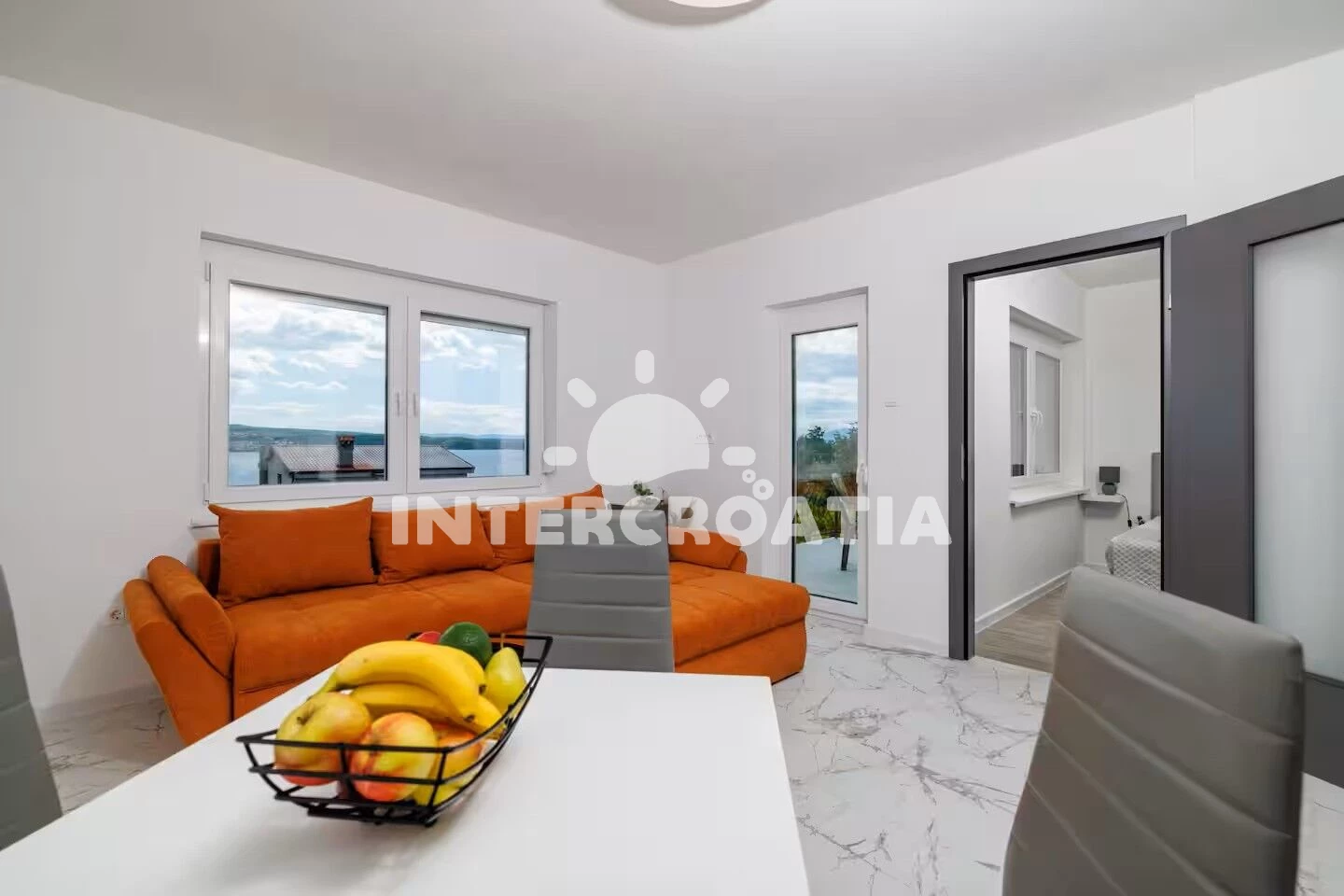 Apartmán (70 m2) s výhledem na moře. Nachází se v 1. patře objektu. Apartmán má 2 ložnice a je vhodný pro až 4 osoby. Kuchyňská linka je vybavena varnou deskou, troubou, myčkou na nádobí,…