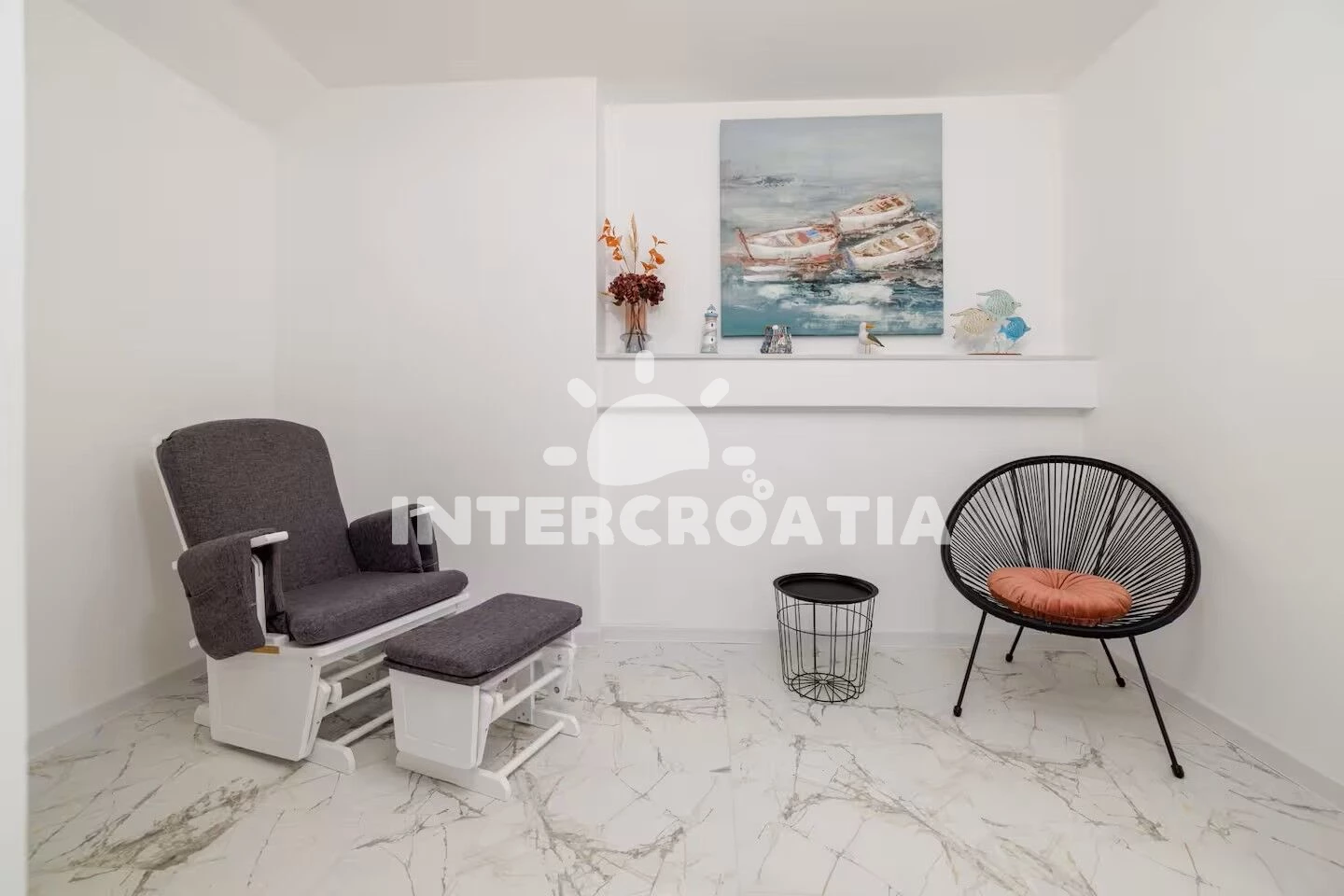 Vzdálenosti: Moře 350 m, pláž 450 m (skalnatá a oblázková), supermarket 50 m, bar 180 m, veřejná doprava 200 m, restaurace 250 m, tenisové kurty 850 m, čerpací stanice 950 m, diskotéka 1,4 km, muzeum 1,4 km, centrum 1,4 km, pošta 1,4 km, banka 1,4 km, směnárna 1,4 km, ambulance 1,4 km, lékárna 1,4 km, půjčovna kol 1,4 km, marina 1,6 km, mini golf 2,2 km,