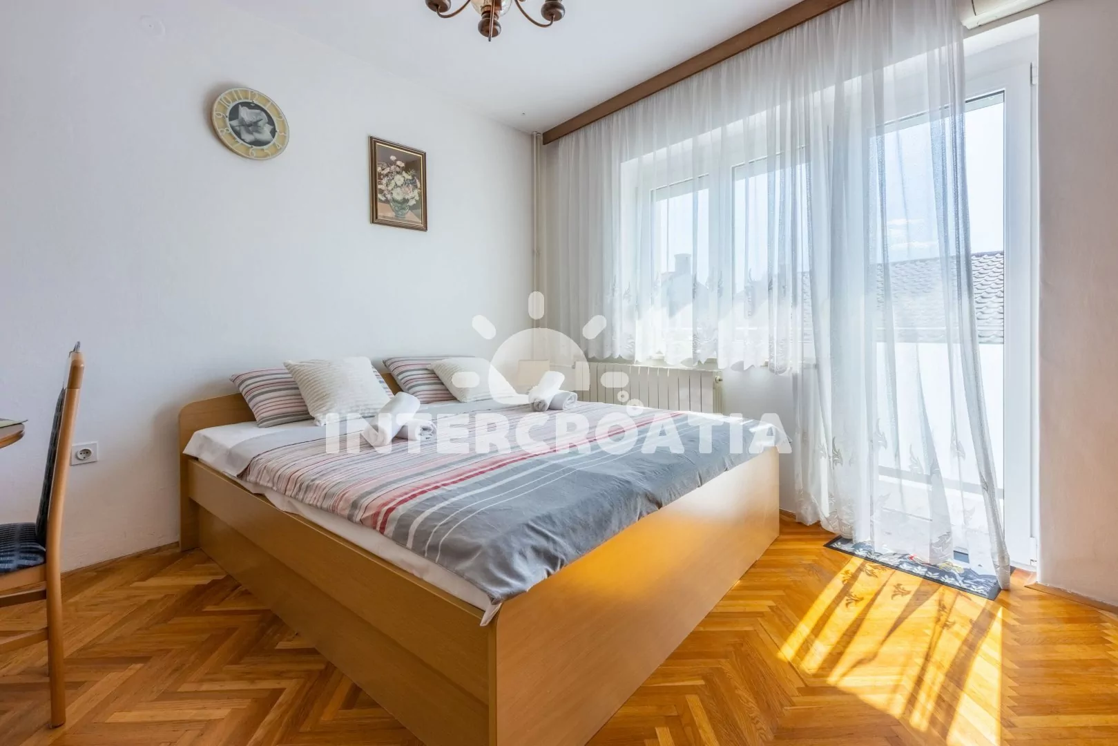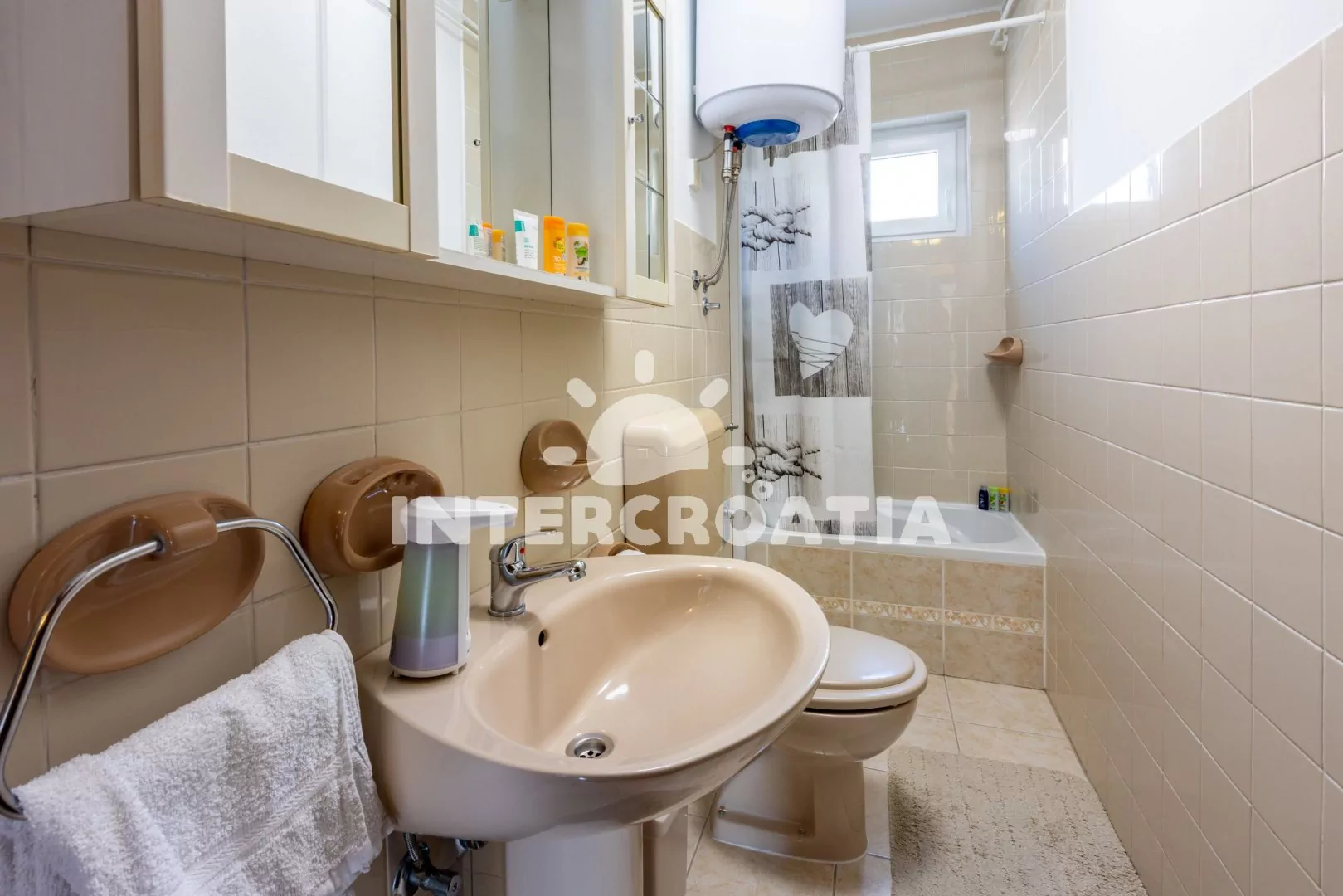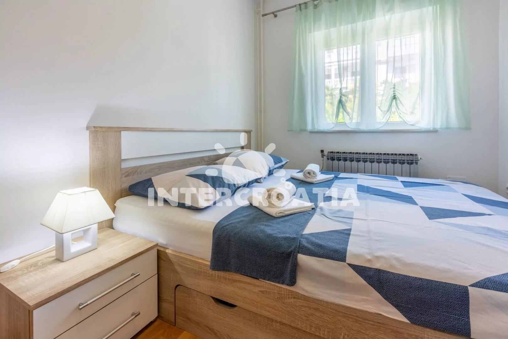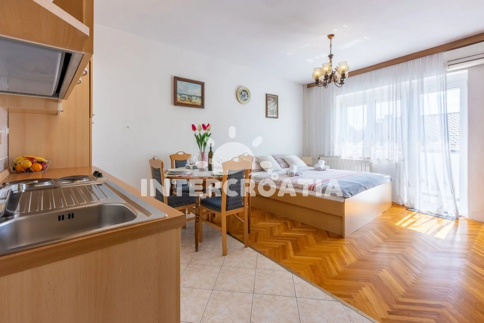Apartmán s vlastní balkonem a venkovním posezením se nachází ve 2. patře domu. Apartmán má 1 ložnici a je vhodný pro až 4 osoby. Kuchyň je spojena s obývacím pokojem. Kuchyňský kout je vybaven nádobím, elektrickým dvouplotýnkovým sporákem, vestavěnou troubou, toustovačem, kávovarem, rychlovarnou konvicí a lednicí s mrazákem. Obývací místnost s jídelním stolem, televizí se satelitním programem, jedním dvoulůžkem a vstupem na balkon. Ložnice s jedním dvoulůžkem. Koupelna se sprchovým koutem, umyvadlem a wc. K dispozici: WiFi, klimatizace a rádio. Parkovací místo na požádání (50 - 150 m od domu).