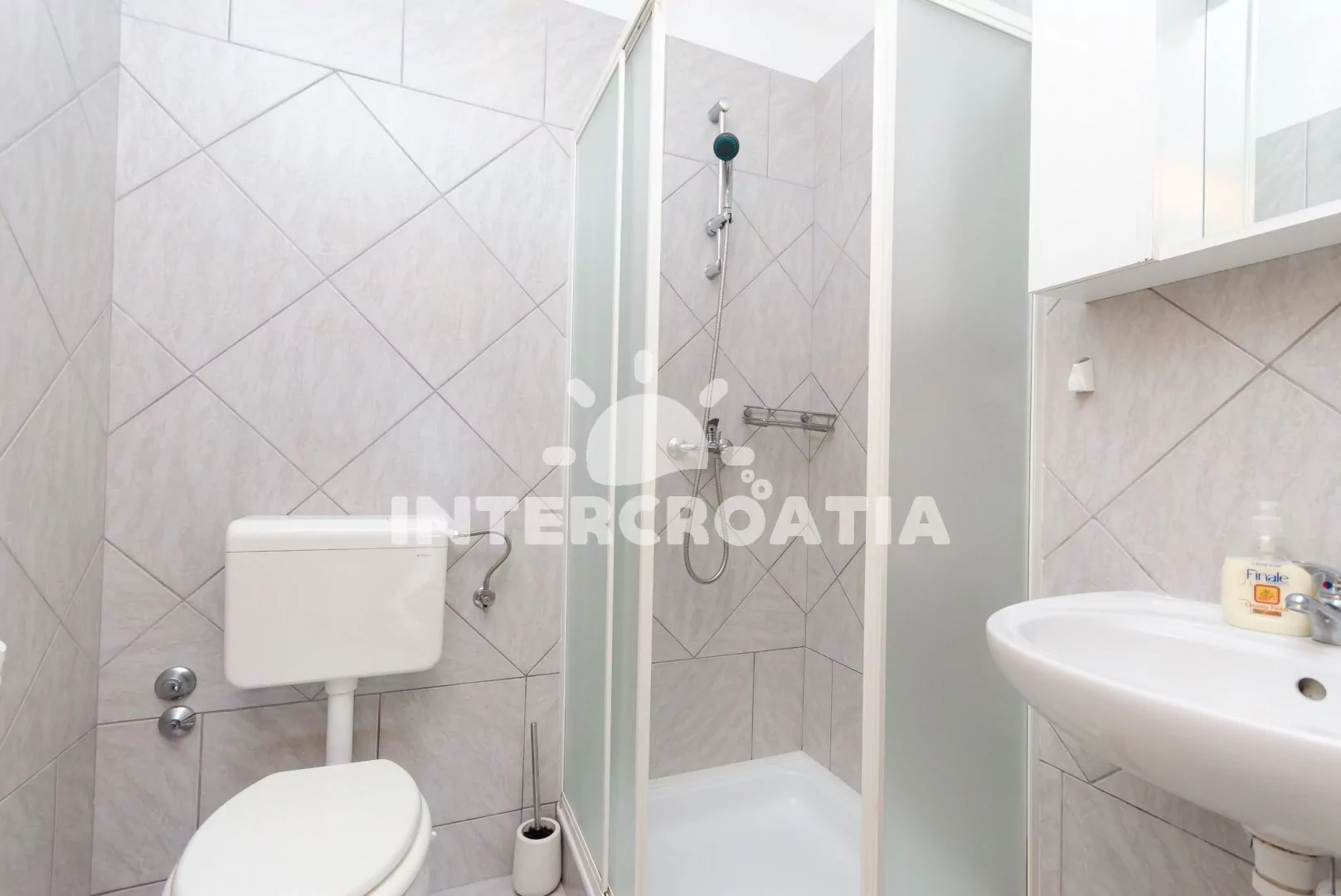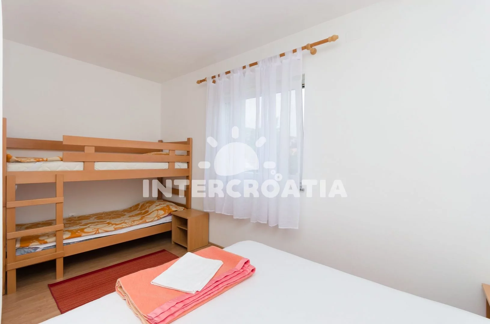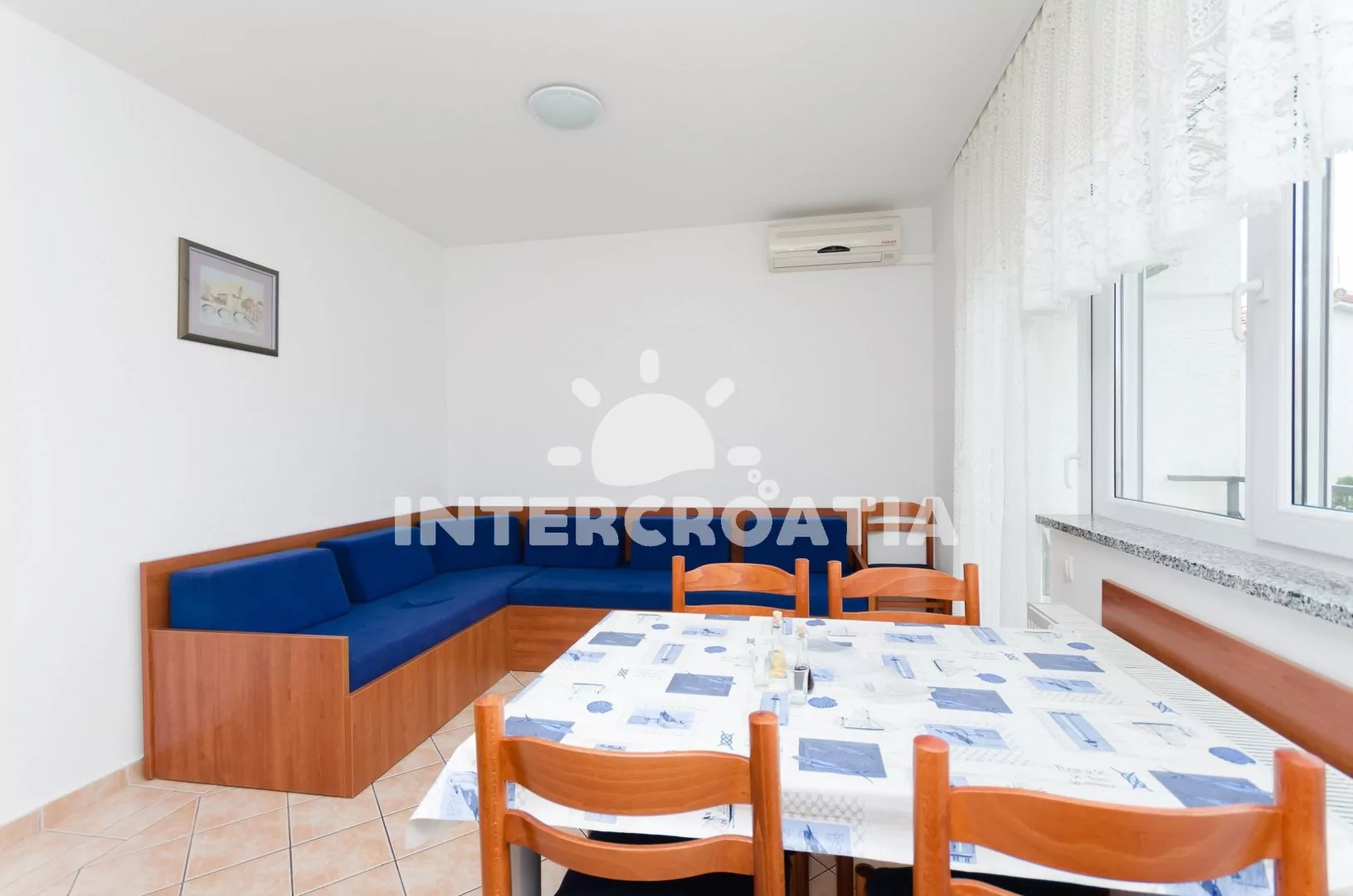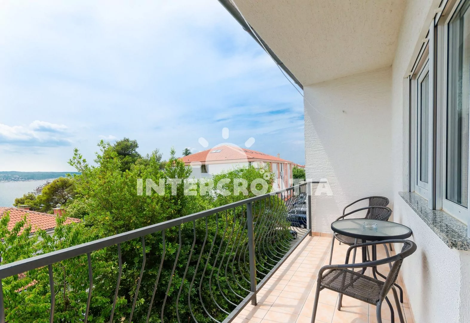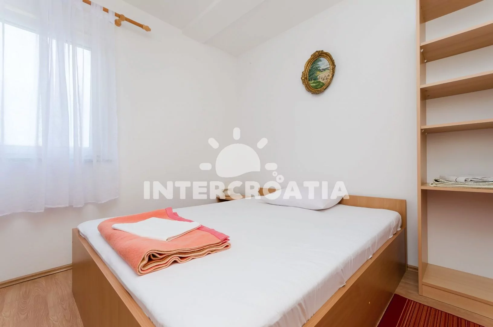 Apartmán pro 4 osoby s výhledem na moře se nachází v druhém patře domu. Obývací pokoj spojený s Kuchyní. Kuchyňská linka s varnou deskou, digestoří, rychlovarnou konvicí, kávovarem, nádobím a lednicí s mrazákem. Obývací pokoj s jídelním stolem pro 4 osoby, dvěma jednolůžky, klimatizací, televizí se satelitním programem a vstupem na balkon. Ložnice s jedním dvoulůžkem. Koupelna se sprchovým koutem, umyvadlem a wc. Parkování u objektu zdarma.