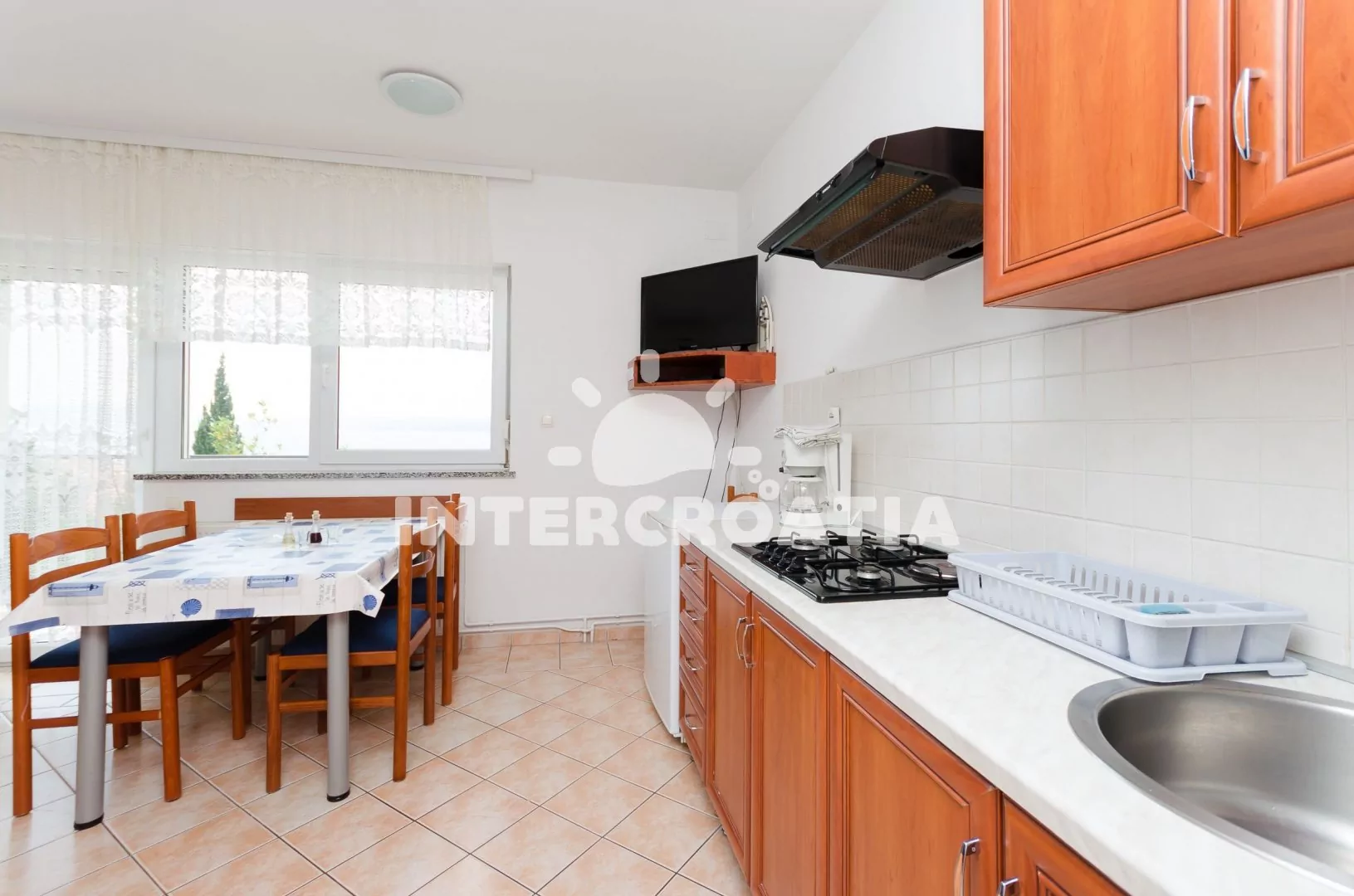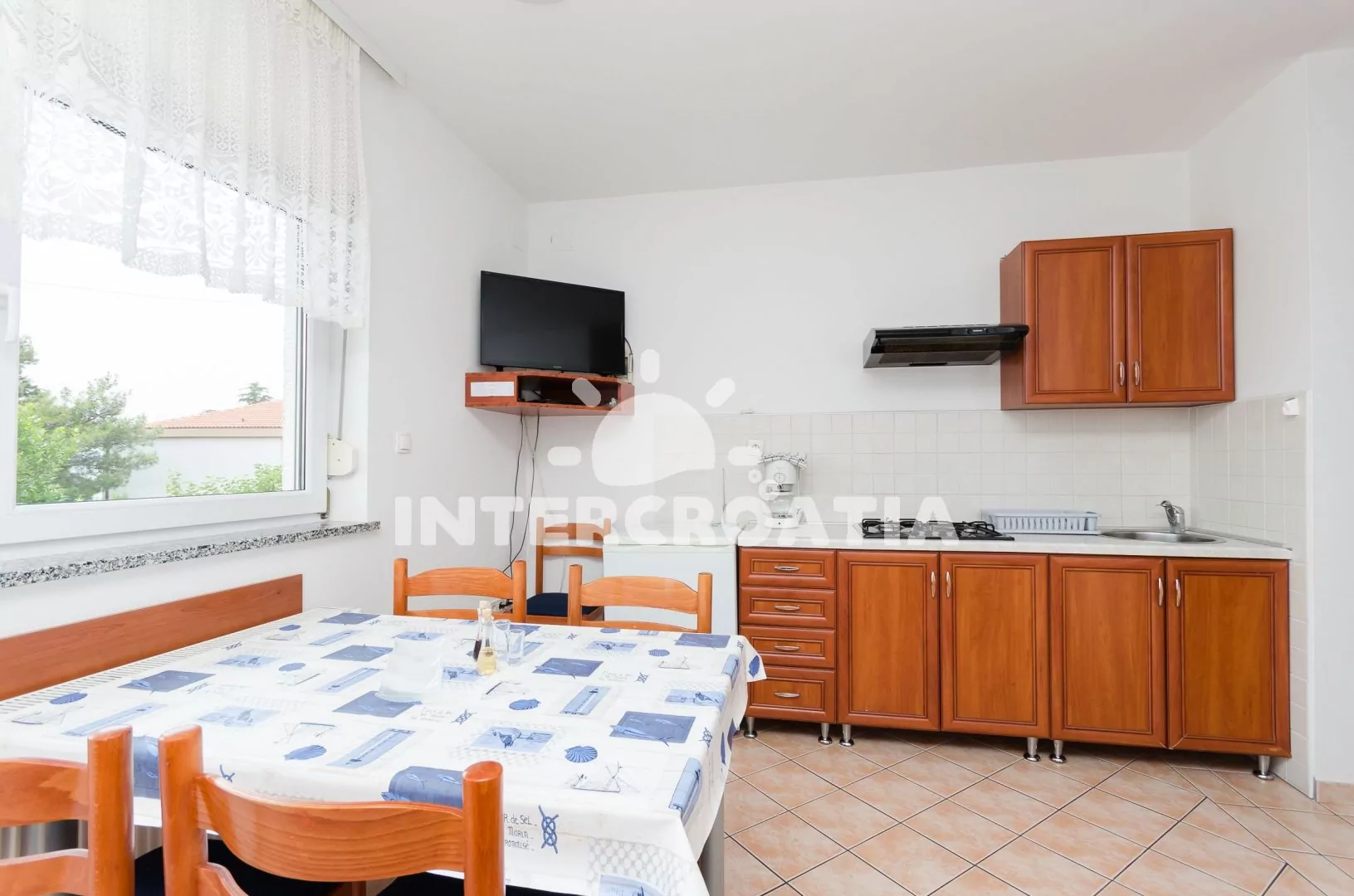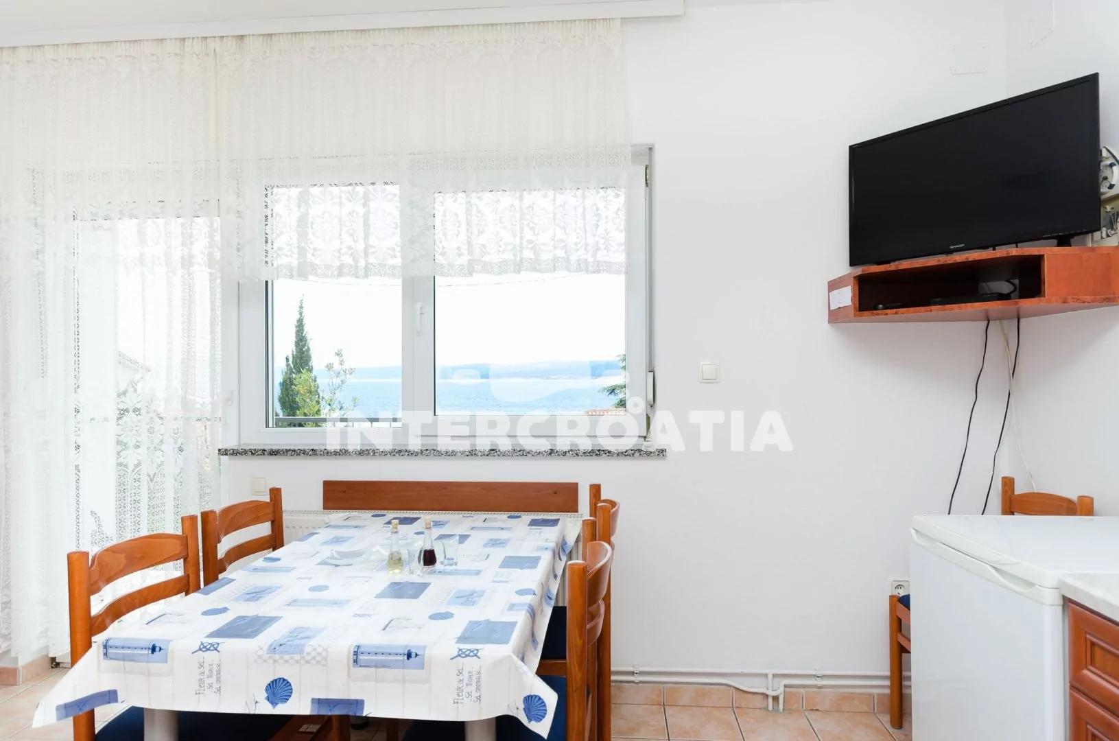 Apartmán pro 4 osoby s výhledem na moře se nachází v druhém patře domu. Obývací pokoj spojený s Kuchyní. Kuchyňská linka s varnou deskou, digestoří, rychlovarnou konvicí, kávovarem, nádobím a lednicí…