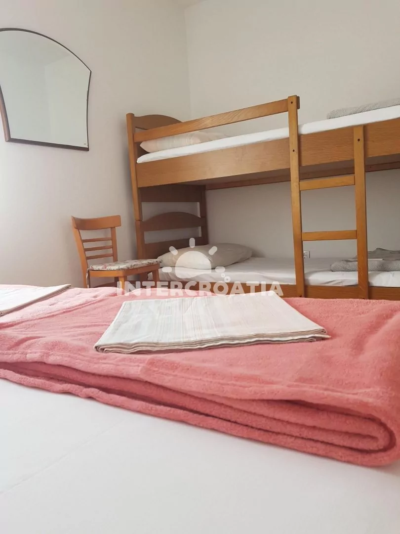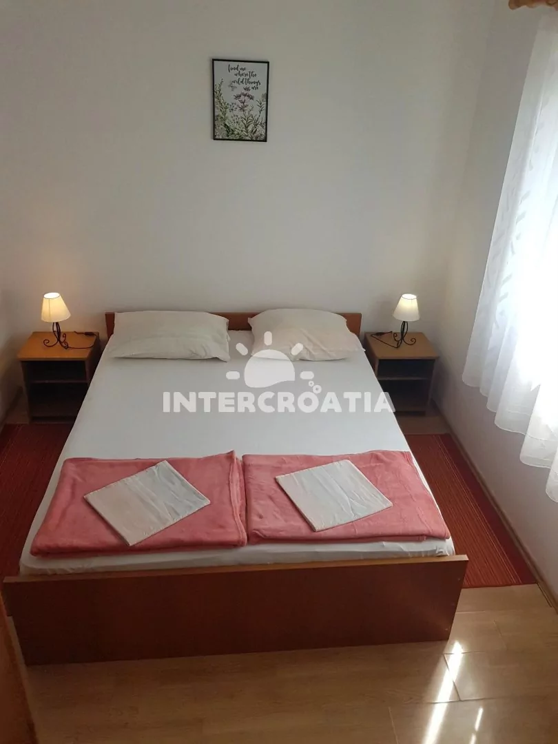 Apartmán pro 2 až 4 osoby s výhledem na moře se nachází v druhém patře domu. Obývací pokoj spojený s Kuchyní. Kuchyňská linka s varnou deskou, digestoří, rychlovarnou konvicí, kávovarem, nádobím a lednicí s mrazákem. Obývací pokoj s jídelním stolem pro 4 osoby, rozkládací pohovkou (extra lůžko), klimatizací, televizí se satelitním programem a vstupem na balkon. Ložnice s jedním dvoulůžkem a jedním jednolůžkem. Koupelna se sprchovým koutem, umyvadlem a wc. Parkování u objektu zdarma.