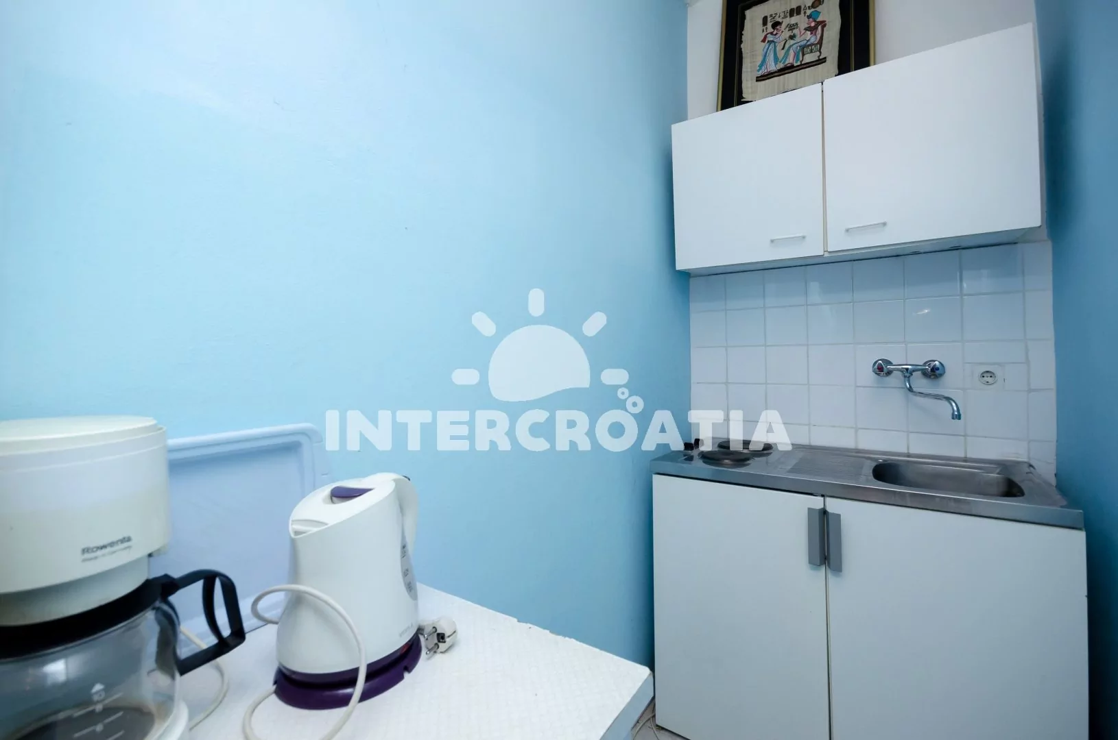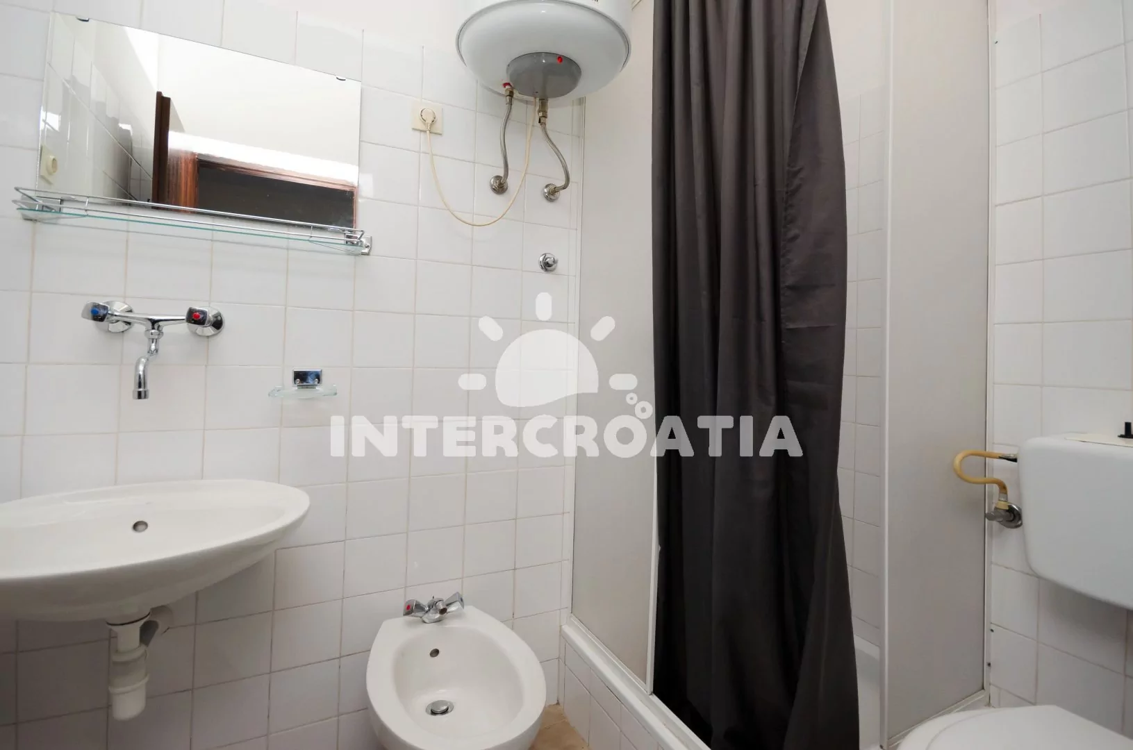 Apartmán typu studio pro 2 osoby s venkovním posezením na terase a výhledem na moře. Umístění v prvním patře vily. Vstup: Obývací pokoj spojený s kuchyní. Kuchyňská linka s dvouplotýnkovým sporákem,…