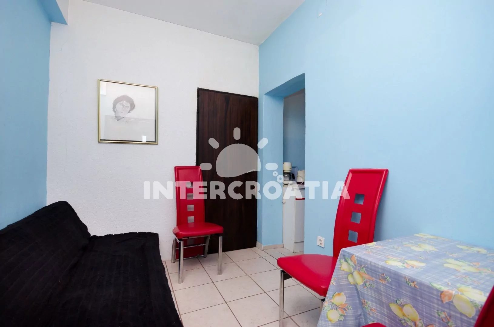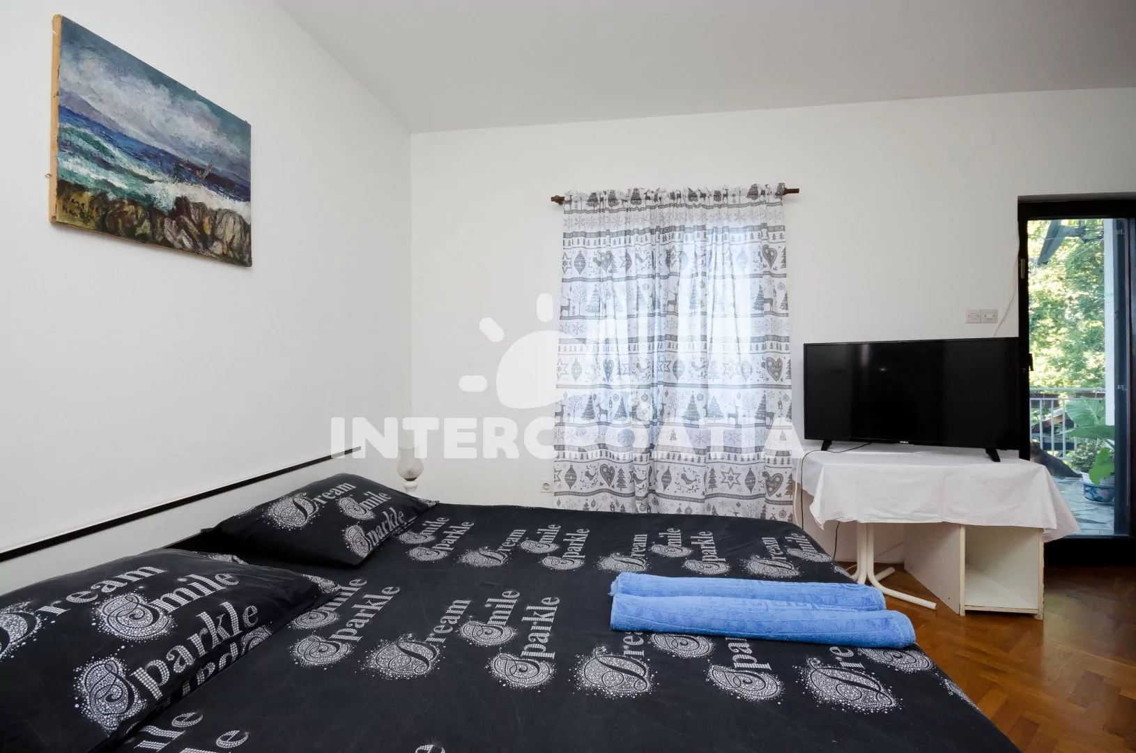 Apartmán typu studio pro 2 osoby s venkovním posezením na terase a výhledem na moře. Umístění v prvním patře vily. Vstup: Obývací pokoj spojený s kuchyní. Kuchyňská linka s dvouplotýnkovým sporákem, troubou, rychlovarnou konvicí (služba na požádání), toustovačem, kávovarem, nádobím a lednicí s mrazákem. Obývací pokoj s jídelním stolem, pohovkou, televizí se satelitním programem a klimatizací. Ložnice s jedním dvoulůžkem. Koupelna se sprchovým koutem, umyvadlem, bidetem a wc. Hostům je k dispozici parkování u objektu zdarma.