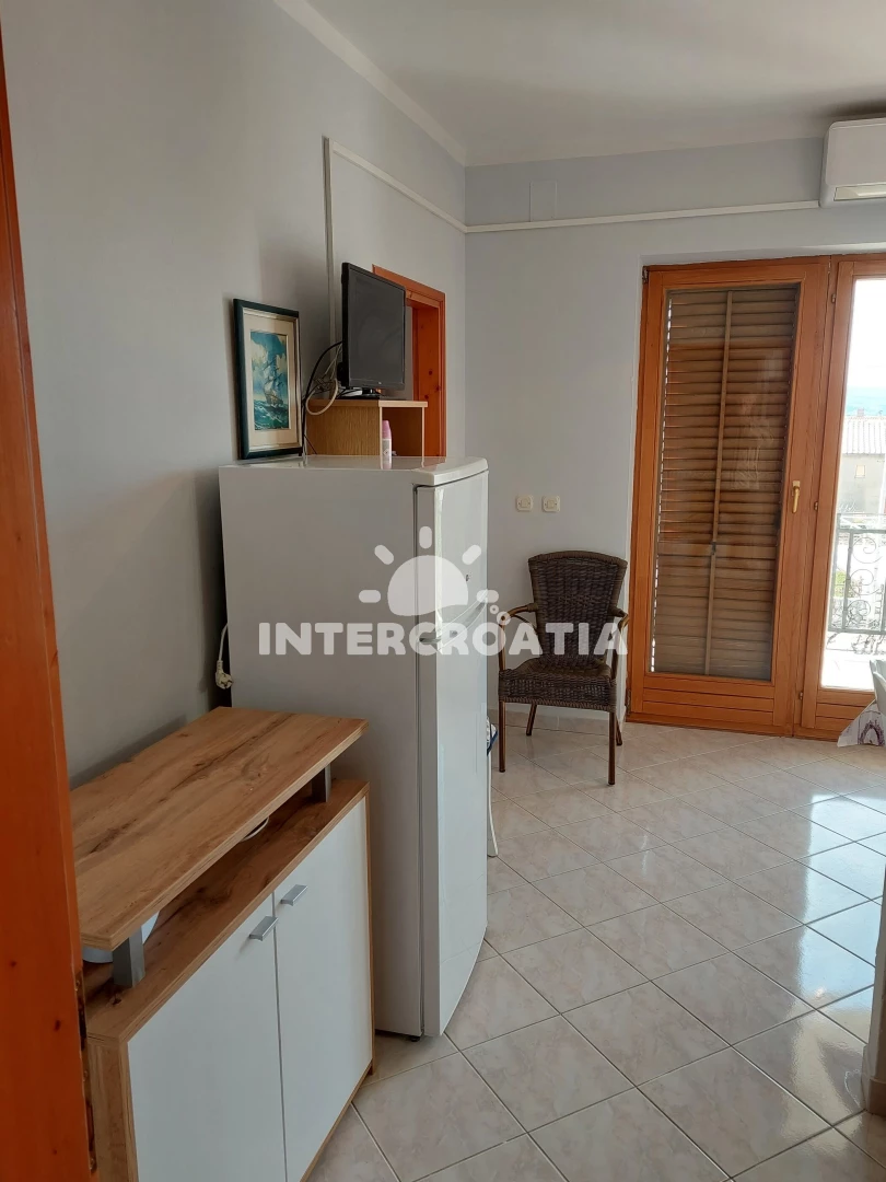 Apartmán (36 m2) s výhledem na moře a klidnou ulici, nachází se v prvním patře domu. Kuchyň je vybavena jídelním stolem pro 3 osoby, kuchyňskou linkou se sporákem, digestoří, rychlovarnou konvicí,…