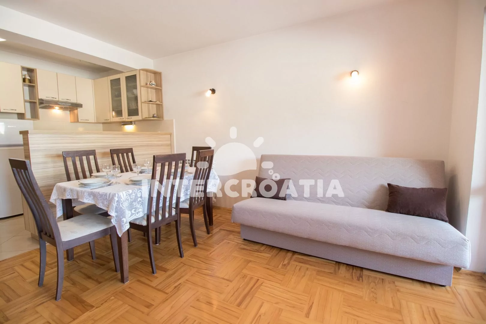Domácí zvířata nejsou povolena. V ceně pobytu zahrnuto: WiFi, klimatizace, topení, povlečení, ručníky, pobytová taxa a závěrečný úklid. Dětská postýlka, žehlička a pračka k dispozici u pronajímatele (služba na požádání). Registrační poplatek (180 Kč/osoba/pobyt, se připočte automaticky k ceně objednávky). Pronajímatel se dorozumí chorvatsky, anglicky a německy.