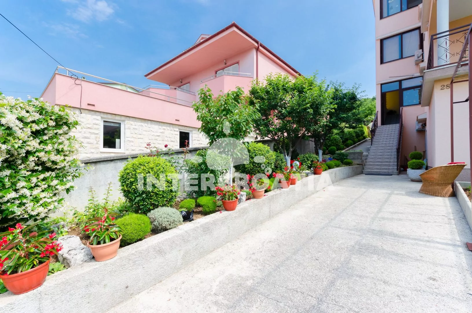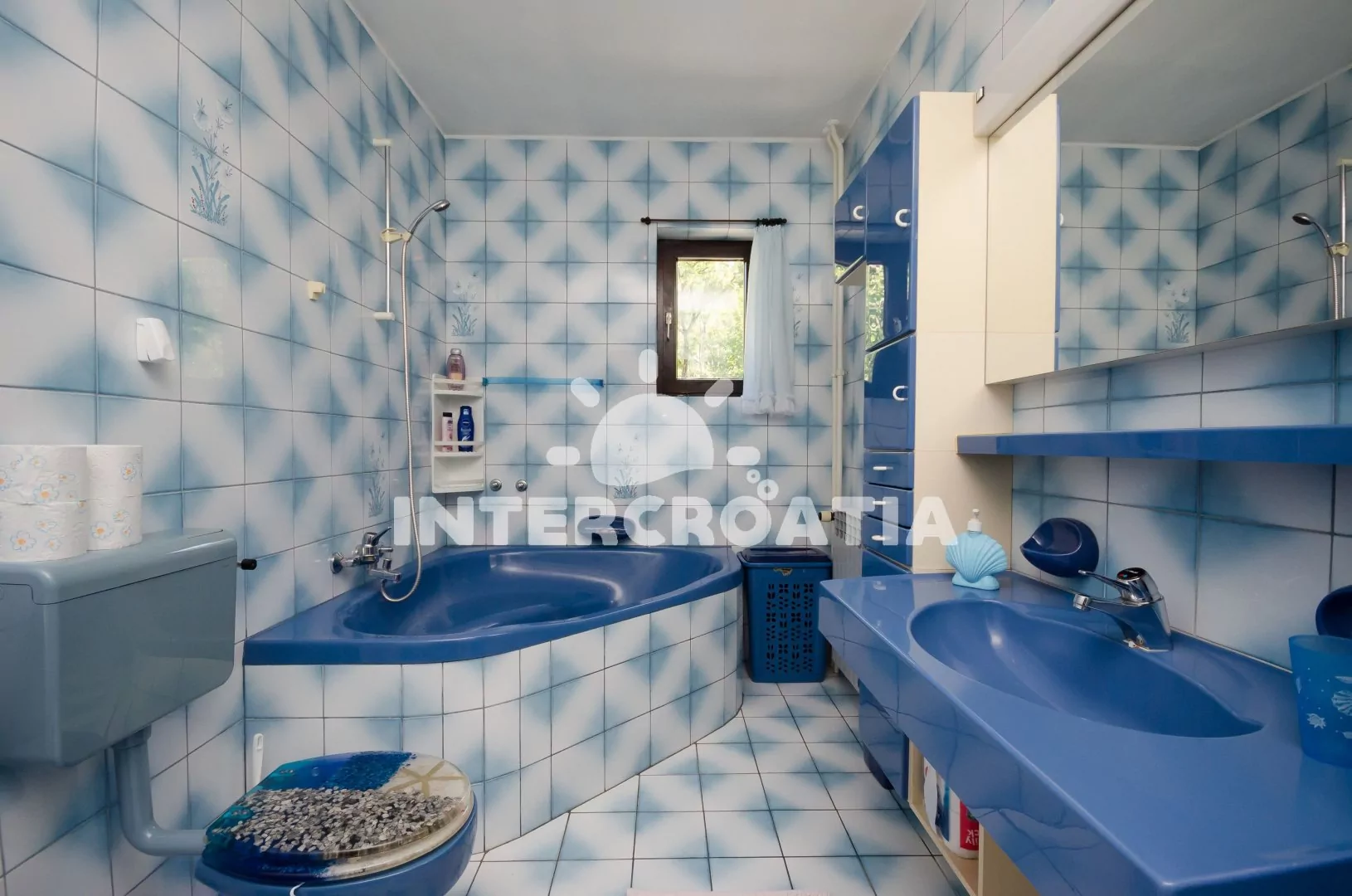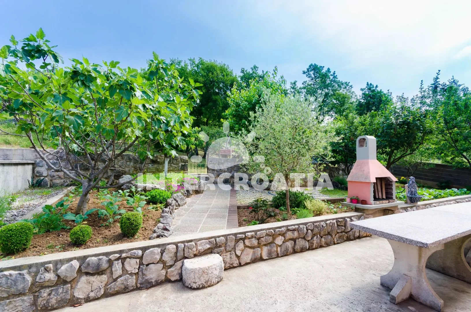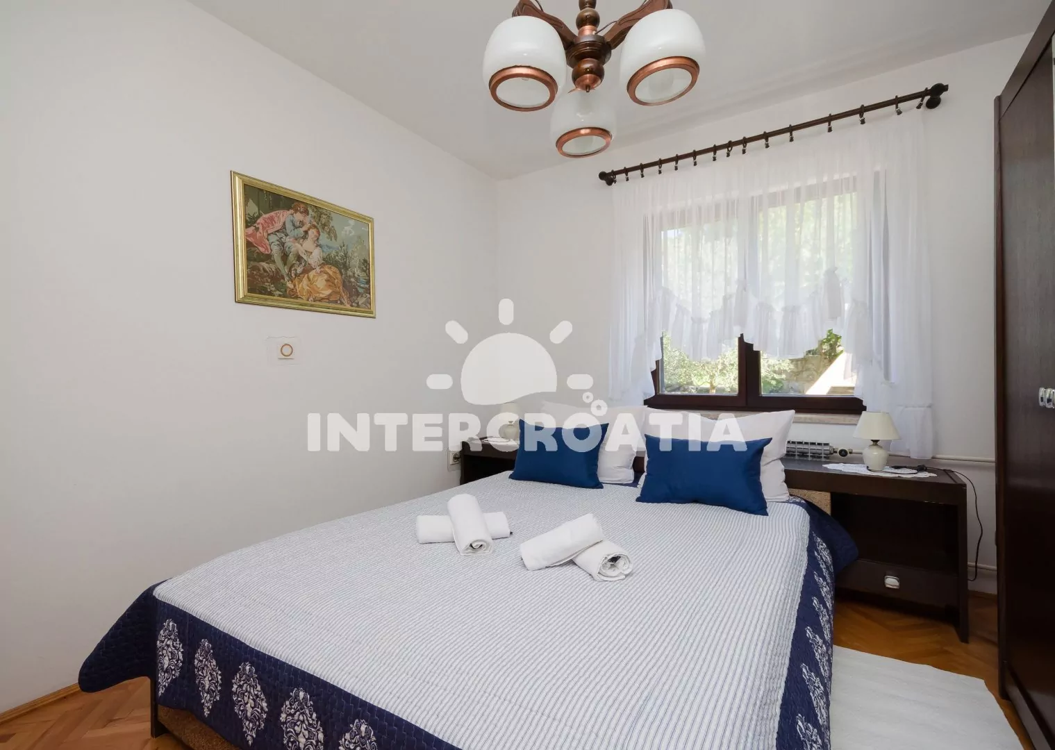 Hezky zařízený a samostatně stojící apartmánový dům se zahradou, zelení a stromy. K dispozici terasa s venkovním posezením a grilem. Dům je dobře dostupný automobilem a nachází se v blízkosti příjezdové cesty. Pešky dojdete k pláži s malými oblázky po 800 m. Parkovací místa u domu.