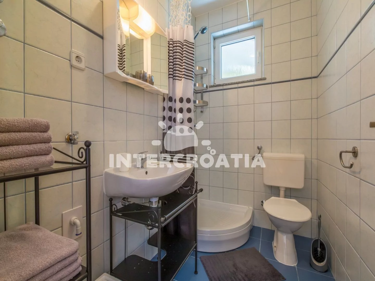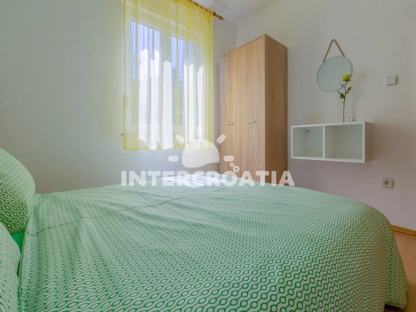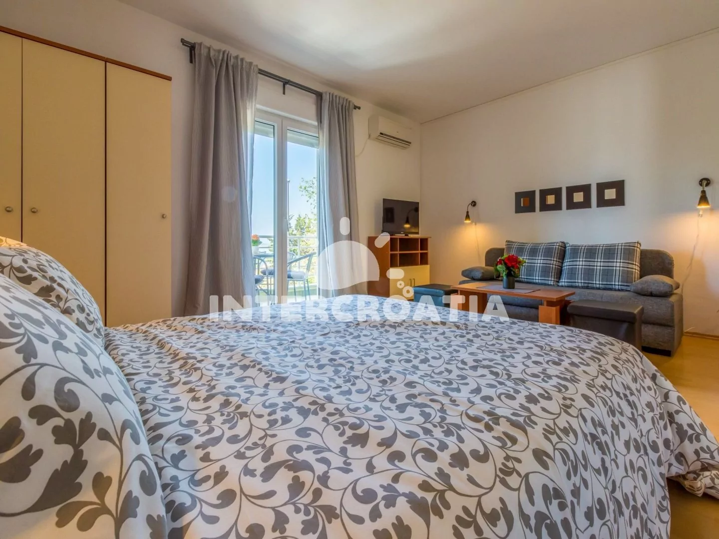 Apartmán (60 m2) v prvním patře domu s balkonem a výhledem na moře je vhodný pro 4 osoby. Vstup: kuchyň s jídelním stolem pro 4 osoby, kuchyňskou linkou s dvouplotýnkovým sporákem, mikrovlnnou troubou, rychlovarnou konvicí, kávovarem, nádobím a lednicí s mrazákem. První ložnice s dvoulůžkem, pohovkou, televizí se satelitním programem, klimatizací a vstupem na balkon. Druhá ložnice s dvoulůžkem. Koupelna se sprchovým koutem, umyvadlem, wc a fénem. Hostům je k dispozici parkování u objektu zdarma.
