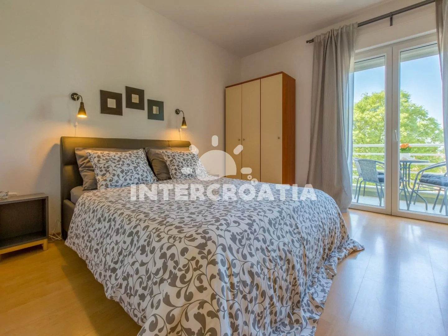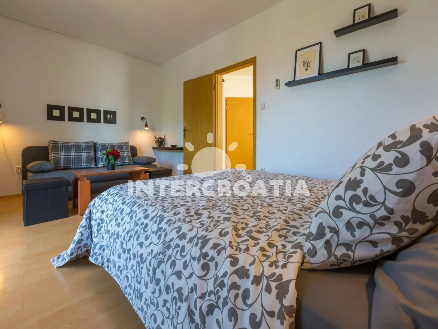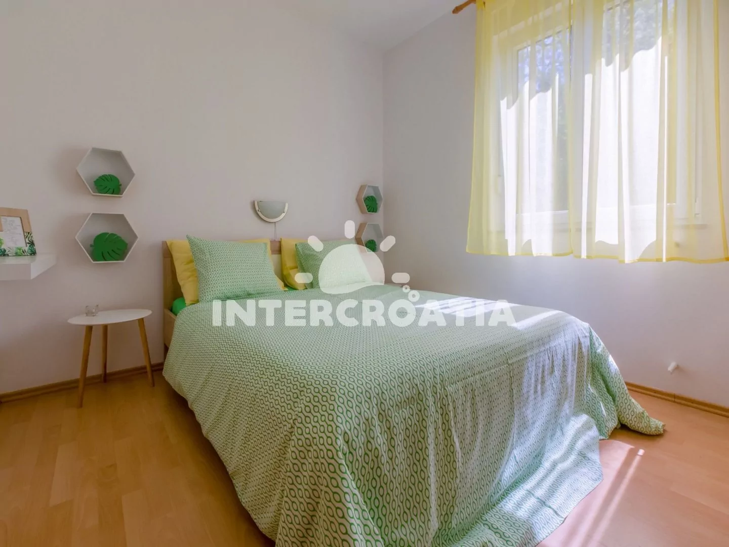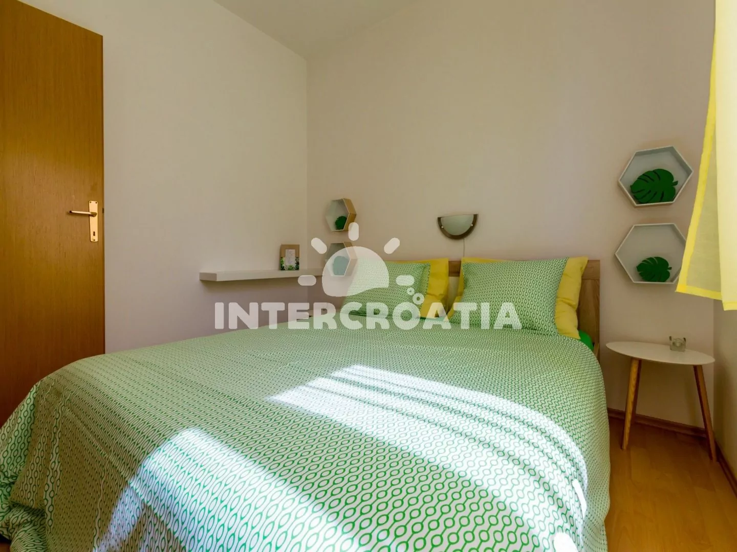 Apartmán (60 m2) v prvním patře domu s balkonem a výhledem na moře je vhodný pro 4 osoby. Vstup: kuchyň s jídelním stolem pro 4 osoby, kuchyňskou linkou s dvouplotýnkovým sporákem, mikrovlnnou troubou, rychlovarnou konvicí, kávovarem, nádobím a lednicí s mrazákem. První ložnice s dvoulůžkem, pohovkou, televizí se satelitním programem, klimatizací a vstupem na balkon. Druhá ložnice s dvoulůžkem. Koupelna se sprchovým koutem, umyvadlem, wc a fénem. Hostům je k dispozici parkování u objektu zdarma.