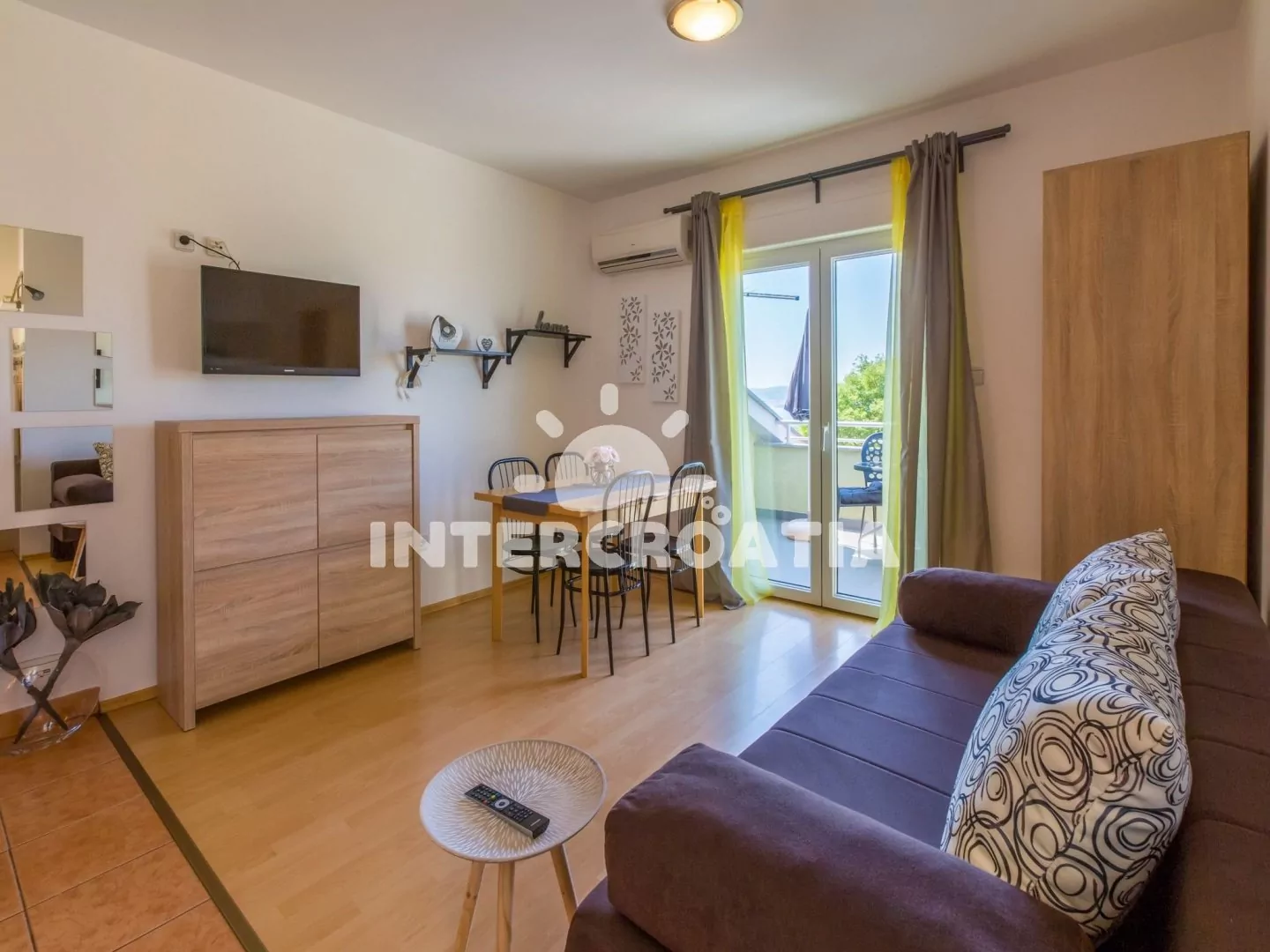 Apartmán (40 m2) v druhém patře domu s terasou a výhledem na moře je vhodný pro 2 - 4 osoby. Obývací pokoj je spojený s kuchyní. Kuchyňská linka je vybavena dvouplotýnkovým sporákem, mikrovlnnou troubou, rychlovarnou konvicí, kávovarem, nádobím a lednicí s mrazákem. Obývací pokoj s jídelním stolem pro 4 osoby, pohovkou (rozložitelná na extra lůžko pro 2 osoby), televizí se satelitním programem, klimatizací a vstupem na terasu. Ložnice s jedním dvoulůžkem. Koupelna se sprchovým koutem, umyvadlem, wc a fénem. Hostům je k dispozici parkování u objektu zdarma.