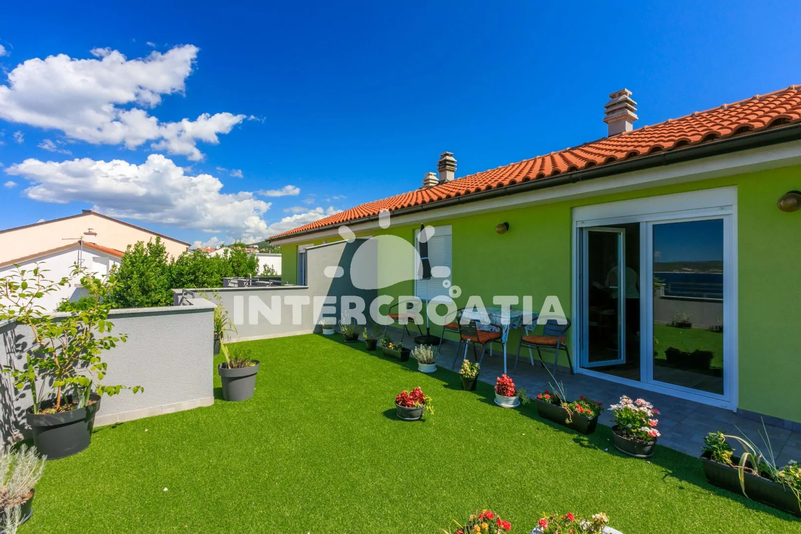 Moderně zařízený dům s jedinečným výhledem na moře a lodžiemi s venkovním posezením. Z domu je dobrá dostupnost jak k oblázkové pláži, tak do centra města.