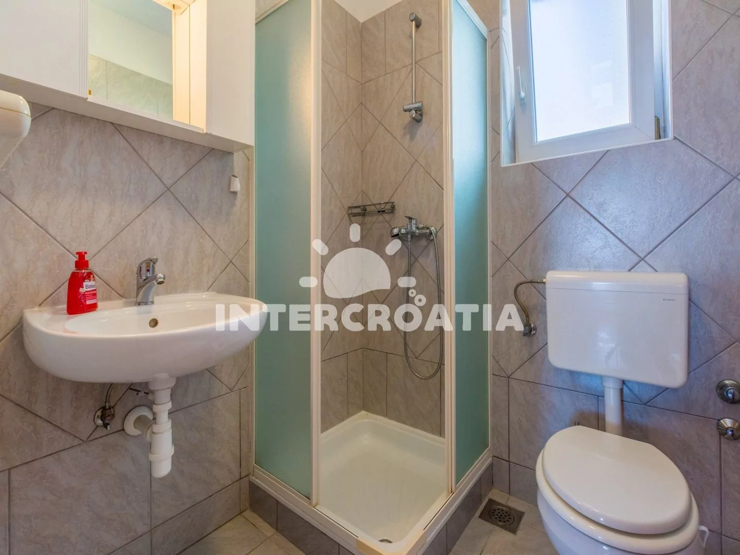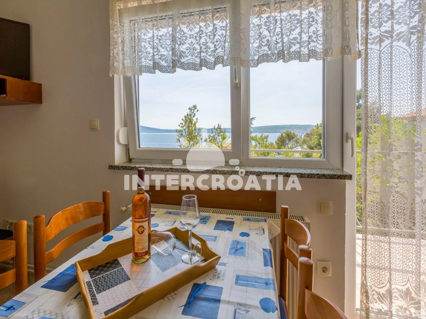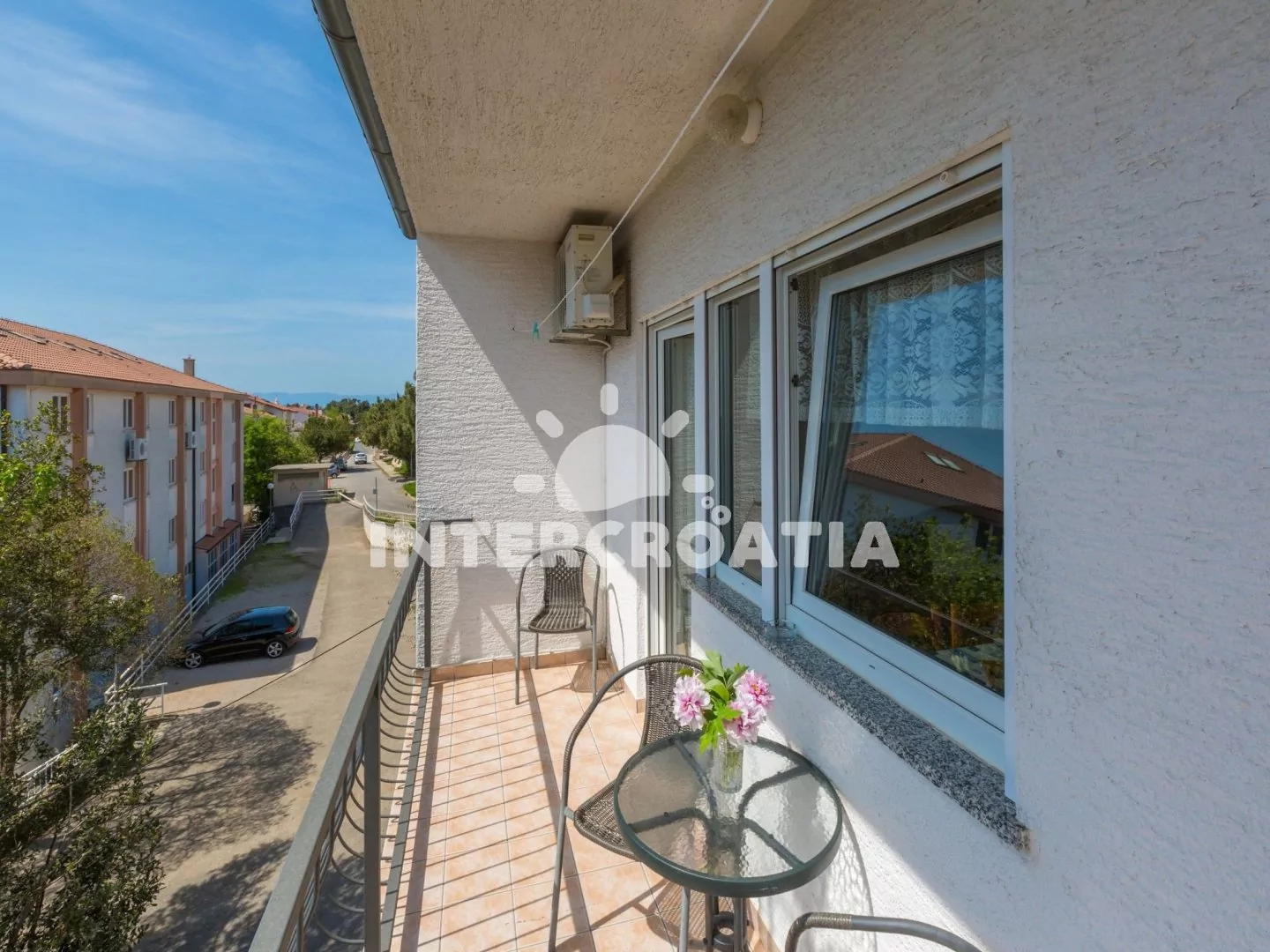 Apartmán s balkonem a výhledem na moře se nachází v druhém patře domu a je vhodný pro 2 až 4 osoby. Obývací pokoj je spojený s kuchyní. Kuchyňská linka je vybavena varnou deskou, digestoří, kávovarem, nádobím a lednicí s mrazákem. Obývací pokoj s jídelním stolem pro 4 osoby, sedací soupravou, pohovkou (rozložitelná na extra lůžko pro 2 osoby), televizí se satelitním programem, klimatizací a vstupem na balkon. Ložnice s dvoulůžkem. Koupelna se sprchovým koutem, umyvadlem a wc. Hostům je k dispozici parkování u objektu zdarma.