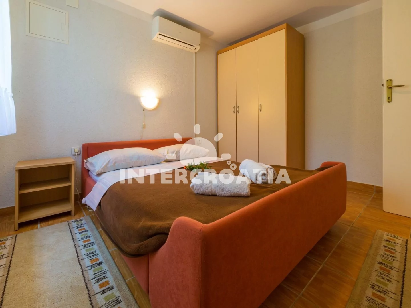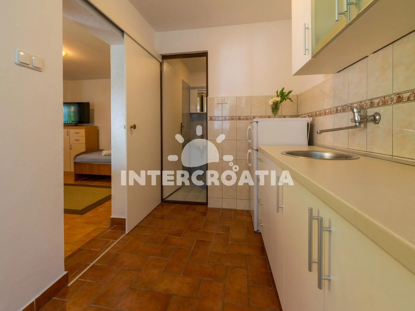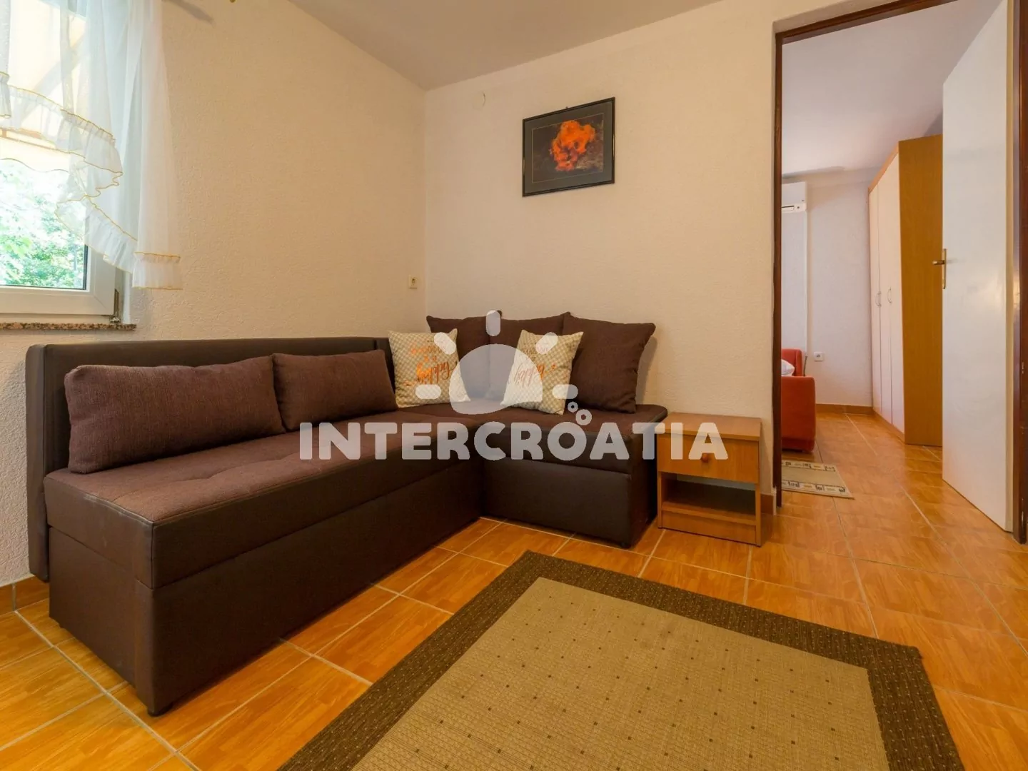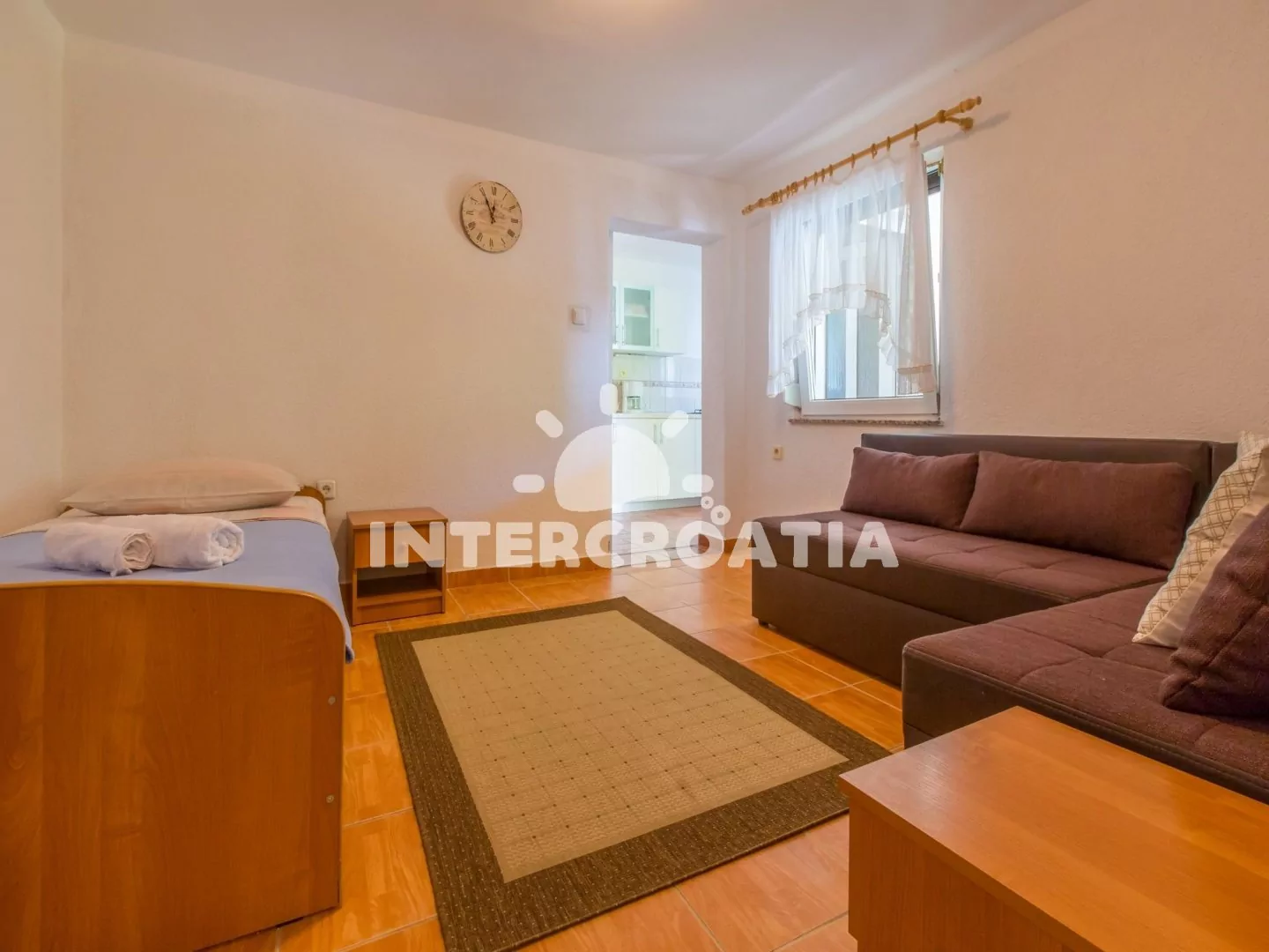 Apartmán (45 m2) s vlastní terasou a grilem se nachází v přízemí domu a je vhodný pro 2 až 4 osoby. Obývací pokoj je částečně oddělený od kuchyně. Kuchyňská linka je vybavena varnou deskou,…