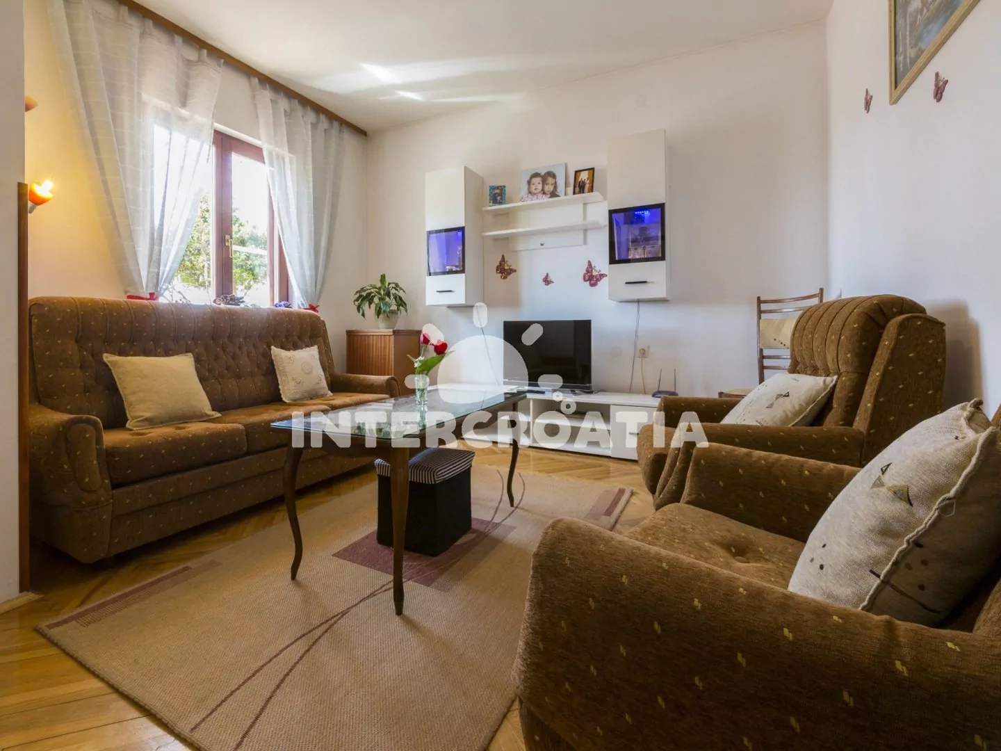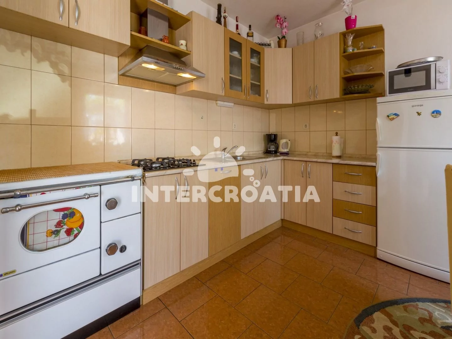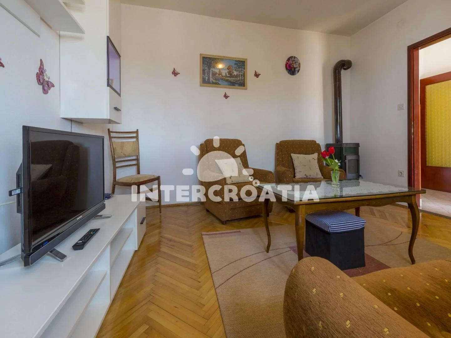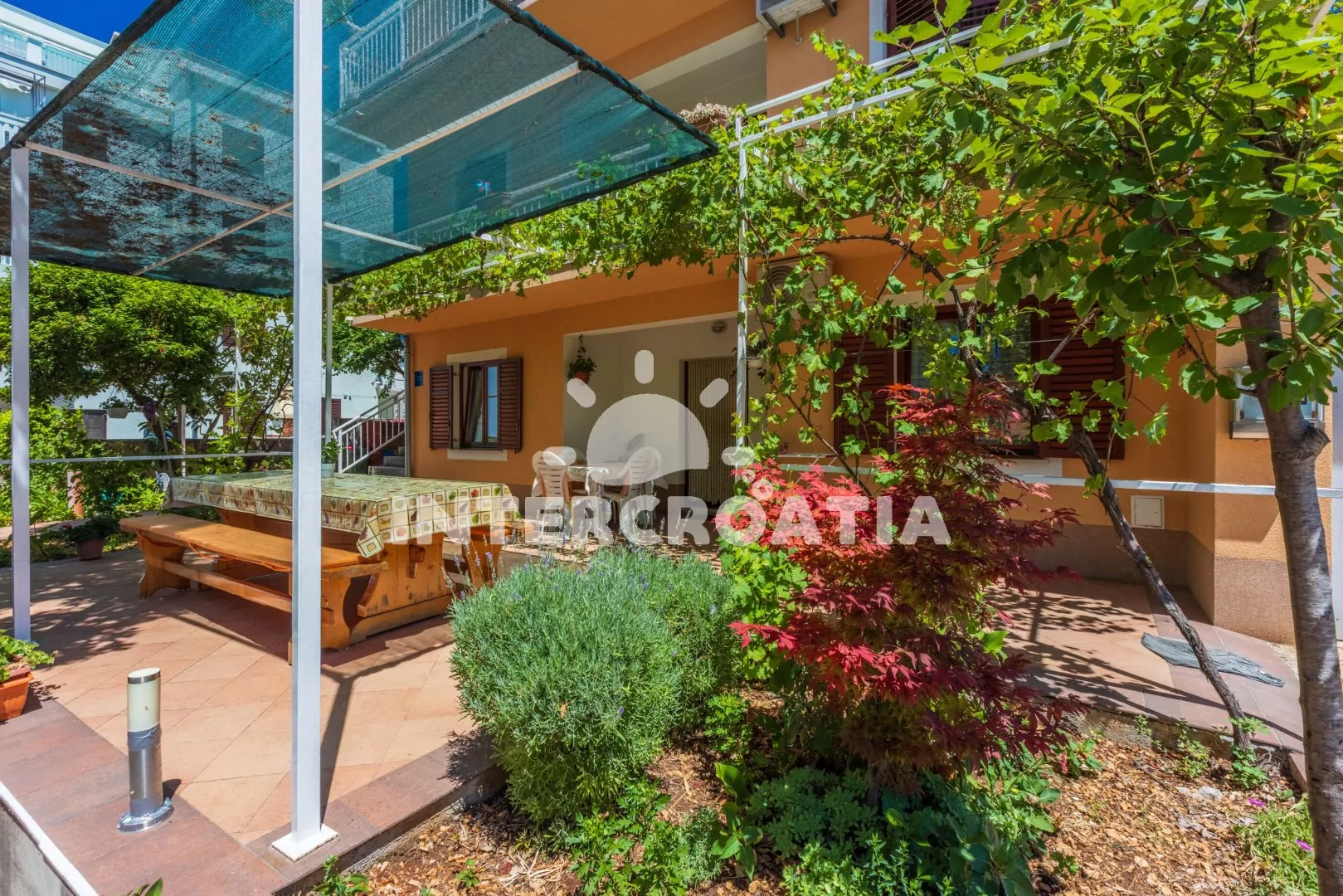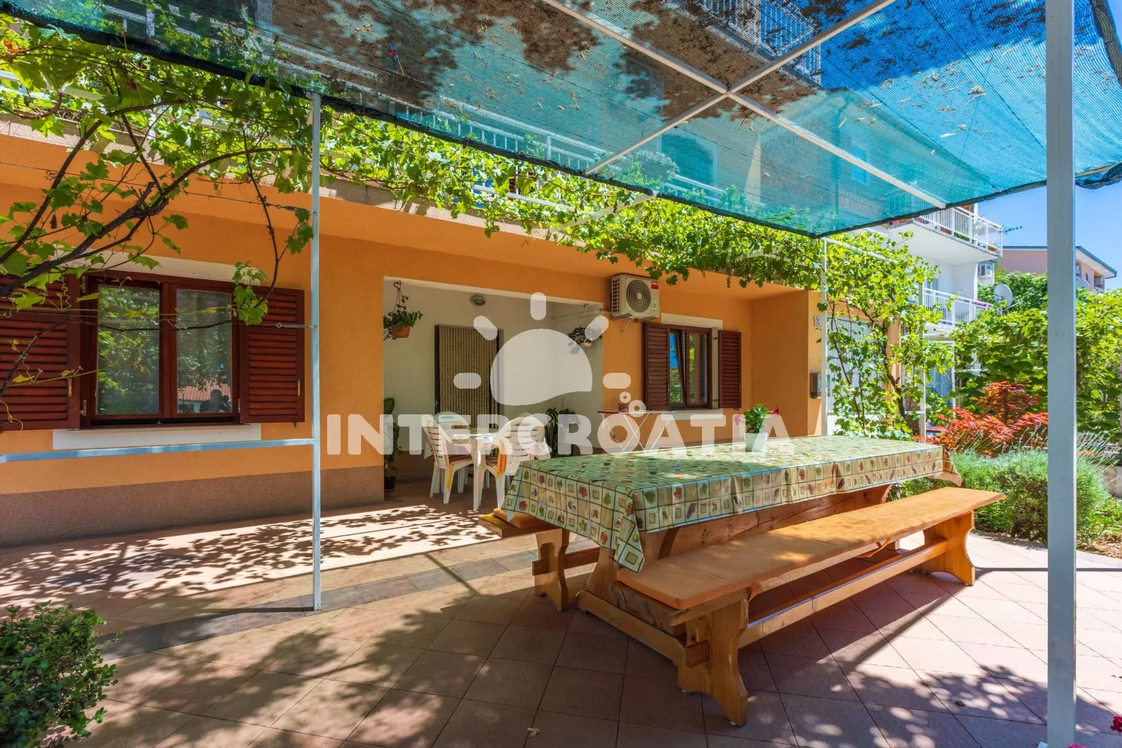 Apartmánový dům stojící v klidné části města Crikvenica. Od domu je částečný výhled na moře. Pozemek se zahrádkou, terasou s venkovním posezením a parkovacími místy.