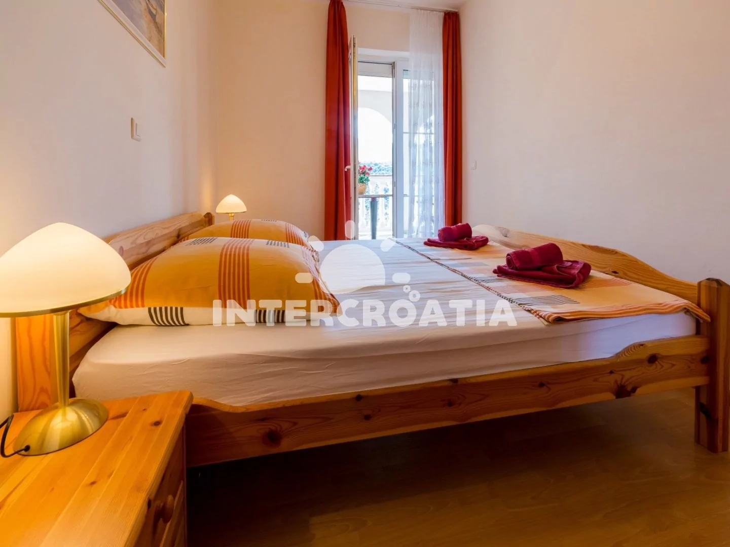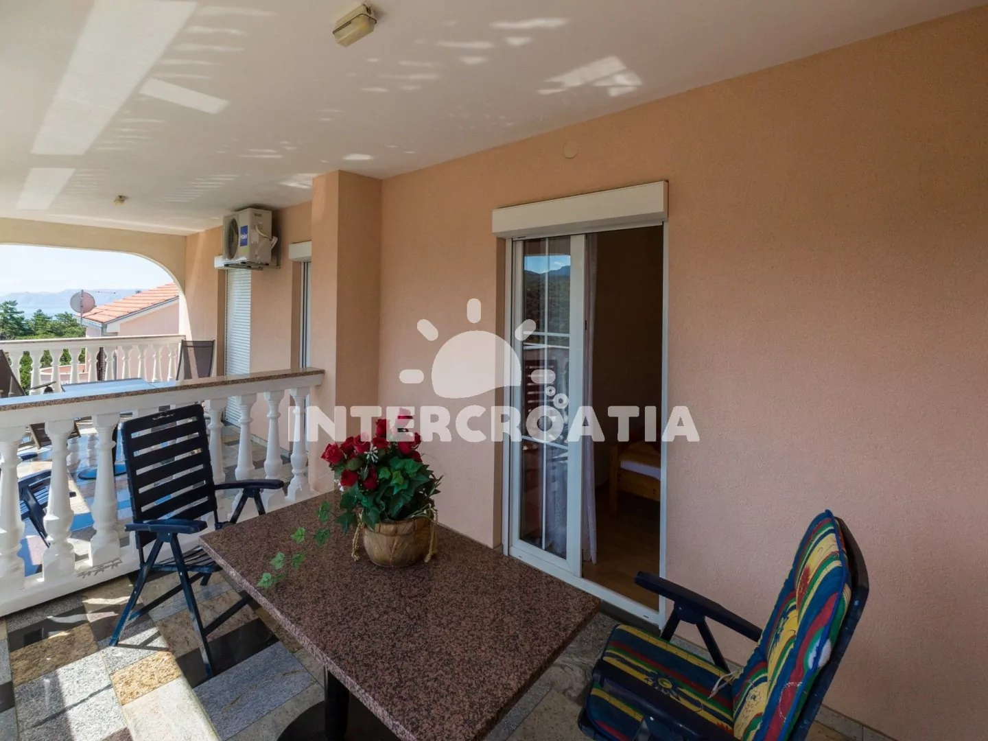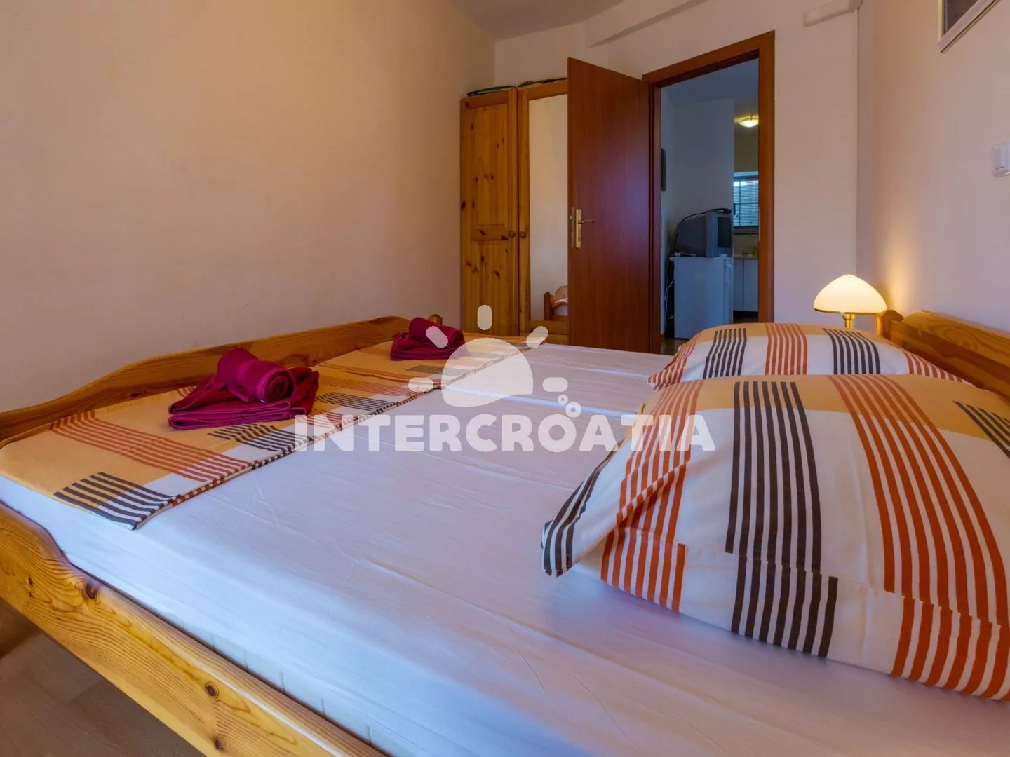 Apartmán s terasou se nachází v prvním patře vily a je vhodný pro 2 až 3 osoby. Obývací pokoj je spojený s kuchyní. Kuchyňská linka je vybavena sklokeramickou varnou deskou, vestavěnou troubou, kávovarem, nádobím a lednicí s mrazákem. Obývací pokoj s jídelním stolem pro 4 osoby, jednolůžkem, televizí se satelitním programem, klimatizací a vstupem na terasu. Ložnice s jedním dvoulůžkem a vstupem na terasu. Koupelna se sprchovým koutem, umyvadlem a wc. Hostům je k dispozici parkování u objektu zdarma.