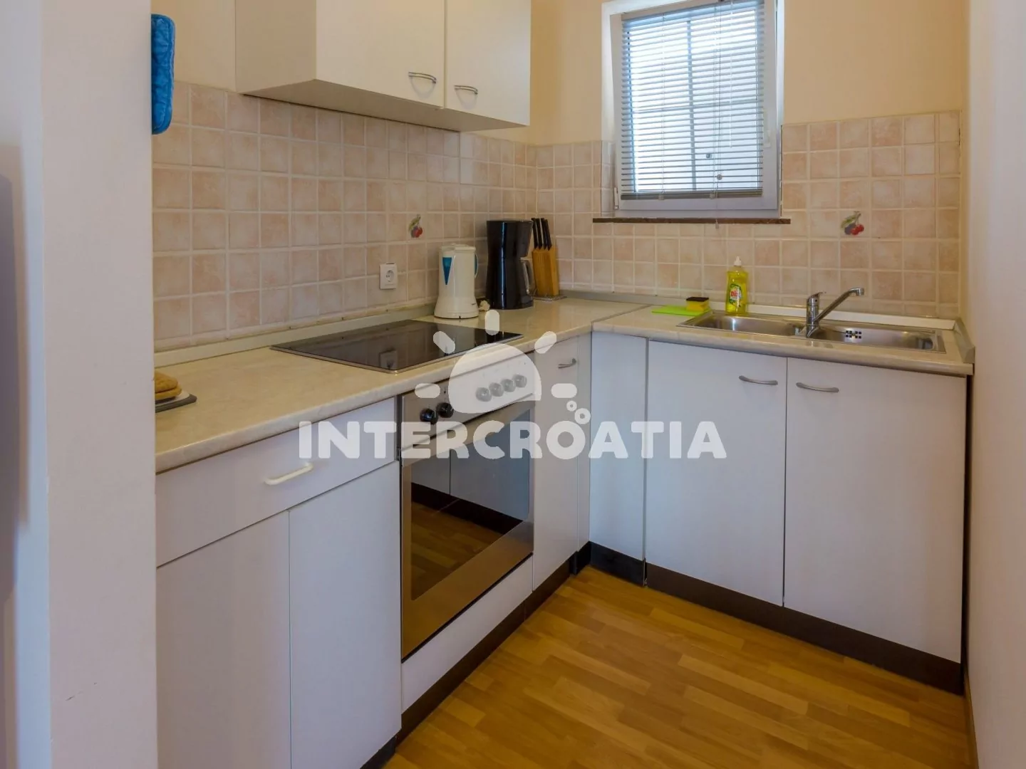 Apartmán s terasou se nachází v prvním patře vily a je vhodný pro 2 až 3 osoby. Obývací pokoj je spojený s kuchyní. Kuchyňská linka je vybavena sklokeramickou varnou deskou, vestavěnou troubou,…