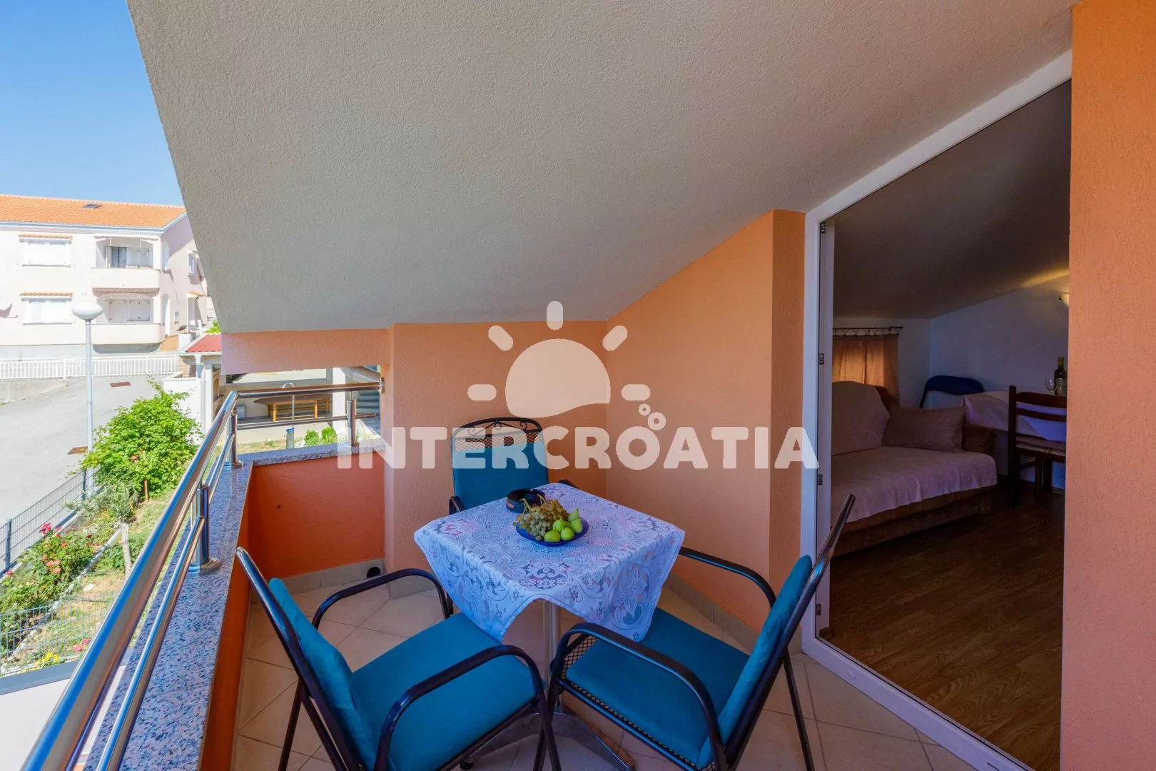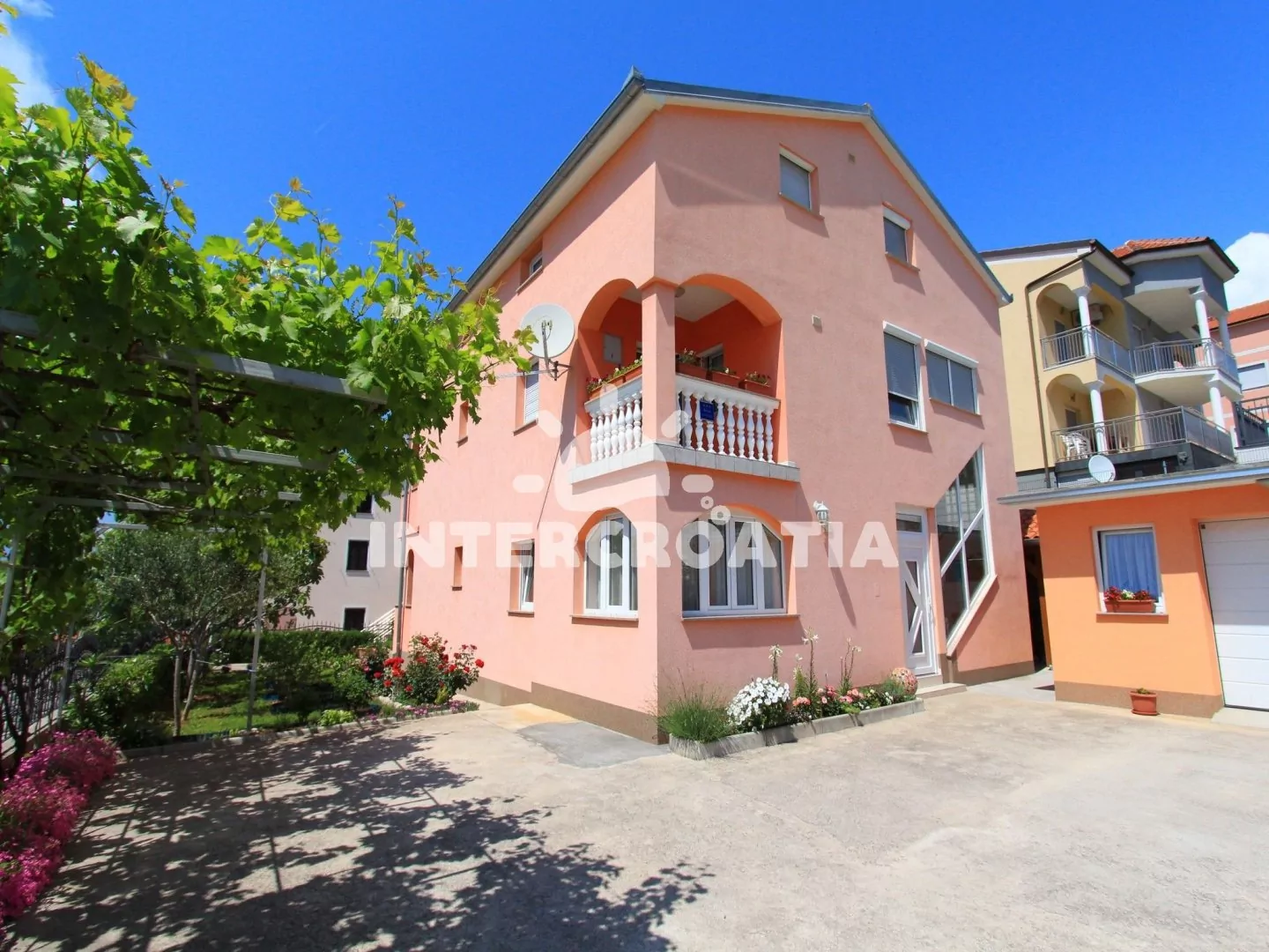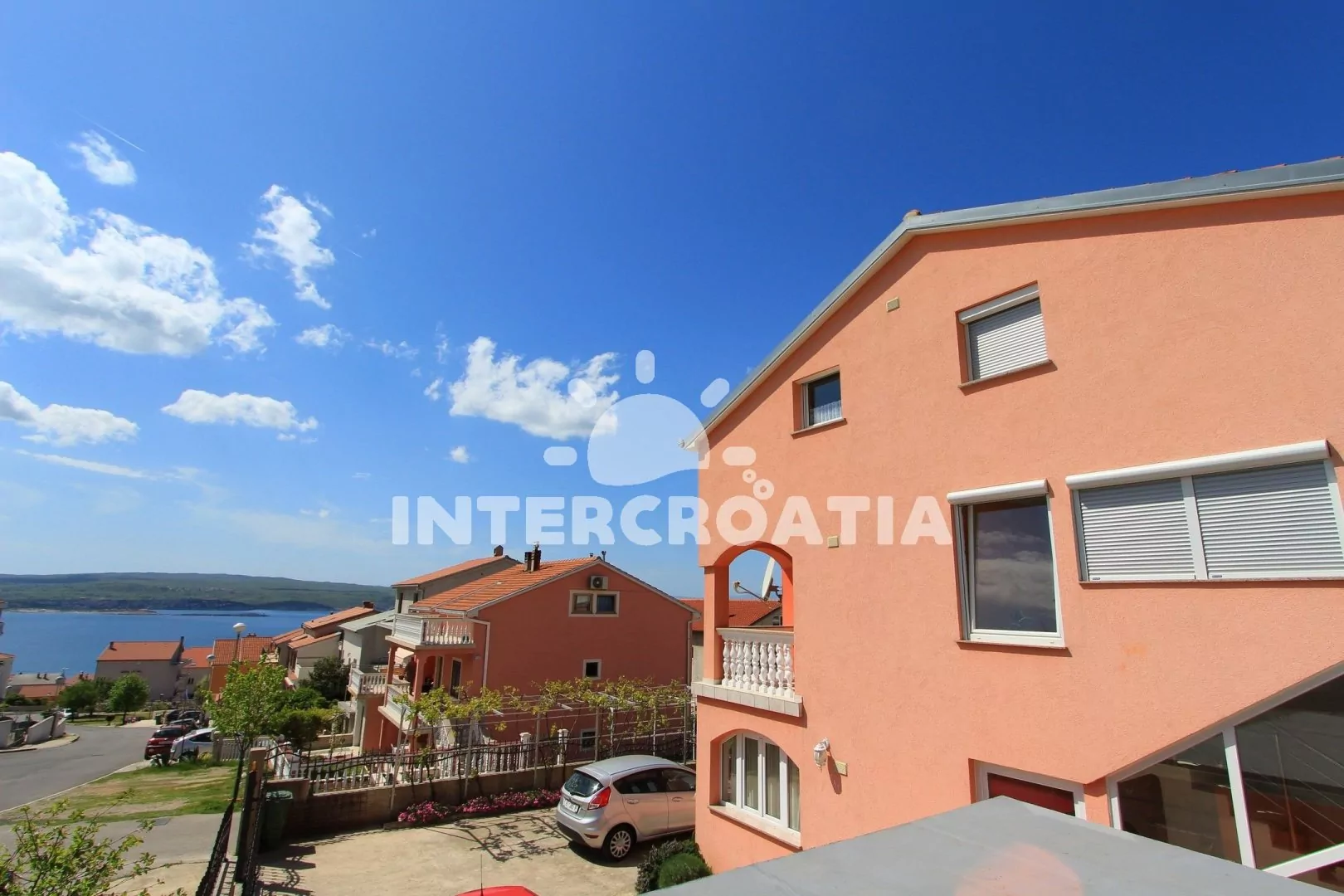 Apartmánový dům s výhledem na moře a vlastním oploceným pozemkem, společnou terasou, pergolou, venkovním posezením a grilem. Apartmány s lodžiemi, výhledem na moře a posezením. Parkovací místa pro automobily přímo u domu.