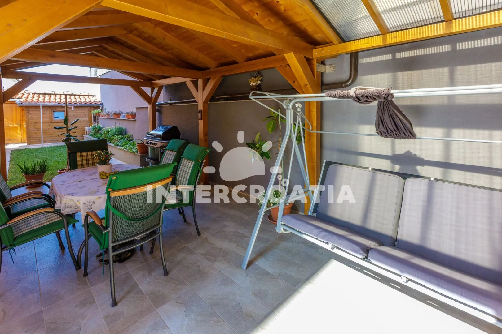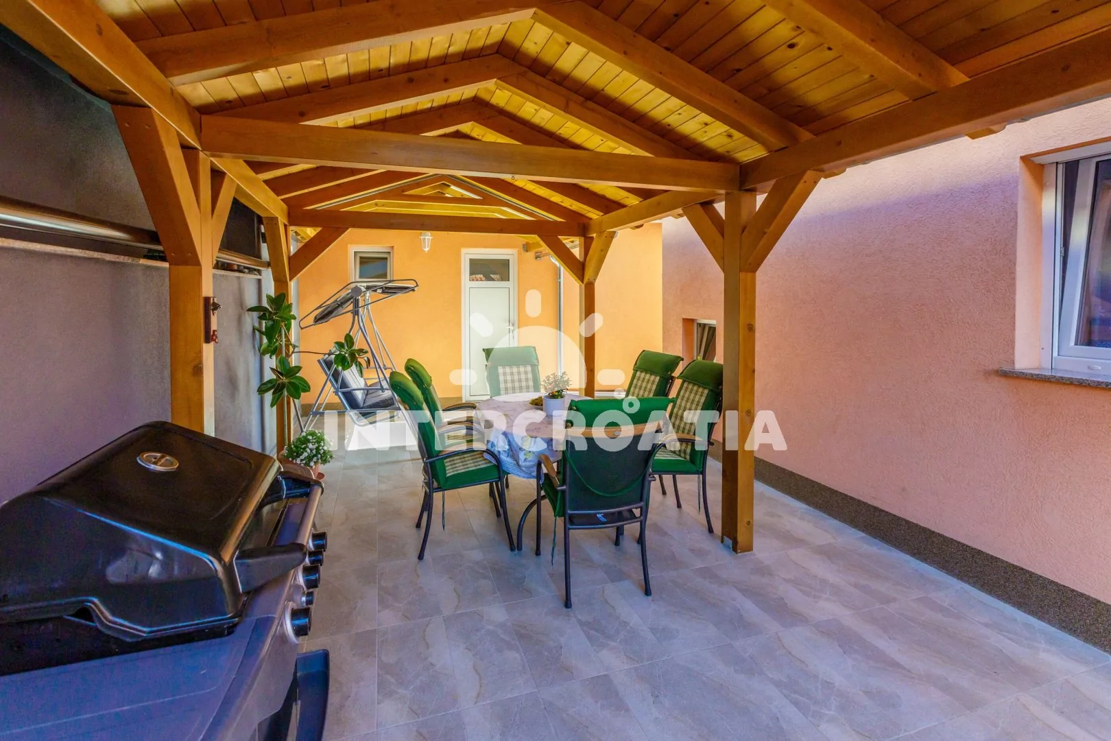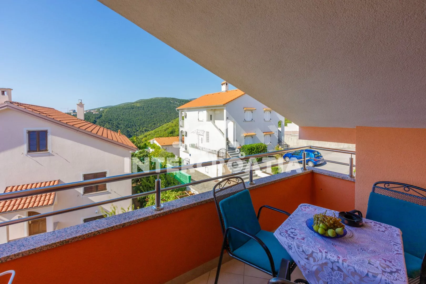 Apartmánový dům s výhledem na moře a vlastním oploceným pozemkem, společnou terasou, pergolou, venkovním posezením a grilem. Apartmány s lodžiemi, výhledem na moře a posezením. Parkovací místa pro automobily přímo u domu.