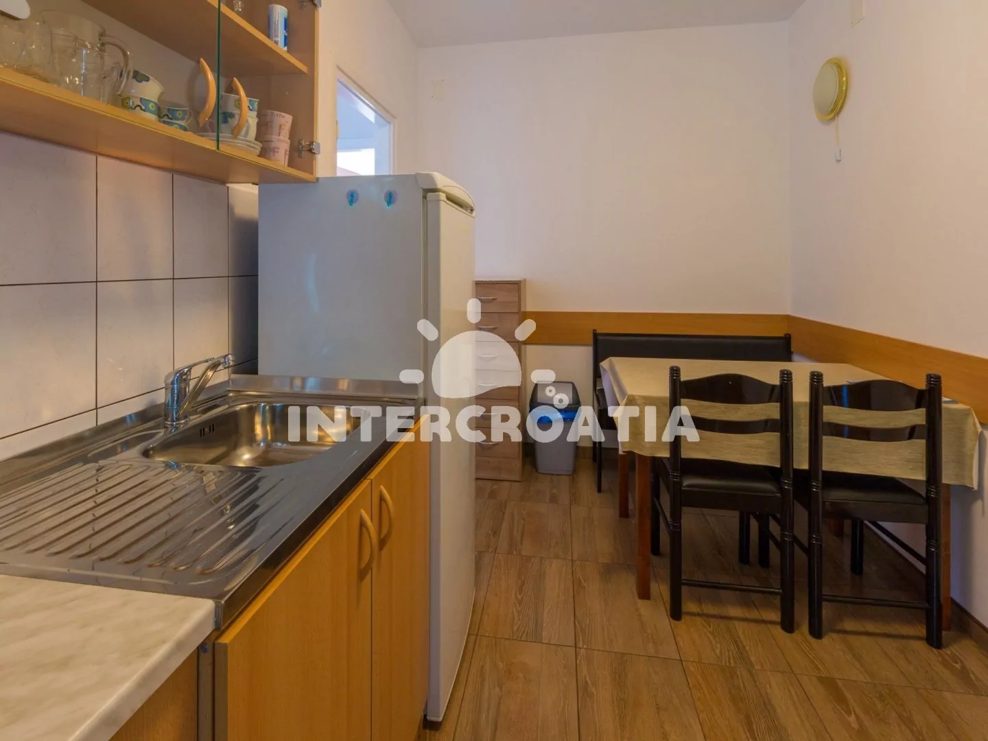 Apartmán (28 m2) s terasou a výhledem na moře se nachází v přízemí domu a je vhodný pro 2 osoby. Obývací místnost je spojena s kuchyní. Kuchyňská linka je vybavena sporákem, digestoří, troubou,…