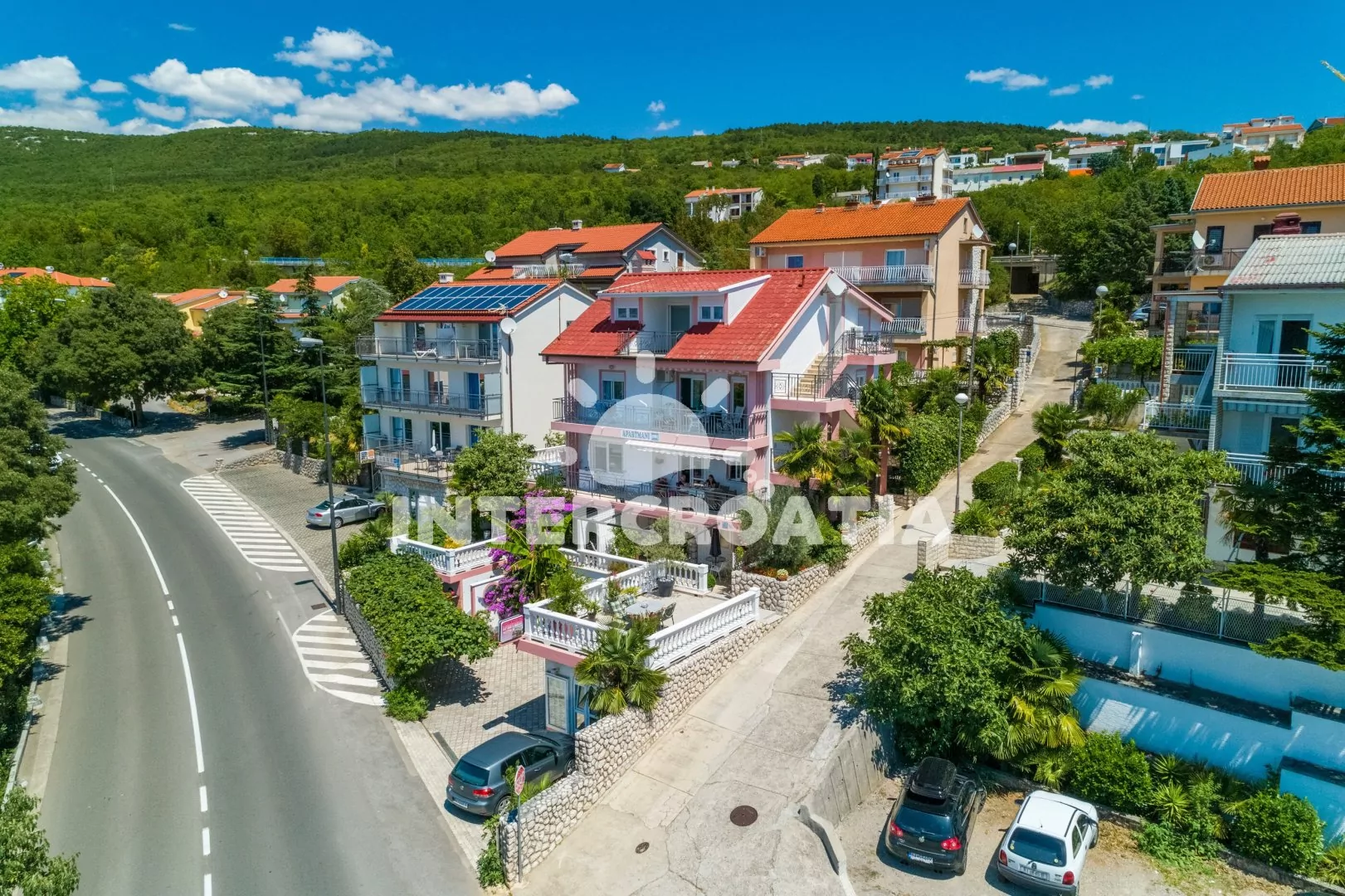 Vkusně zařízený apartmánový domek, nacházející se v příjemném prostředí města a nabízí výhled na moře. Apartmány s lodžiemi a venkovním posezením. Parkovací místa u objektu.