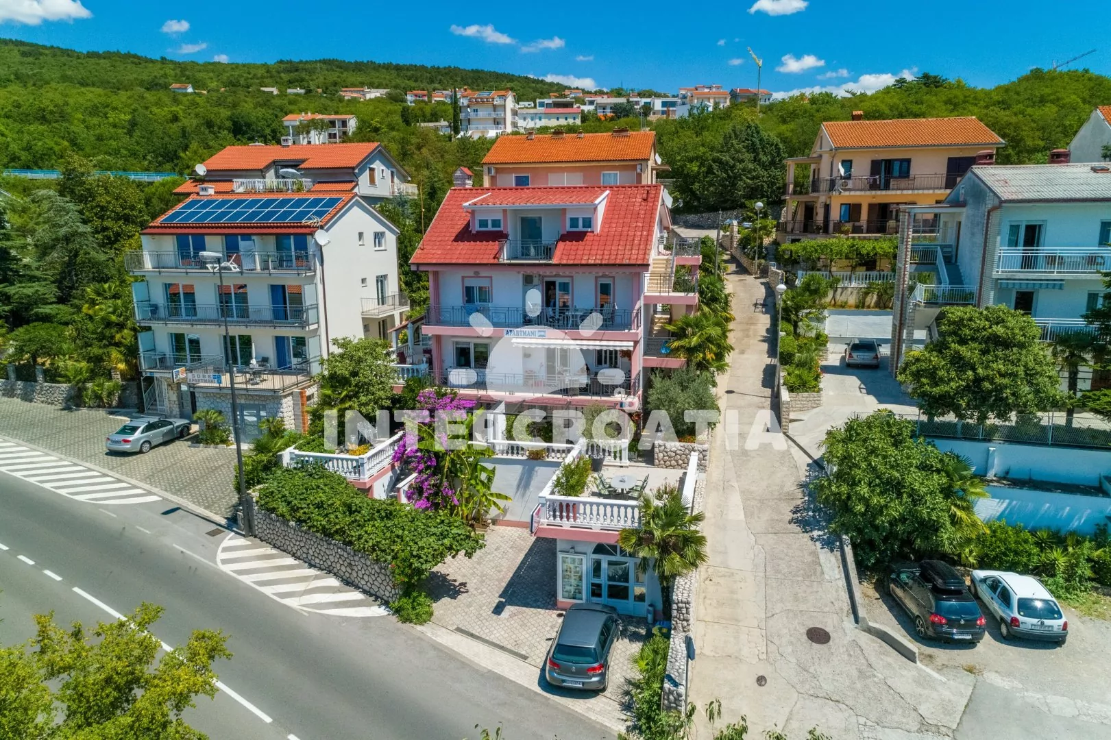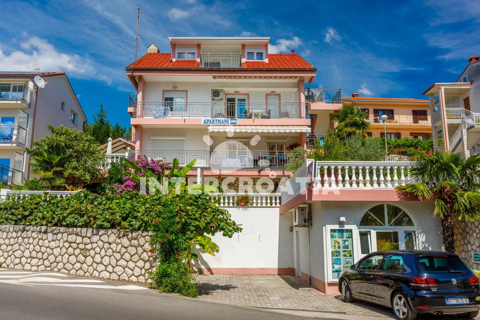 Apartmánový dům, nacházející se v příjemném prostředí města s výhledem na moře. Apartmány s lodžiemi a venkovním posezením. Parkovací místa u objektu.