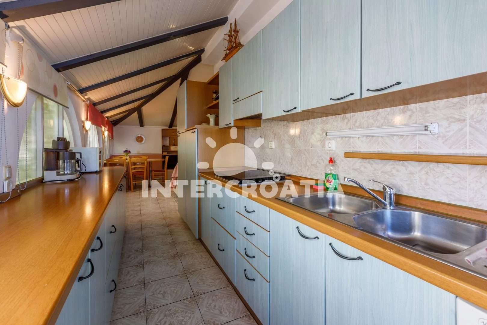 Apartmán (50 m2) s terasou a výhledem na moře se nachází v 1. patře domu a je vhodný pro až 4 osoby. Obývací pokoj je spojený s kuchyní. Kuchyňská linka je vybavena varnou deskou, myčkou na nádobí,…