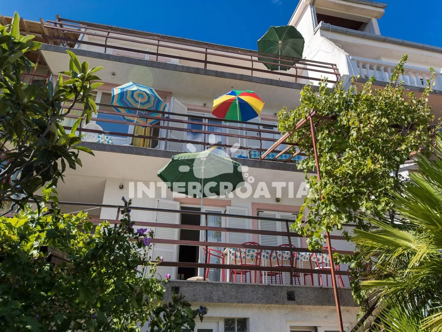 Apartmánový dům s výhledem na moře a lodžiemi s venkovním posezením. Parkovací místa pro automobily u domu.