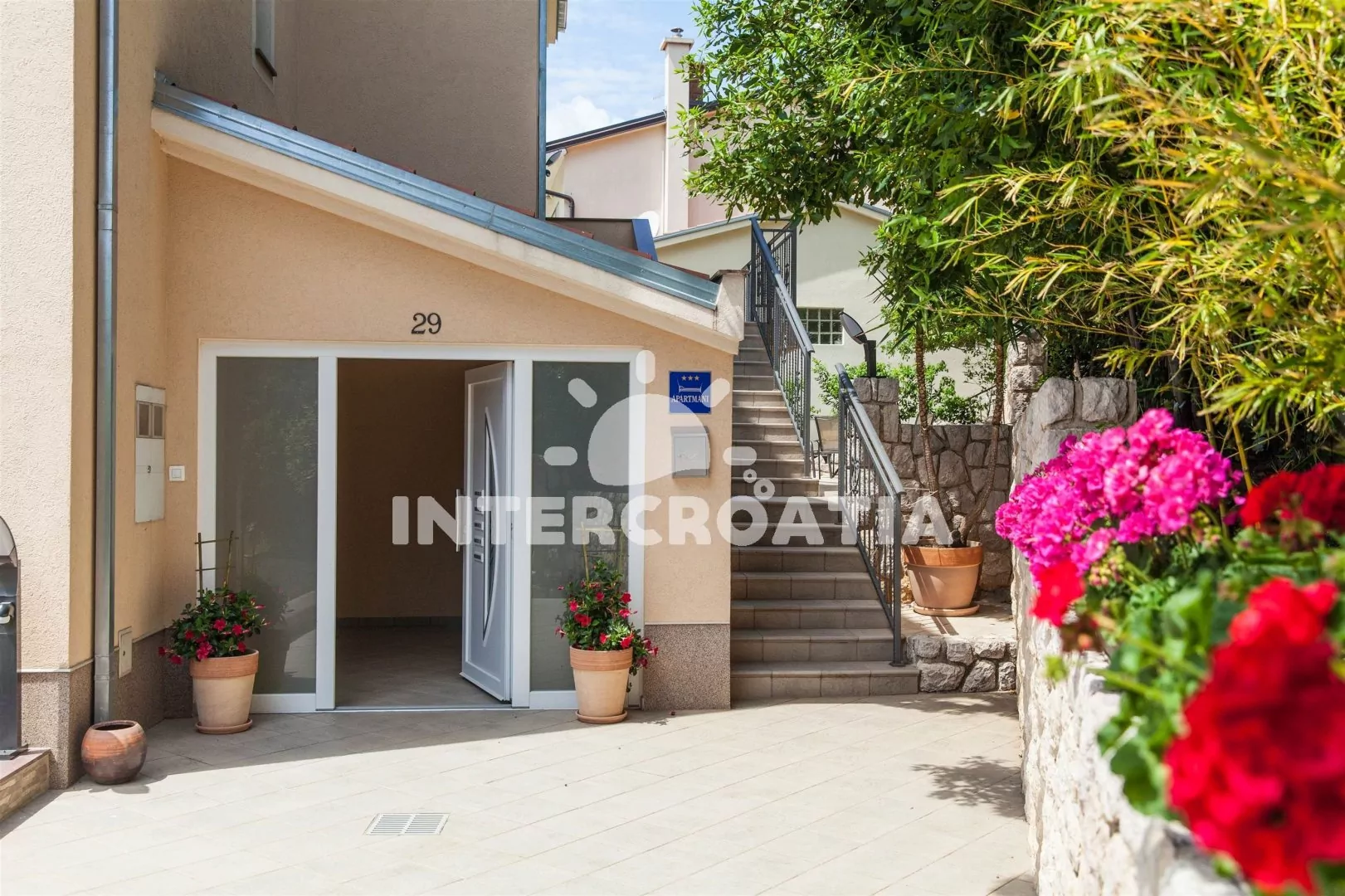 Dobře vybavený apartmánový dům s výhledem na moře a lodžiemi s venkovním posezením. Dům se nachází v oblíbené části města Crikvenica, s dobrou dostupností k moři. Pod domem velká garáž pro automobily.