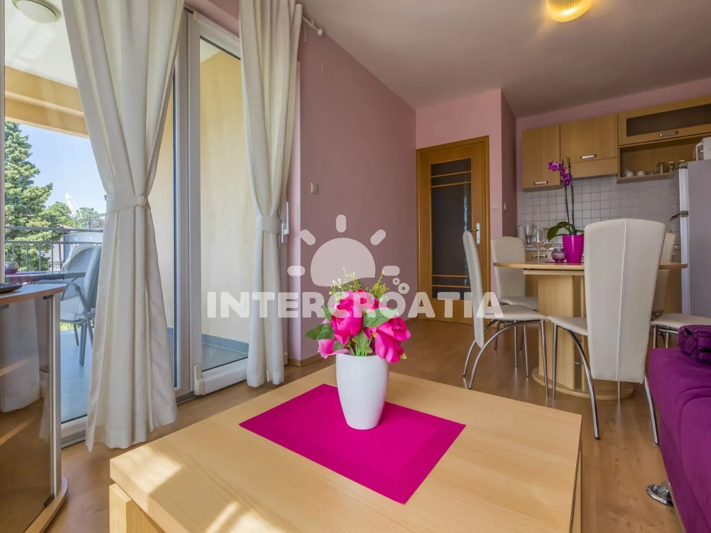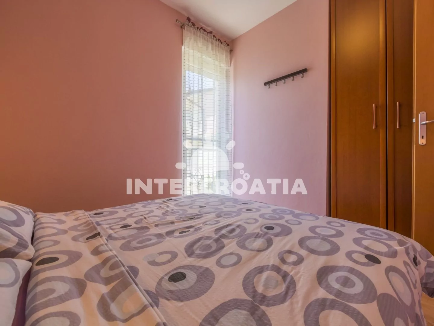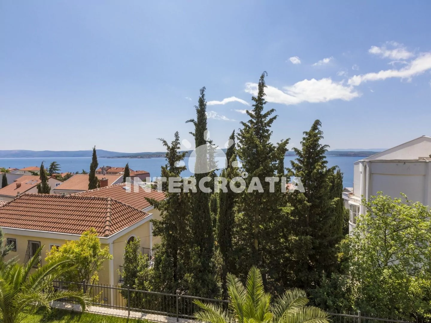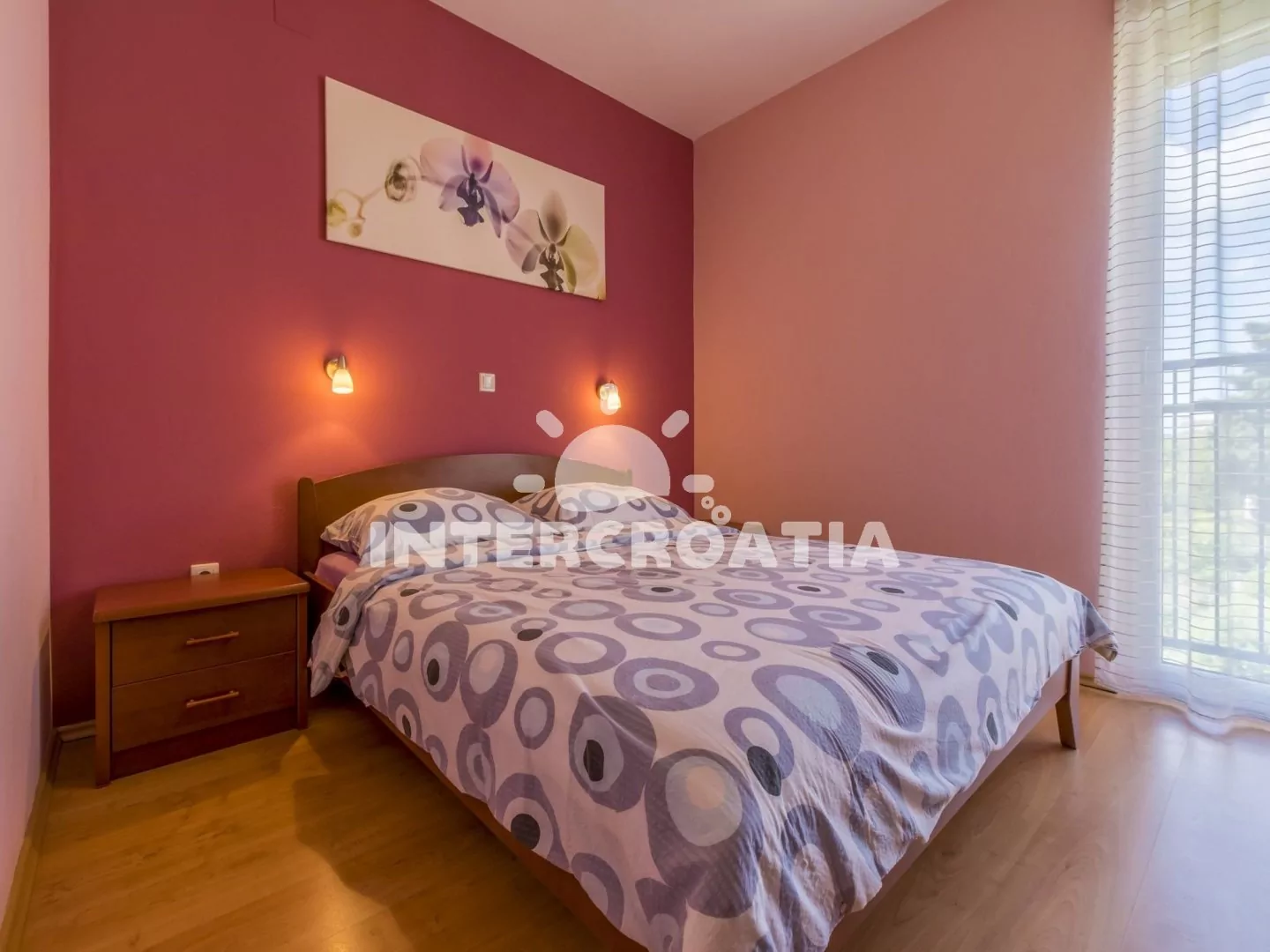 Vkusně zařízený apartmán (60 m2), s vlastní terasou a výhledem na moře. Apartmán se nachází v 1. patře domu a je vhodný pro 4 až 5 osob. Obývací pokoj je spojený s kuchyní. Kuchyňská linka je vybavena sklokeramickou varnou deskou, digestoří, rychlovarnou konvicí, kávovarem, toustovačem, nádobím a lednicí s mrazákem. Obývací pokoj s jídelním stolem pro 5 osob, pohovkou (rozložitelná na extra lůžko pro 1 osobu), televizí se satelitním programem, DVD přehrávačem, radiem, klimatizací a vstupem na terasu. První i druhá ložnice je vybavena vždy s jedním dvoulůžkem. Koupelna se sprchovým koutem, umyvadlem, fénem a wc. Hostům je k dispozici parkování v garáži zdarma.