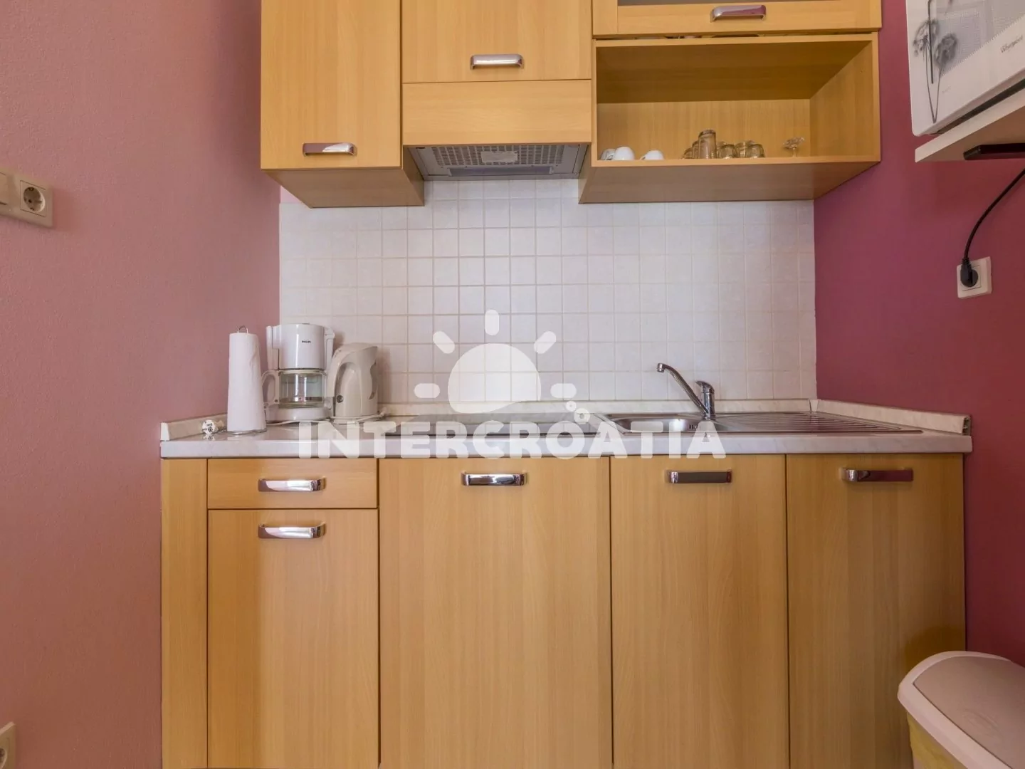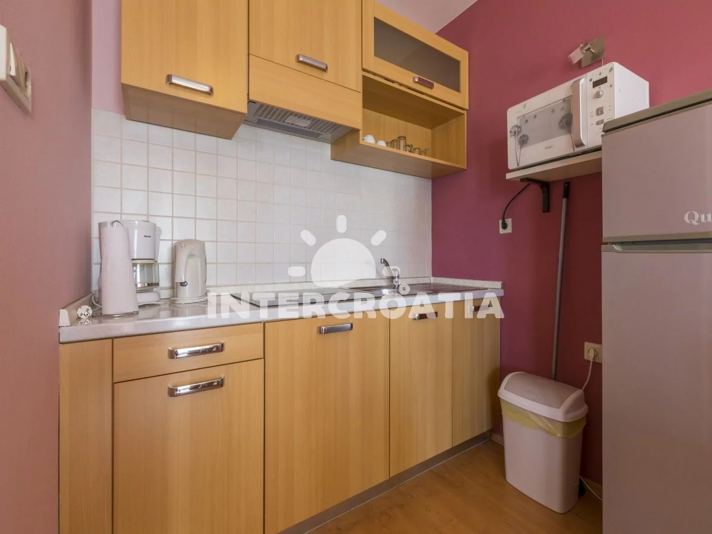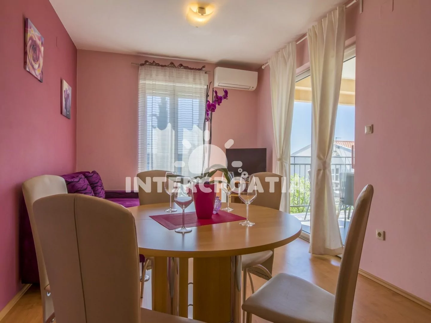 Vkusně zařízený apartmán (60 m2), s vlastní terasou a výhledem na moře. Apartmán se nachází v 1. patře domu a je vhodný pro 4 až 5 osob. Obývací pokoj je spojený s kuchyní. Kuchyňská linka je…